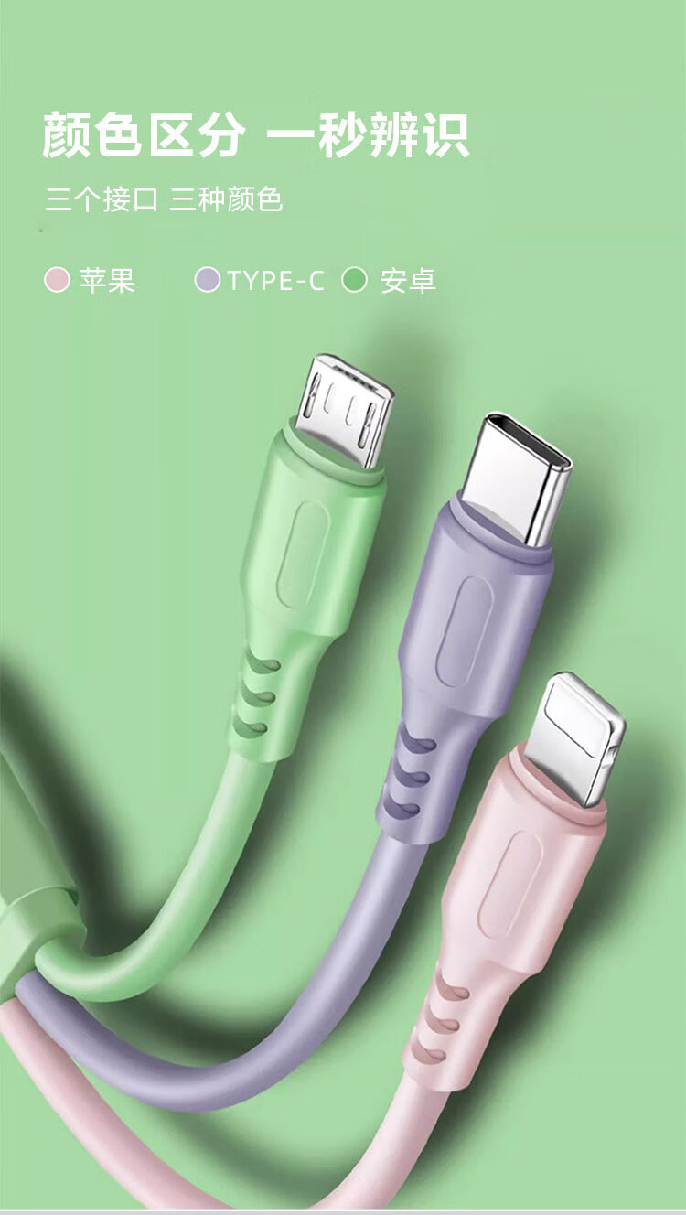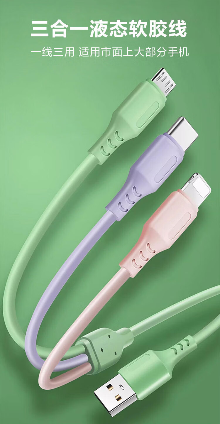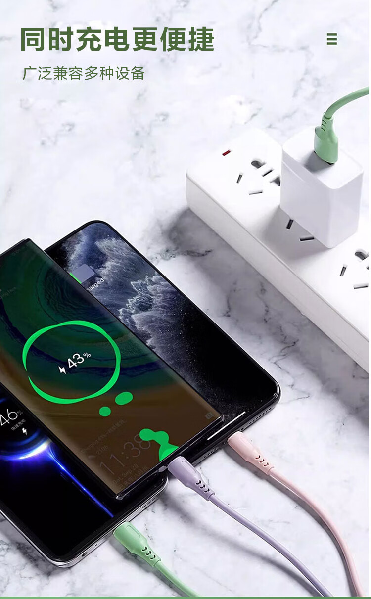 Three-in-one charging cable soft liquid silicone tyep-c charging cable one to three suitable for Apple Huawei Android Hongmeng mobile phone universal three-in-one liquid silicone 1 meter one pack