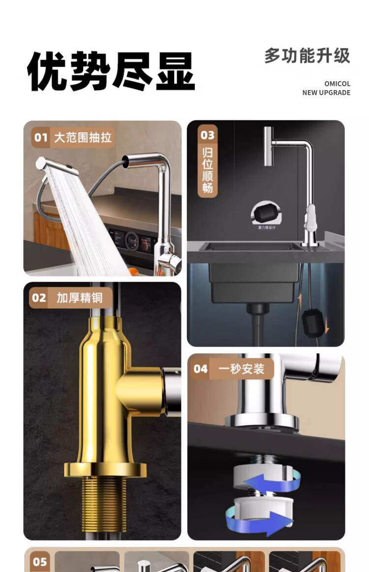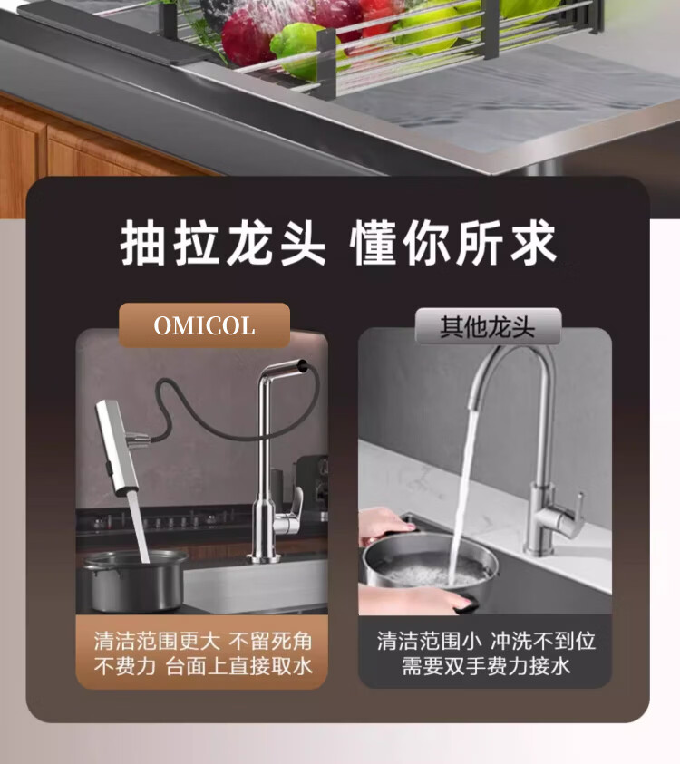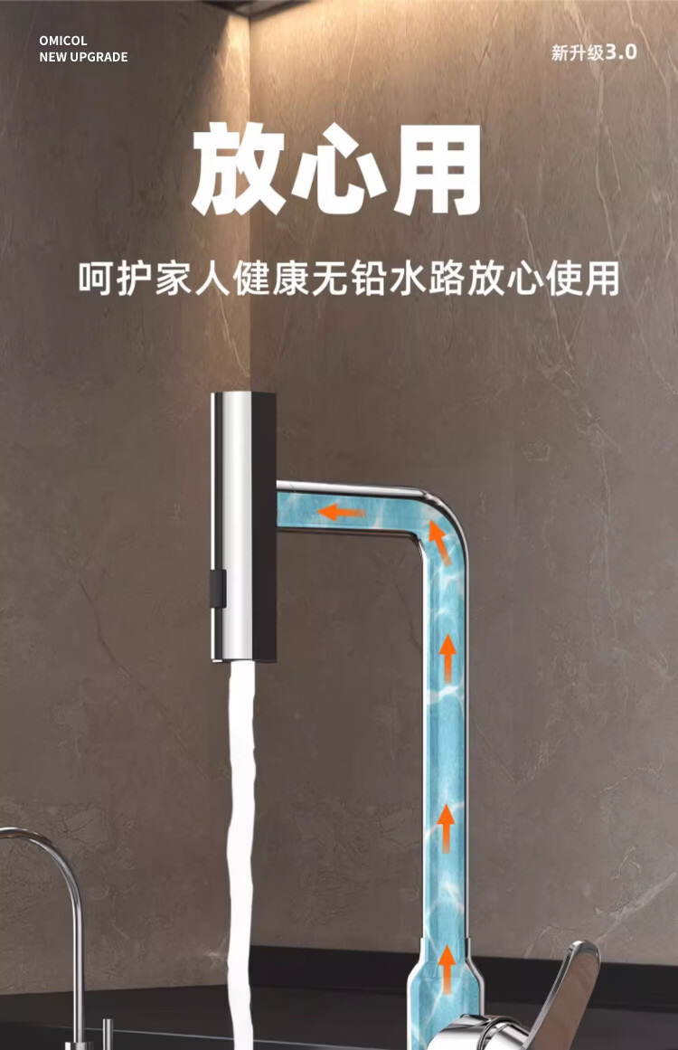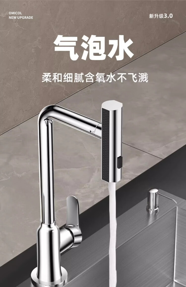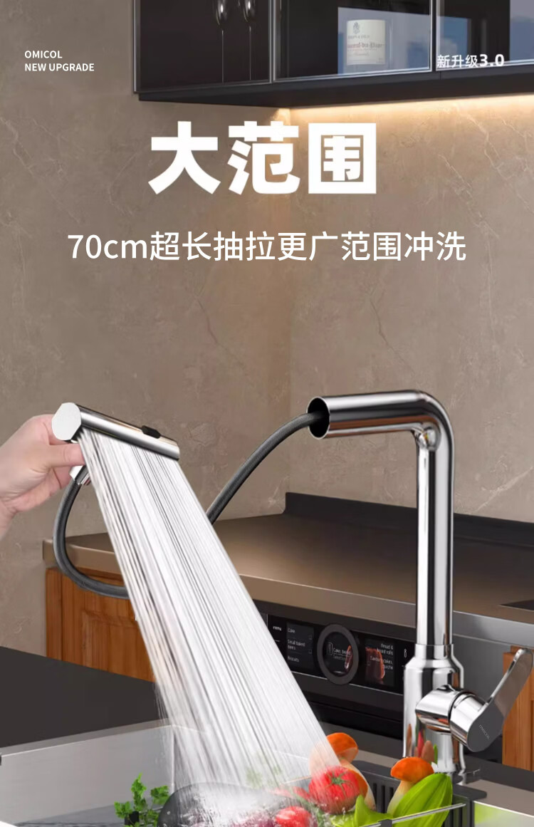 OMICOL German kitchen faucet all-copper body sink pull-out Raindance multi-function hot and cold sink faucet Raindance hot and cold pull-out faucet gun ash genuine German brand丨Official warranty 20 years