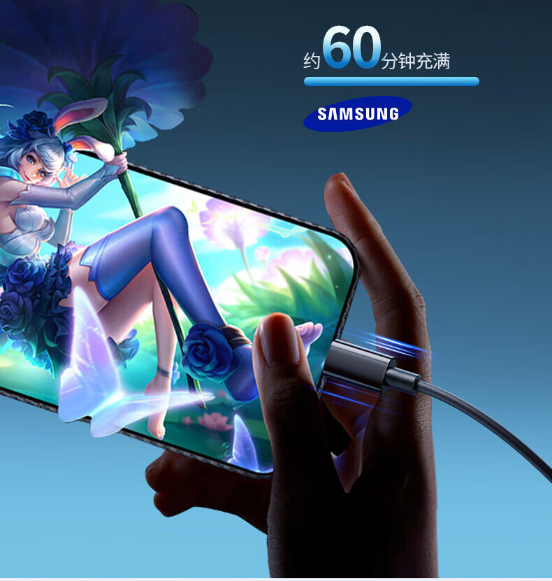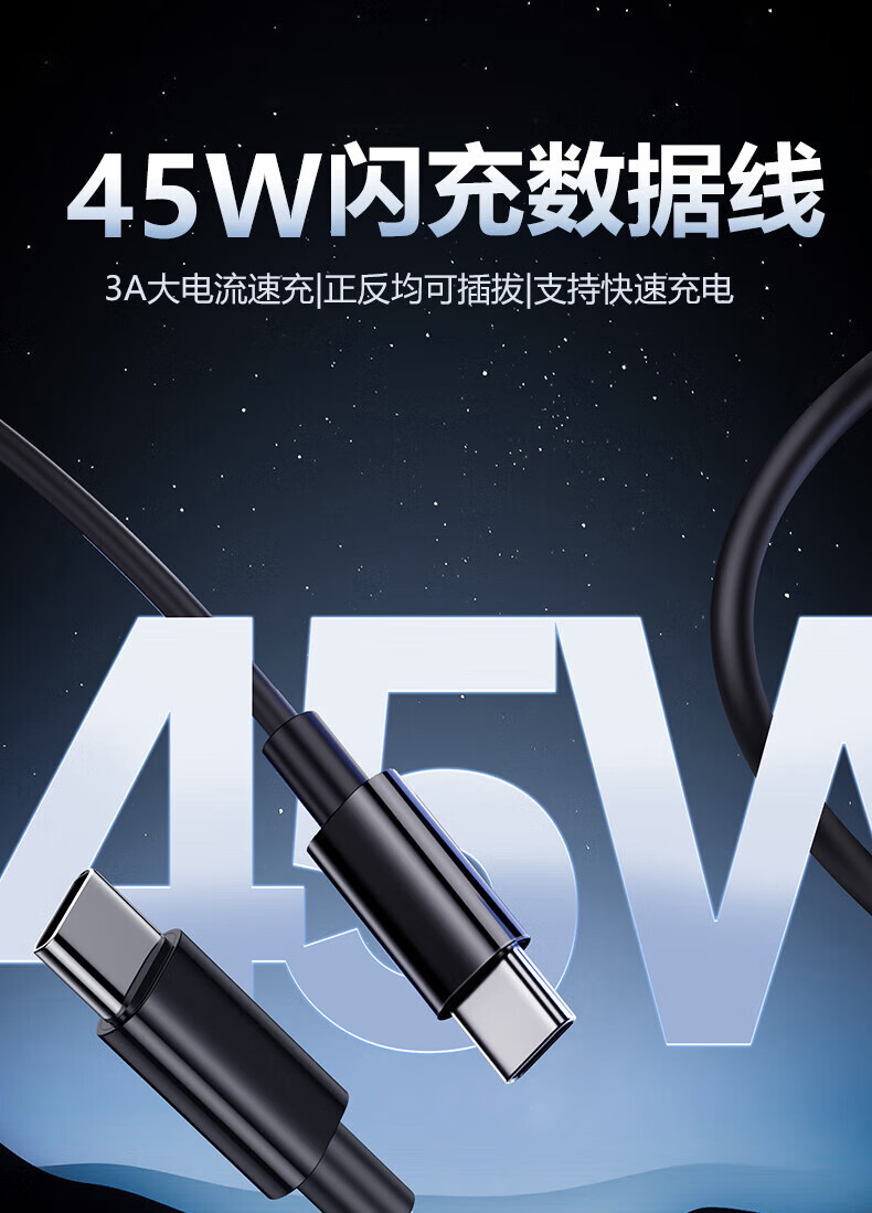 Congyue is suitable for Samsung ZFold2/3/4/5/S23/22/21/A53 mobile phone 25W charging cable S22/23/24UItra/S23+22+24+ data cable 45W super flash charging dual Type-C 1 meter cable black