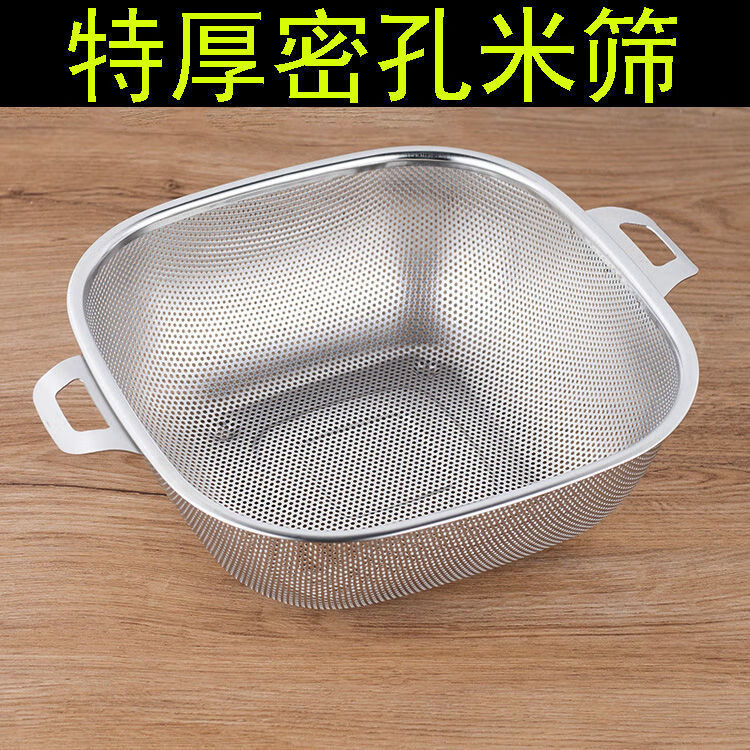 Enshousu extra thick stainless steel rice sieve round square drain basket washing sieve fruit drain basin kitchen basin washing vegetables rice basin extra thick round 19.5cm