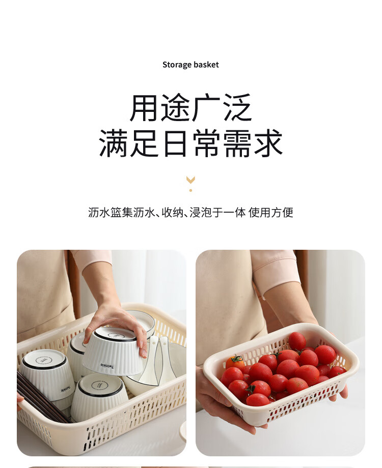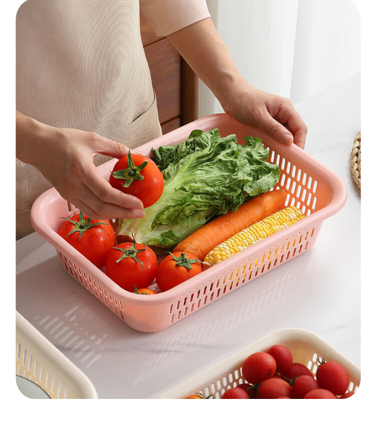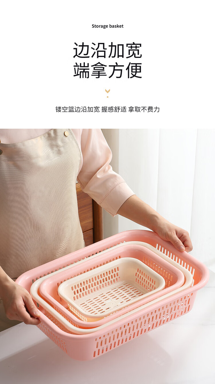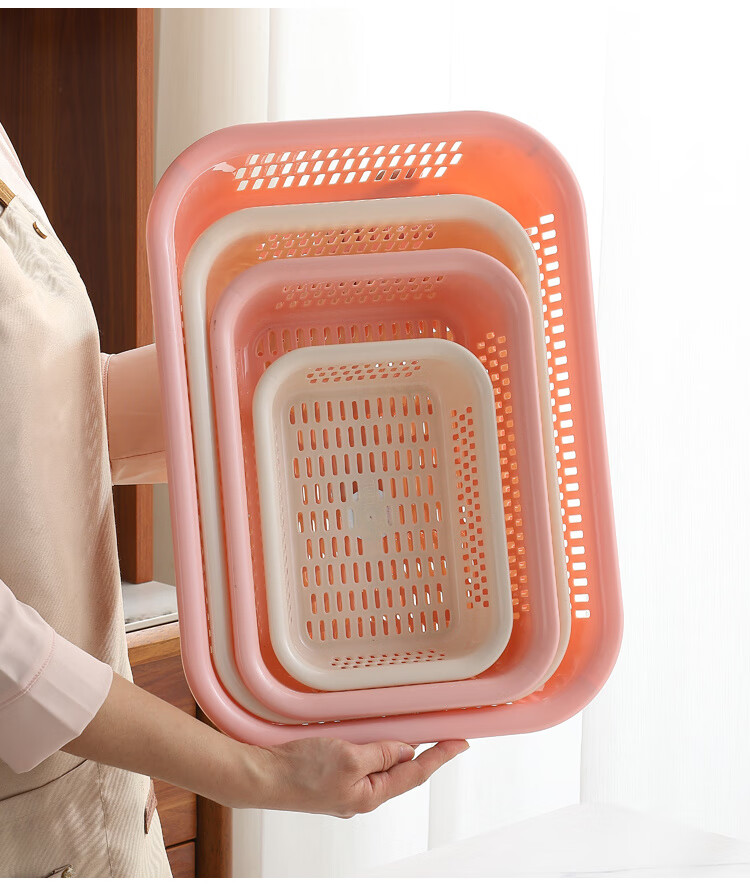 Enshousu thickened vegetable washing and draining basket square vegetable washing basket household vegetable basket plastic vegetable basket sieve mesh bowl and chopsticks drain rack water control girl powder extra large (square) one pack