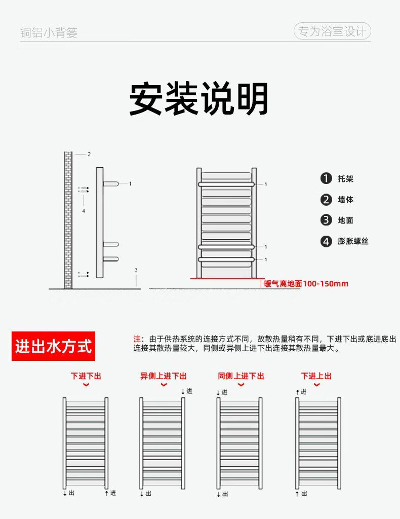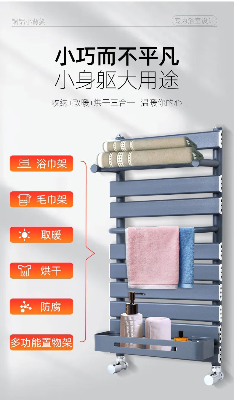 An Junsheng copper-aluminum composite small basket central heating bathroom radiator household bathroom with storage rack plumbing towel rack medium 02 style - white copper-aluminum basket heating 4-6 flat height 80 cm