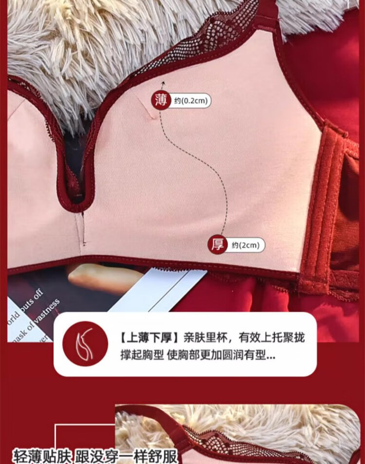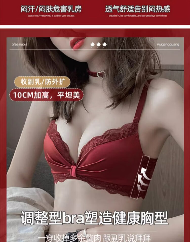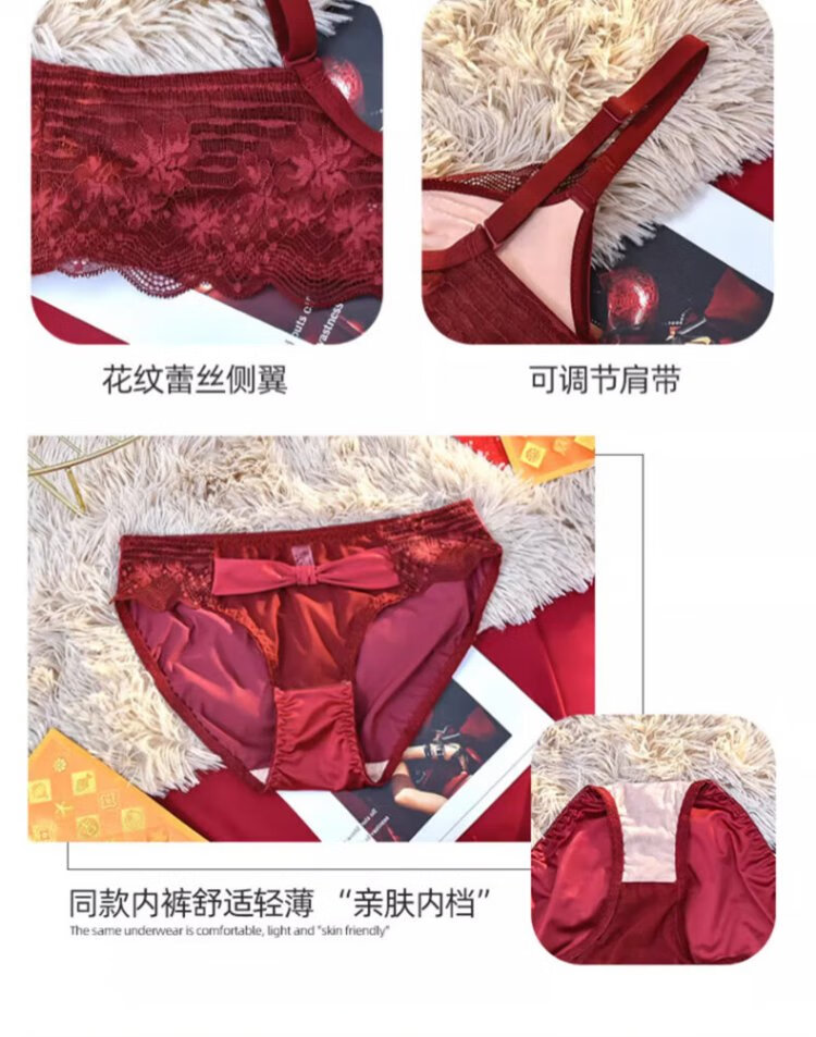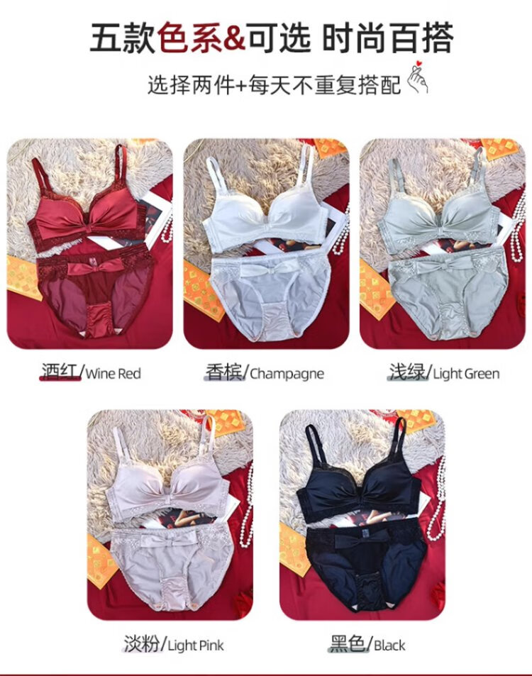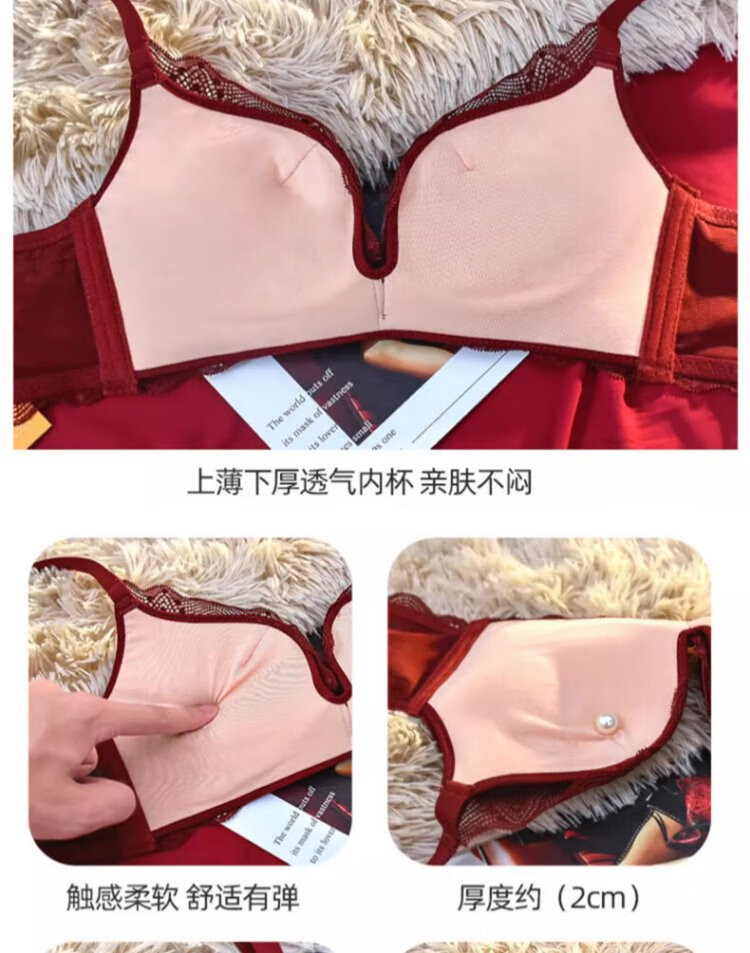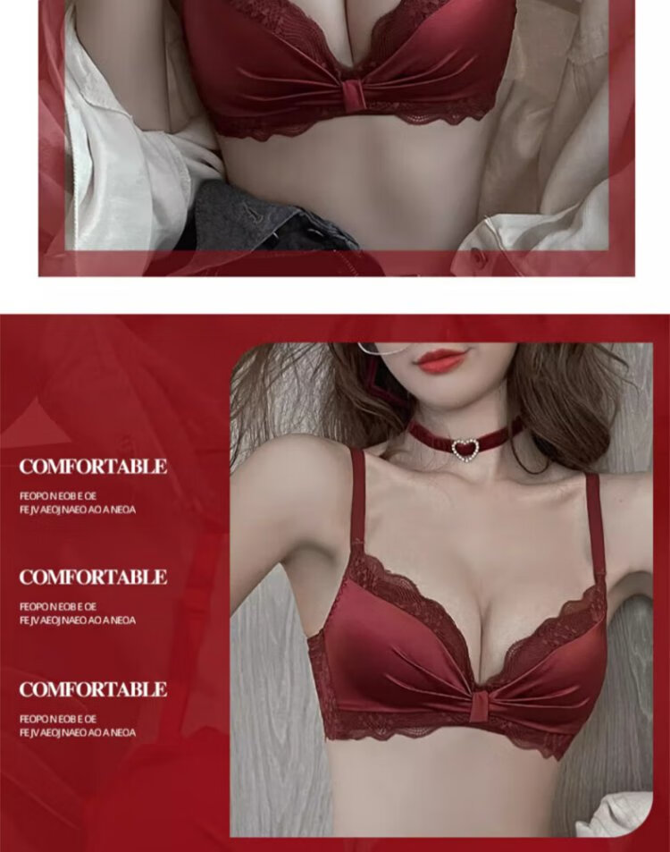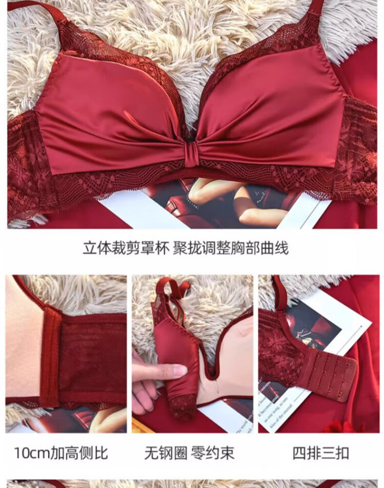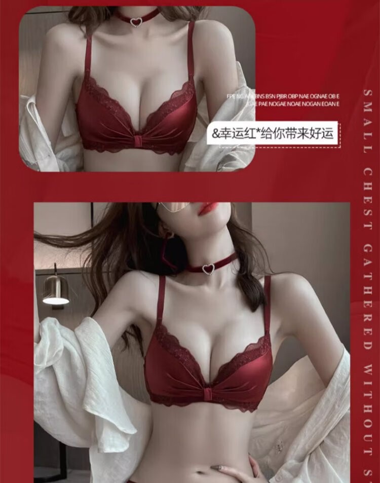 Langsha suit bra red underwear for women's birth year seamless new small breast medium thick cup push up to look bigger without wire bra burgundy suit 75A B=34AB