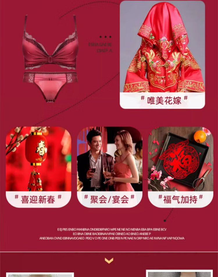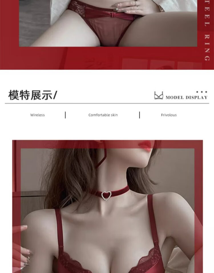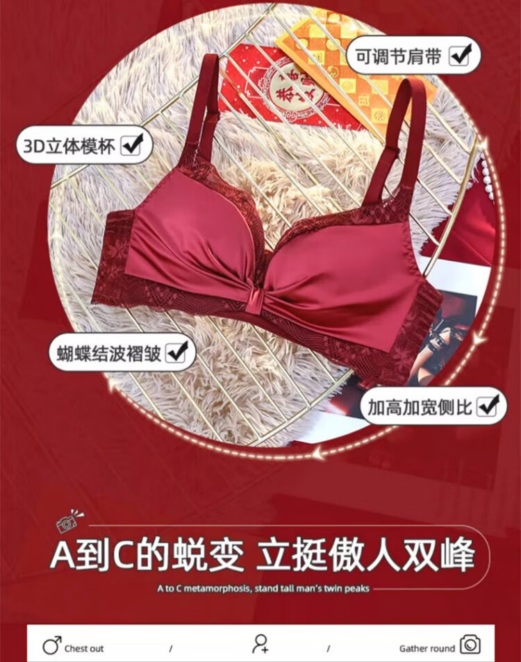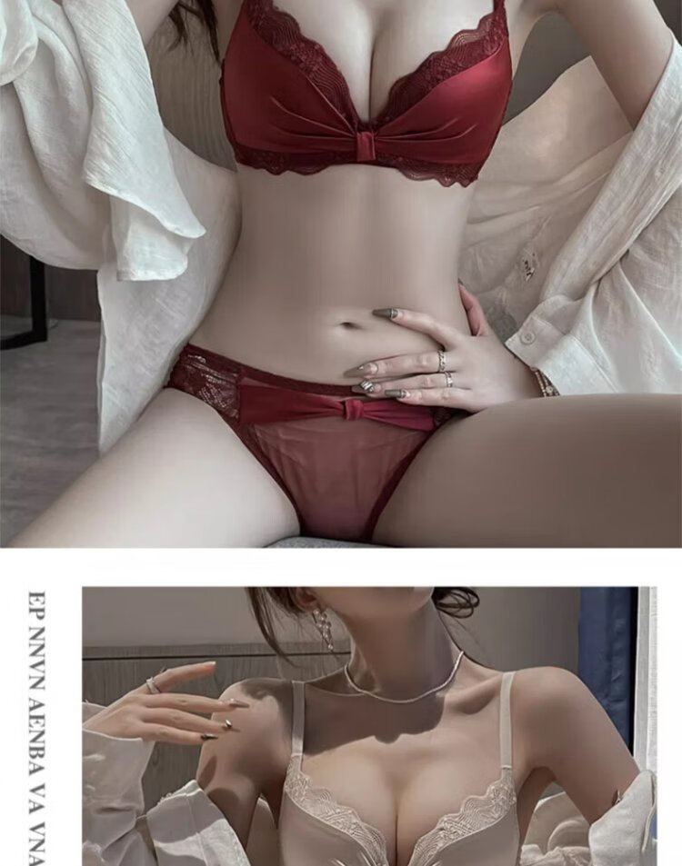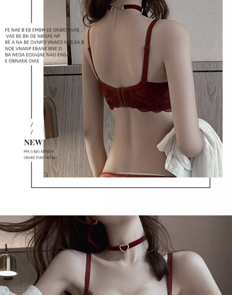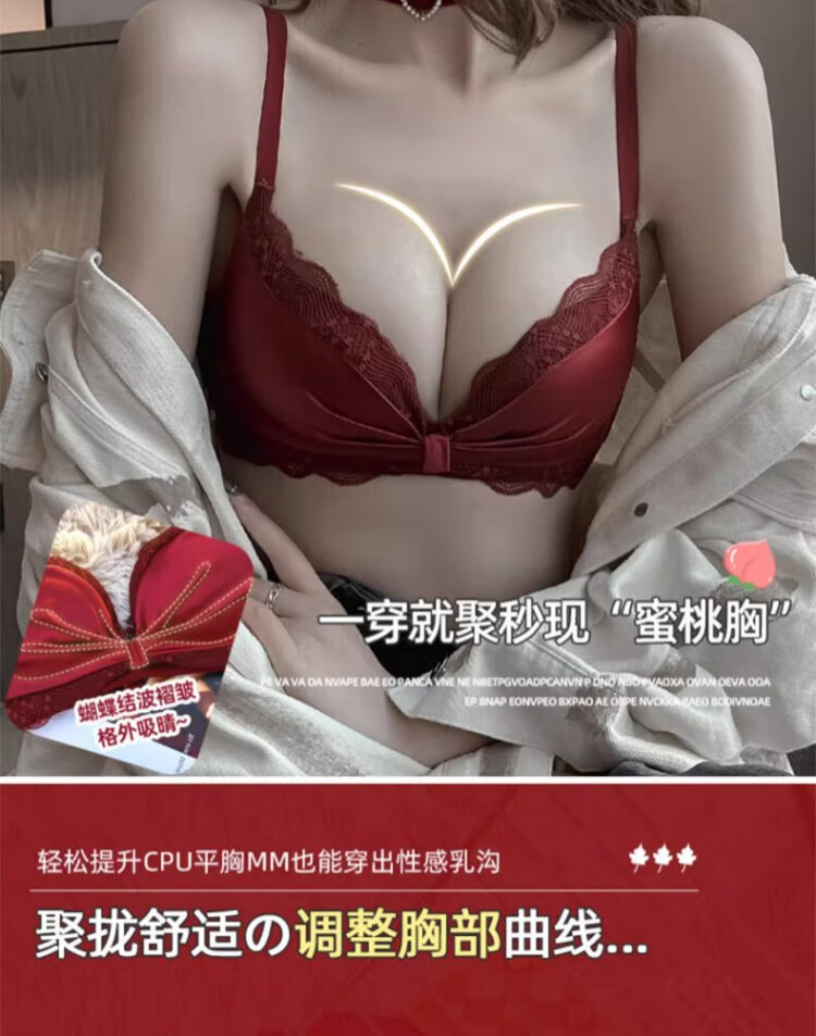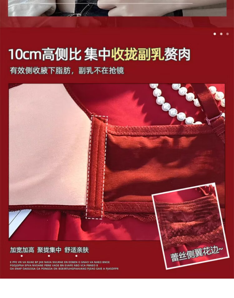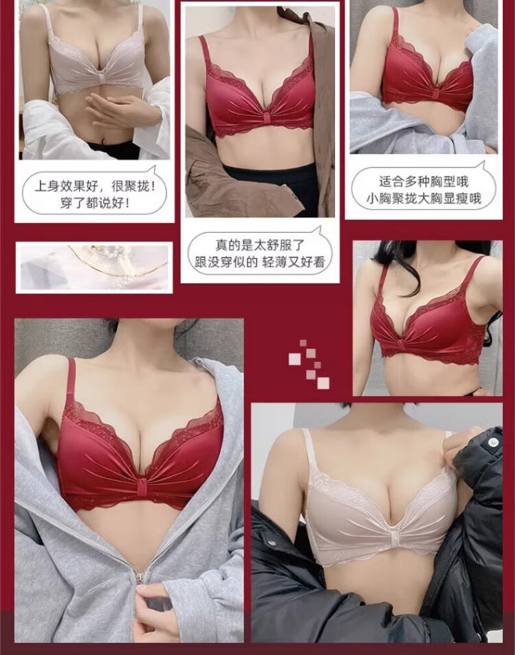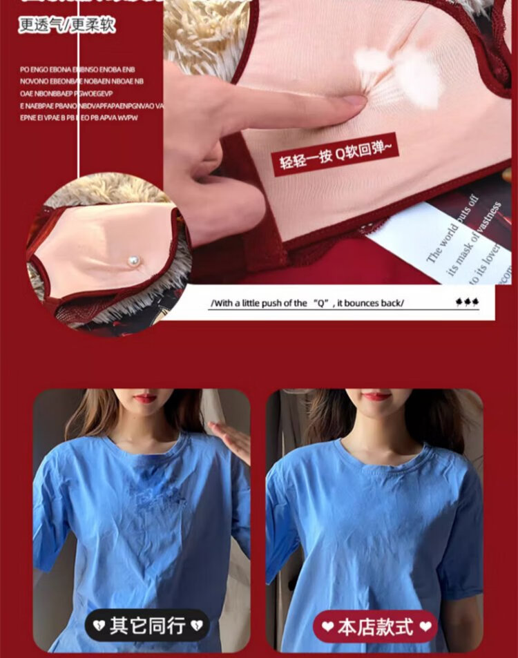 Langsha suit bra red underwear for women's birth year seamless new small breast medium thick cup push up to look bigger without wire bra burgundy suit 75A B=34AB