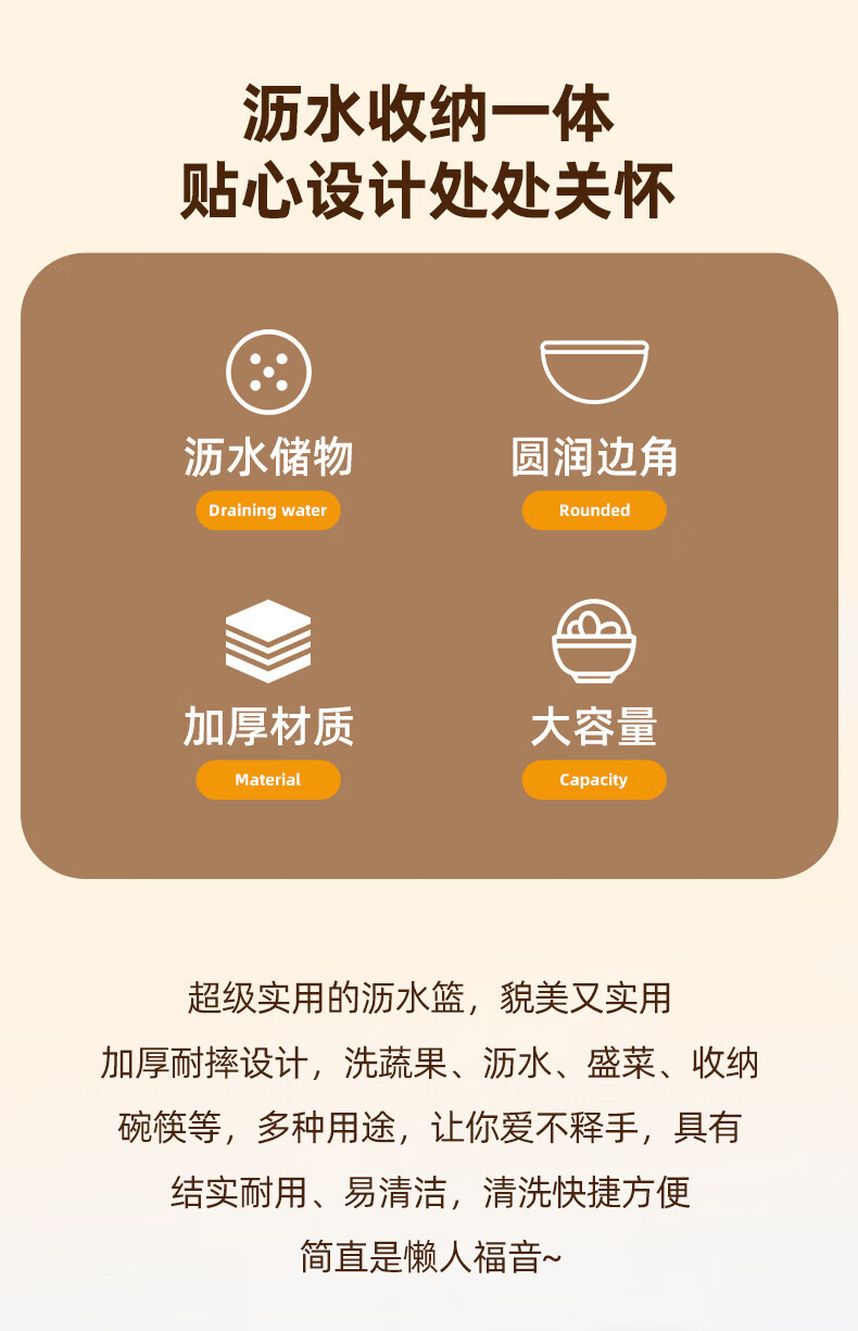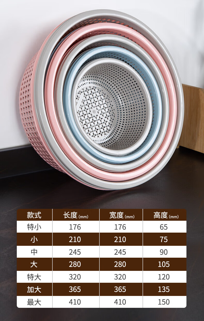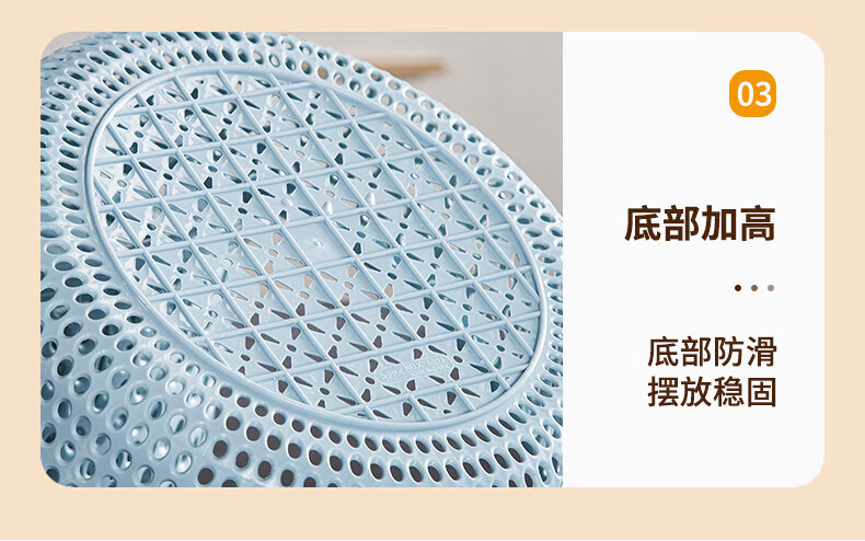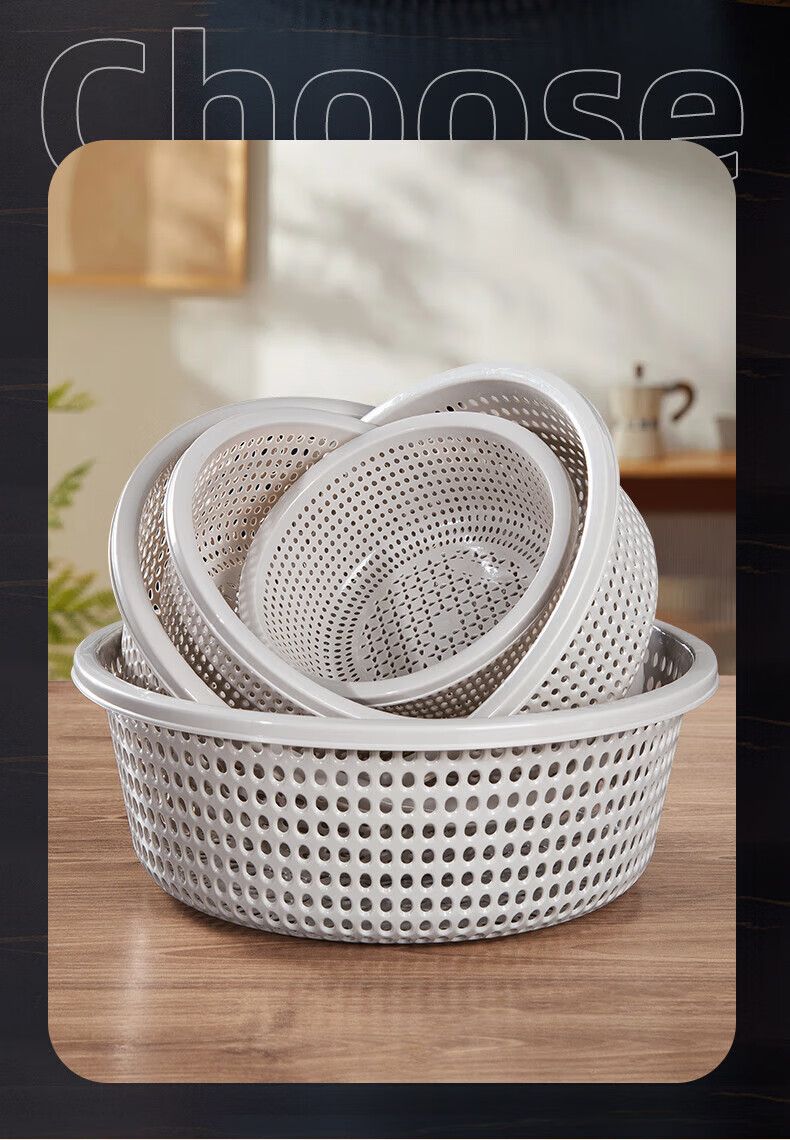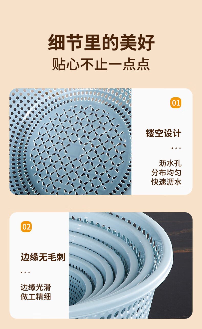 Tanqi kitchen drain basket plastic fruit washing sieve vegetable sieve household vegetable basin extra thick round hollow vegetable basket three-piece set pastoral powder large single (41cm)