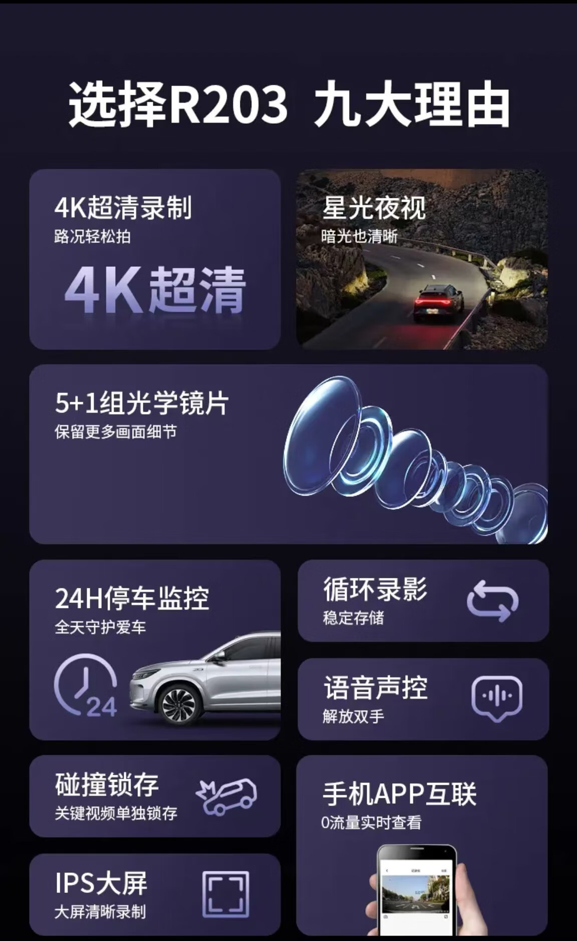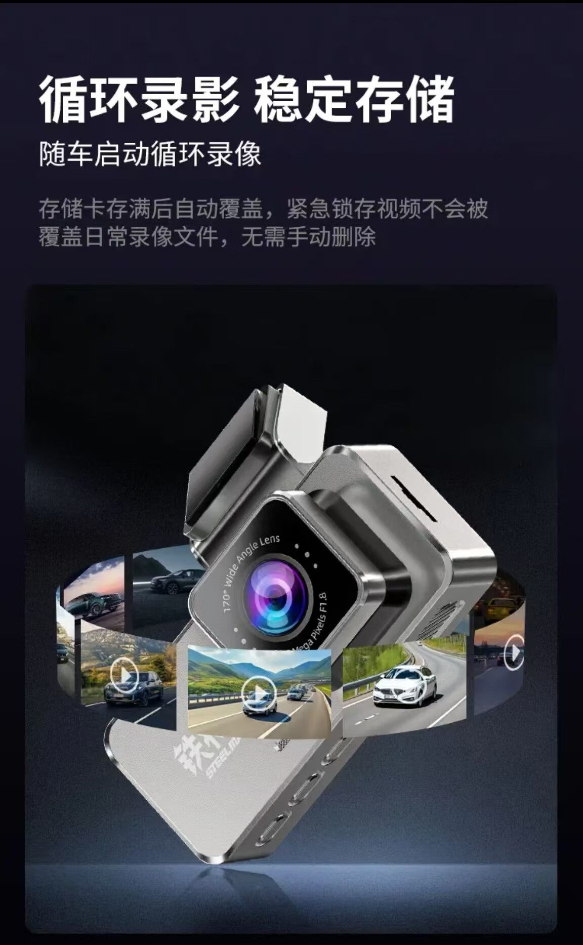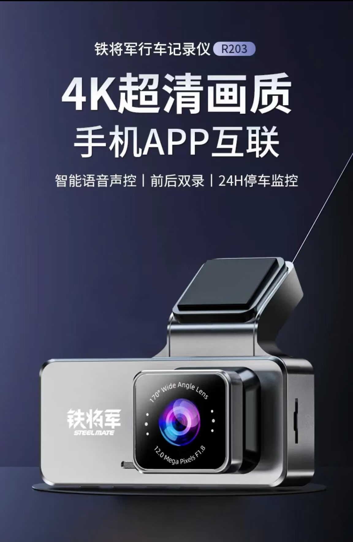Iron General Driving Recorder 4K Ultra HD Front and Rear Dual Recording Reversing Video 24 Parking Monitoring New Hidden Recorder 4K Ultra HD Intelligent Voice Control Version + 64G Single Recording (Front Recording)