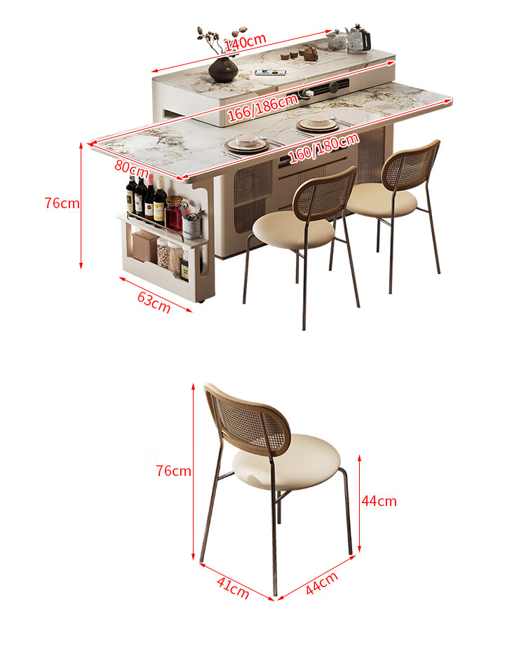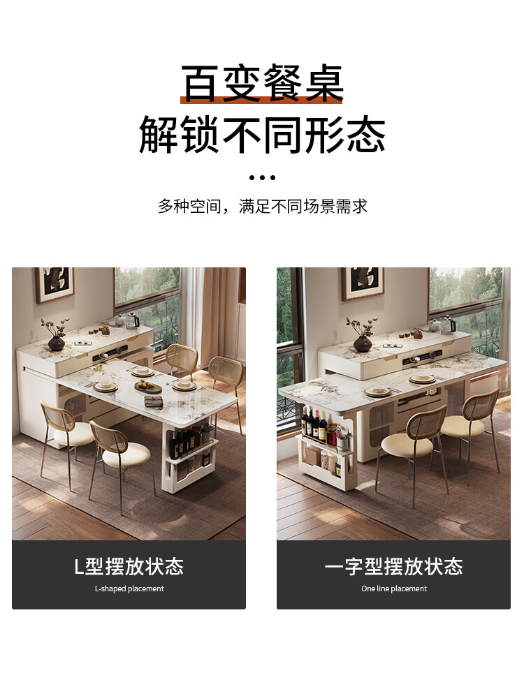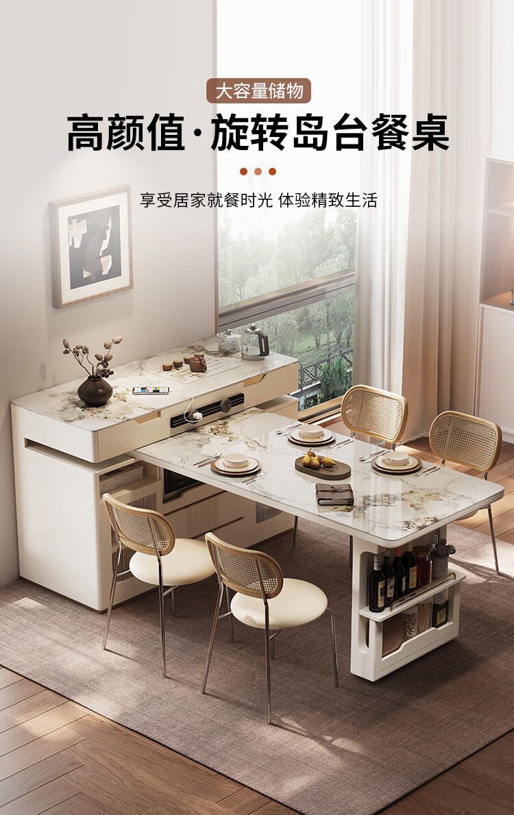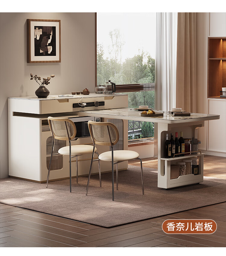 Sanke Furniture 2025 new high-end kitchen multi-functional sideboard bar guide island dining table integrated household retractable rotating 1.4m island + 1.6m dining table (with tea)