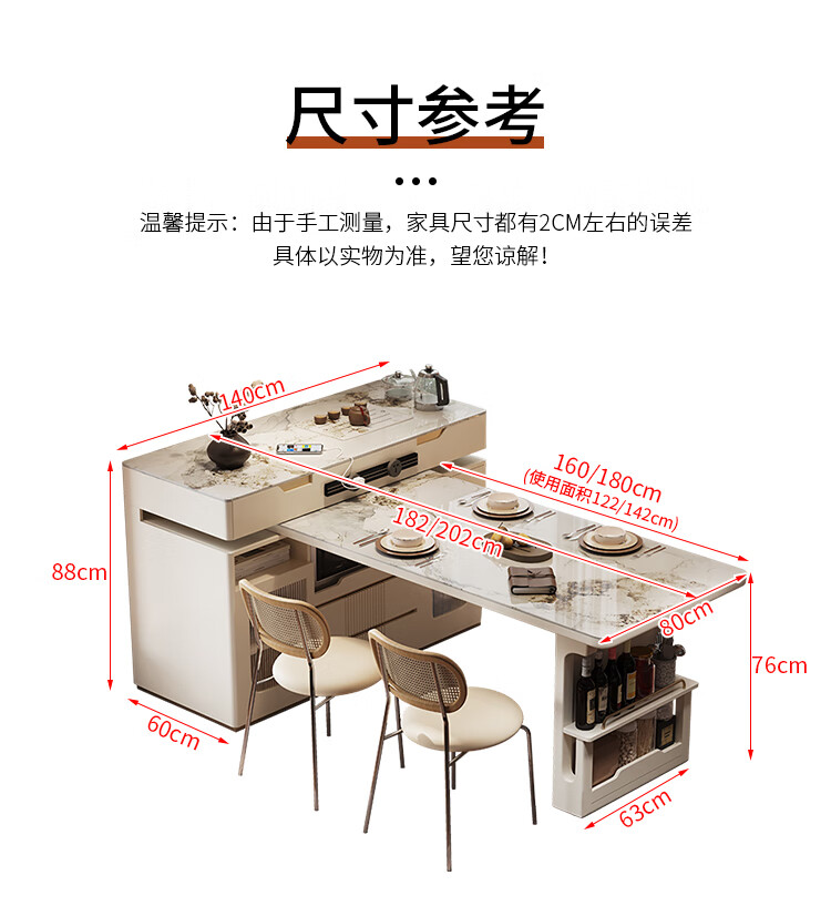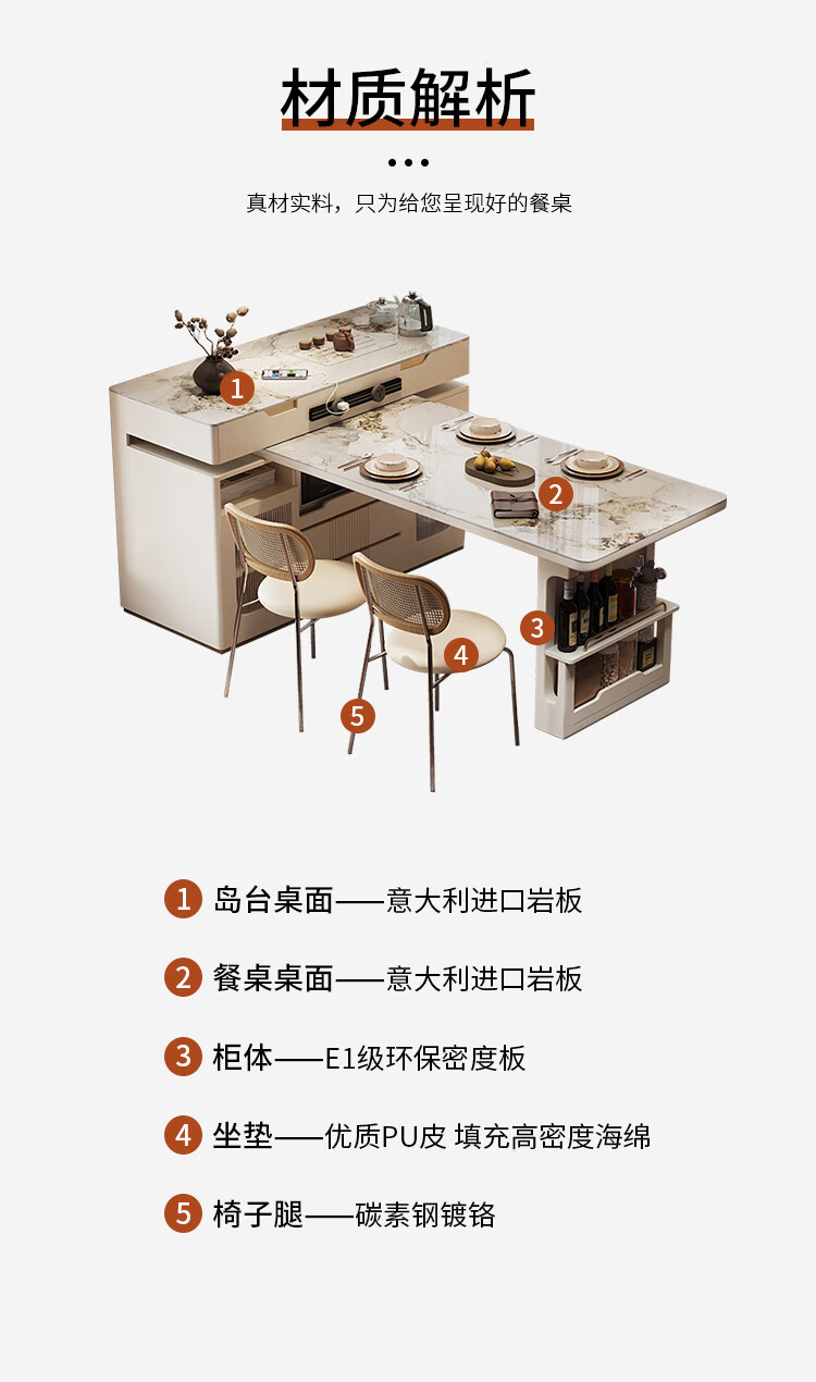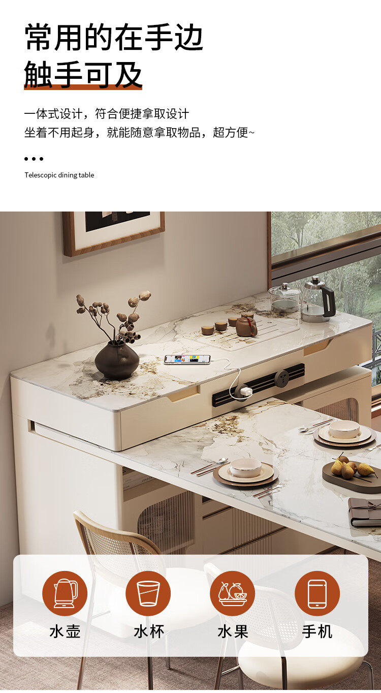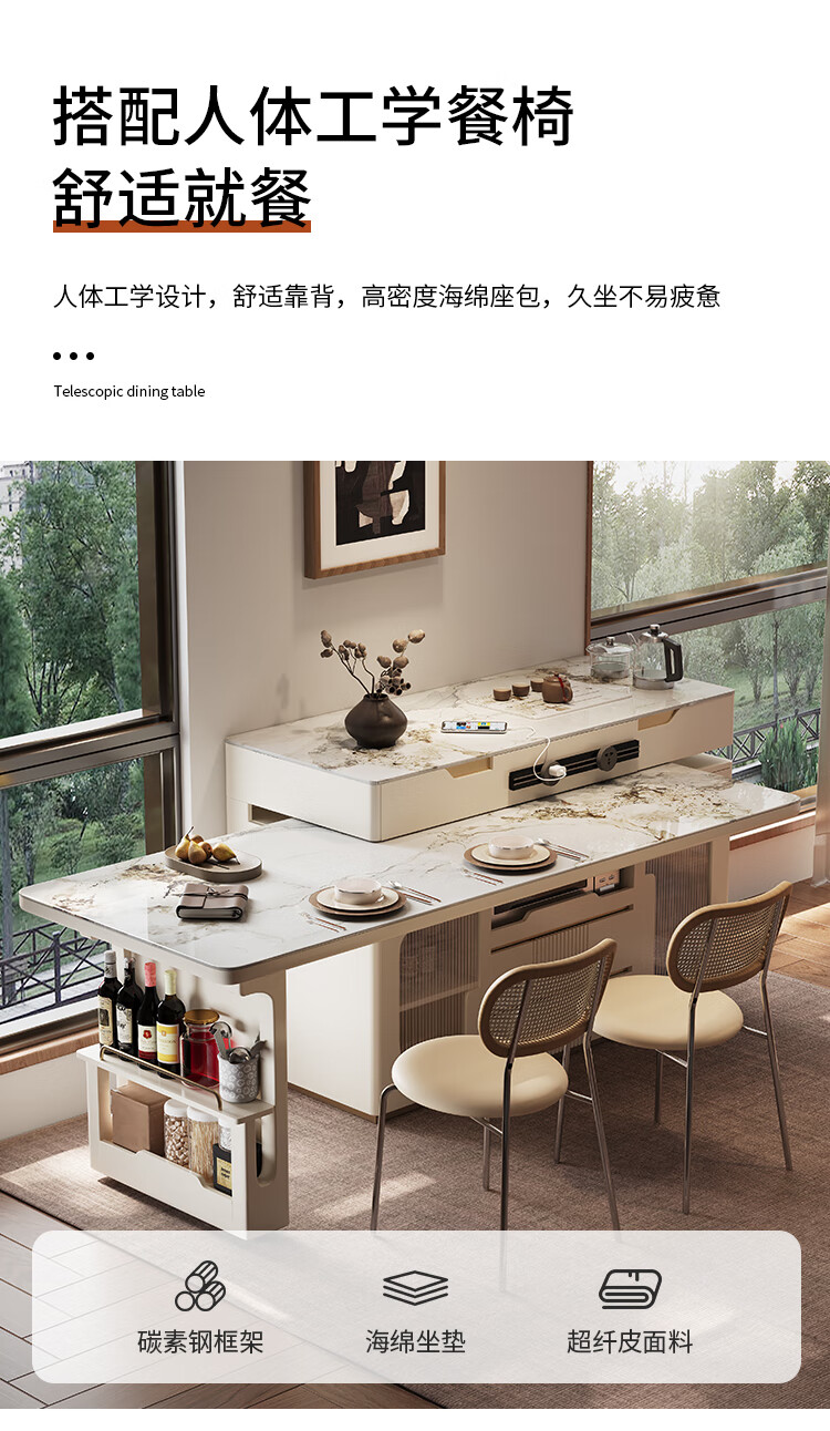 Sanke Furniture 2025 new high-end kitchen multi-functional sideboard bar guide island dining table integrated household retractable rotating 1.4m island + 1.6m dining table (with tea)
