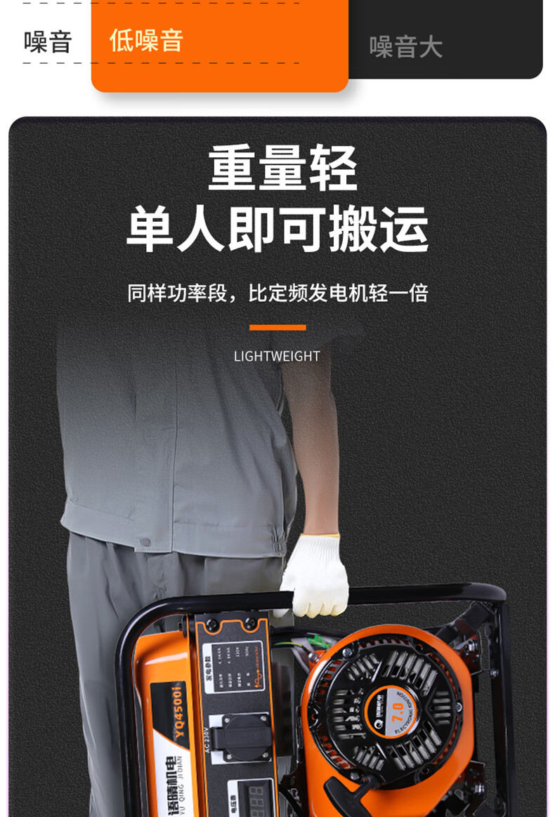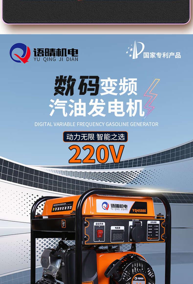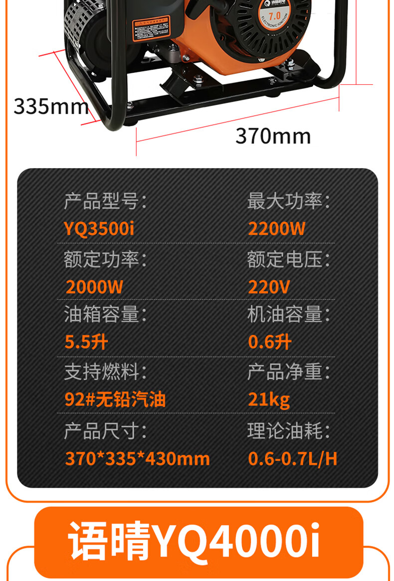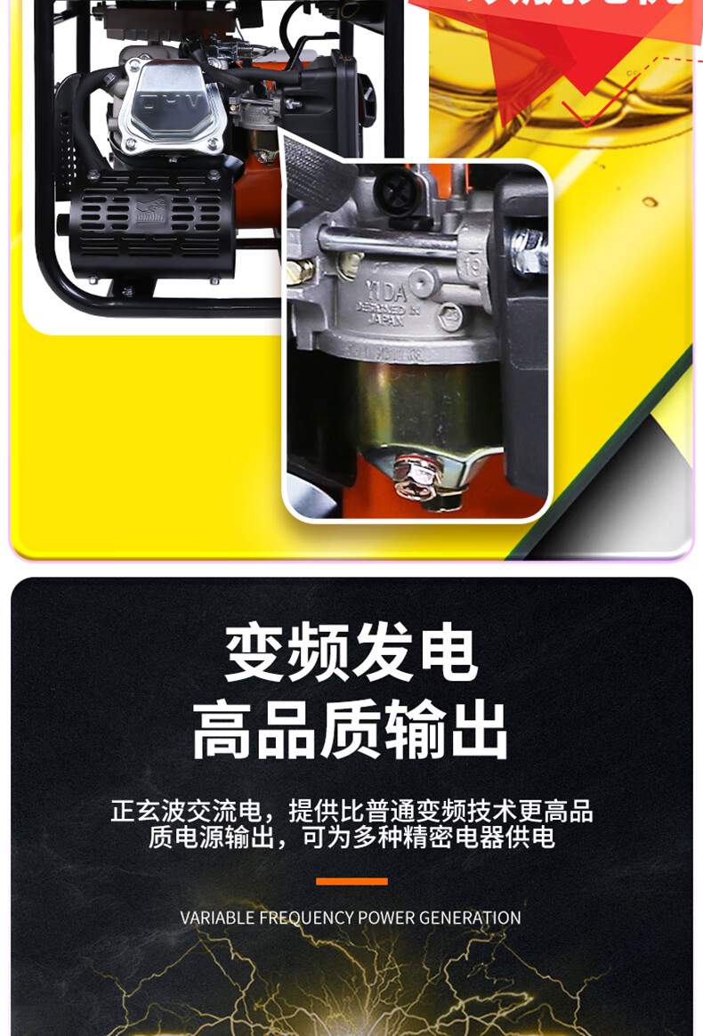 Yuqing gasoline generator 220V high power intelligent variable frequency household low noise portable small outdoor commercial power supply variable frequency 2200W hand start 5.5 liter large fuel tank