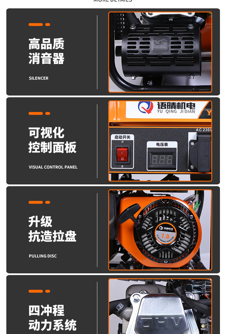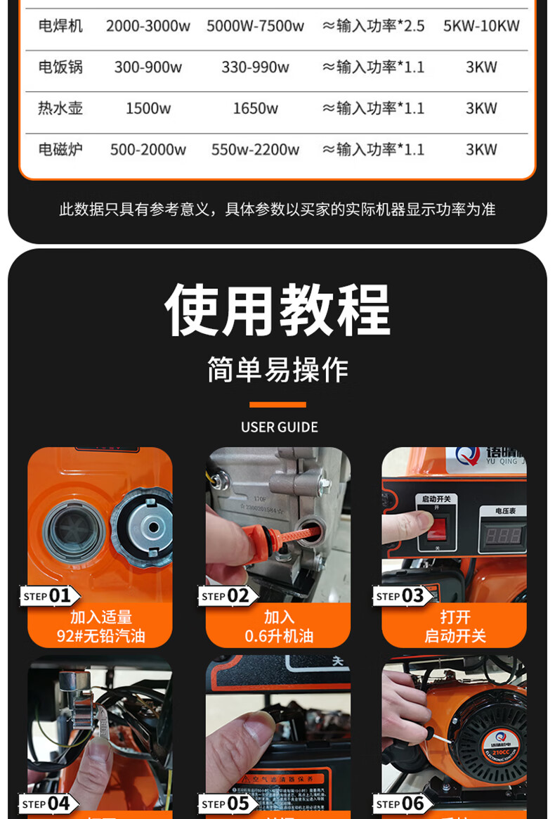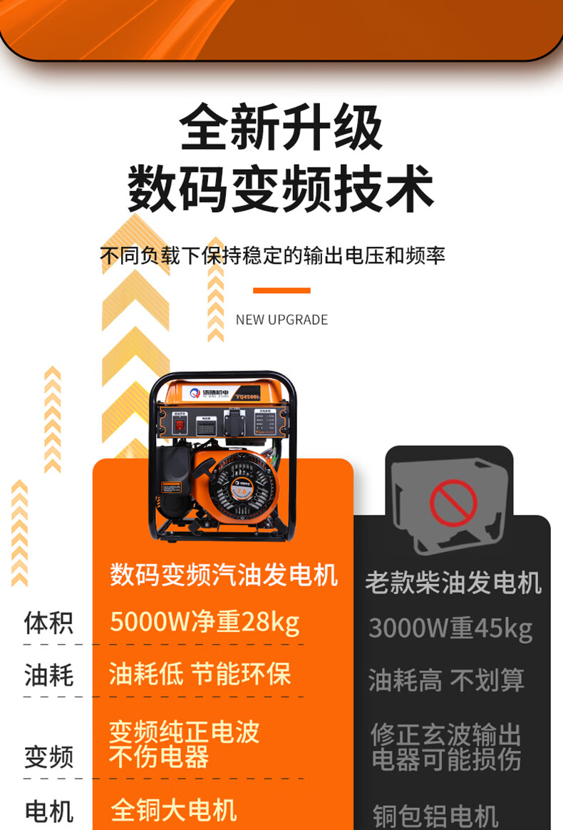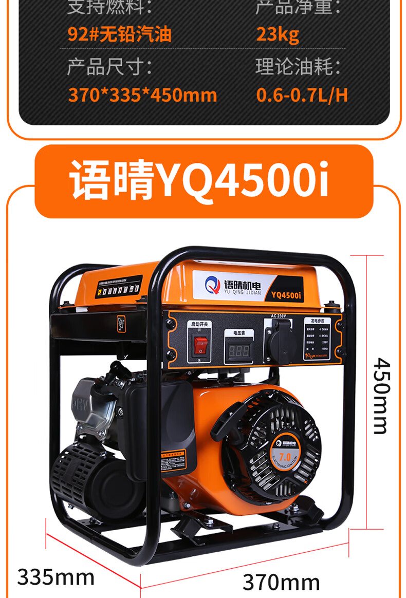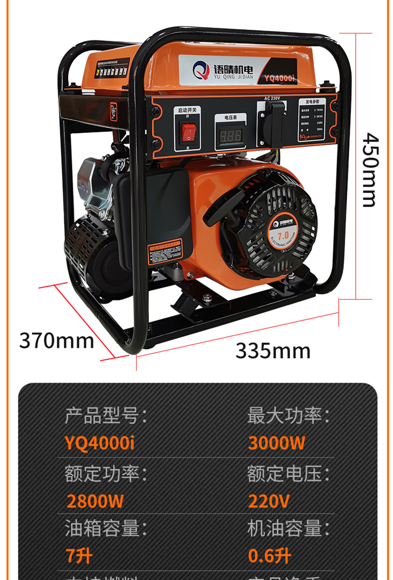 Yuqing gasoline generator 220V high power intelligent variable frequency household low noise portable small outdoor commercial power supply variable frequency 2200W hand start 5.5 liter large fuel tank