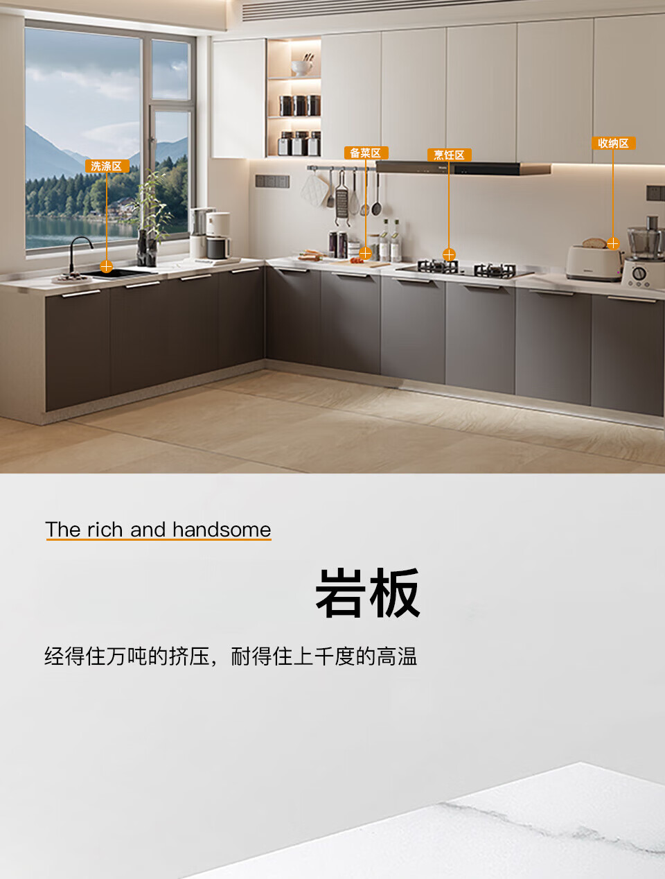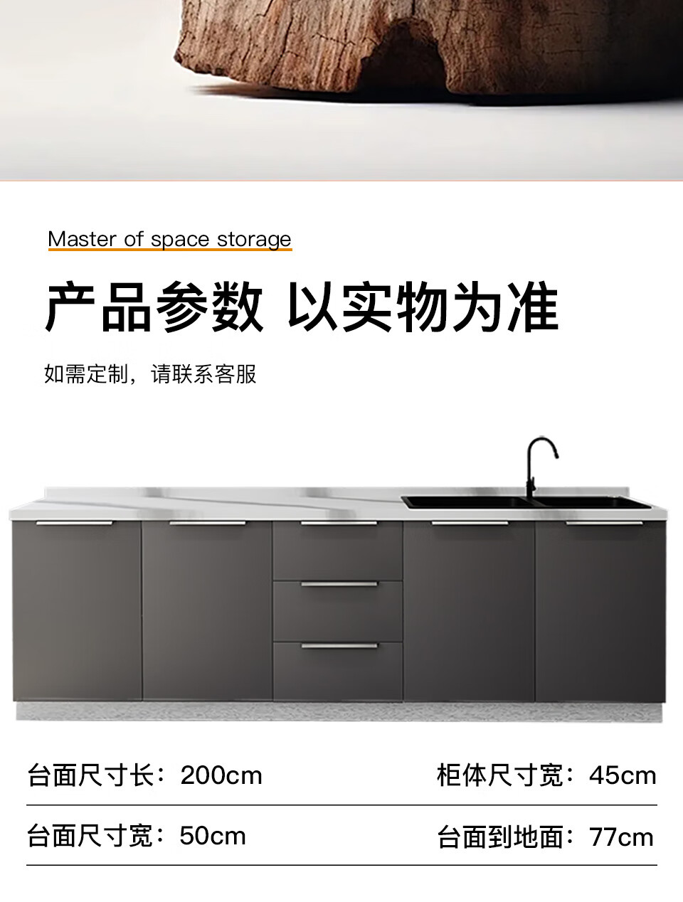 Xili kitchen cabinets marble slate countertop cabinets stove integrated cabinet household multi-functional solid wood cabinet flat style extra thick slate 120 two doors three drawers + slate