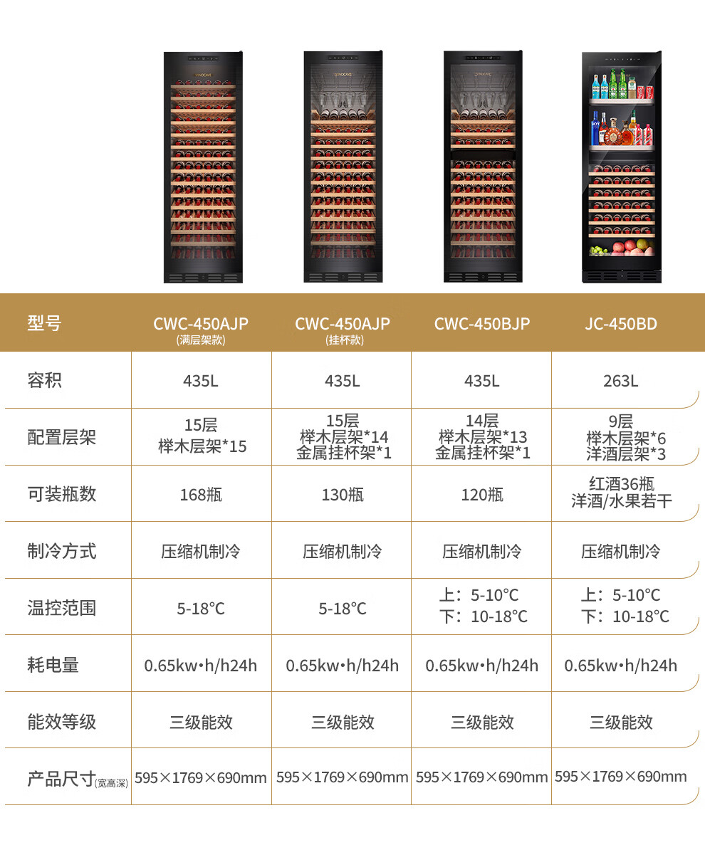 Vinocave red wine cabinet constant temperature wine cabinet home living room ice bar air-cooled frost-free moisturizing refrigerator embedded multi-functional dual temperature dual control ultra-large capacity display cabinet ultra-large capacity - full shelf model 168 bottles