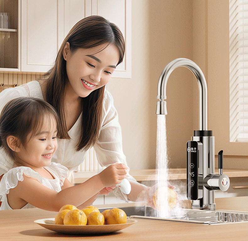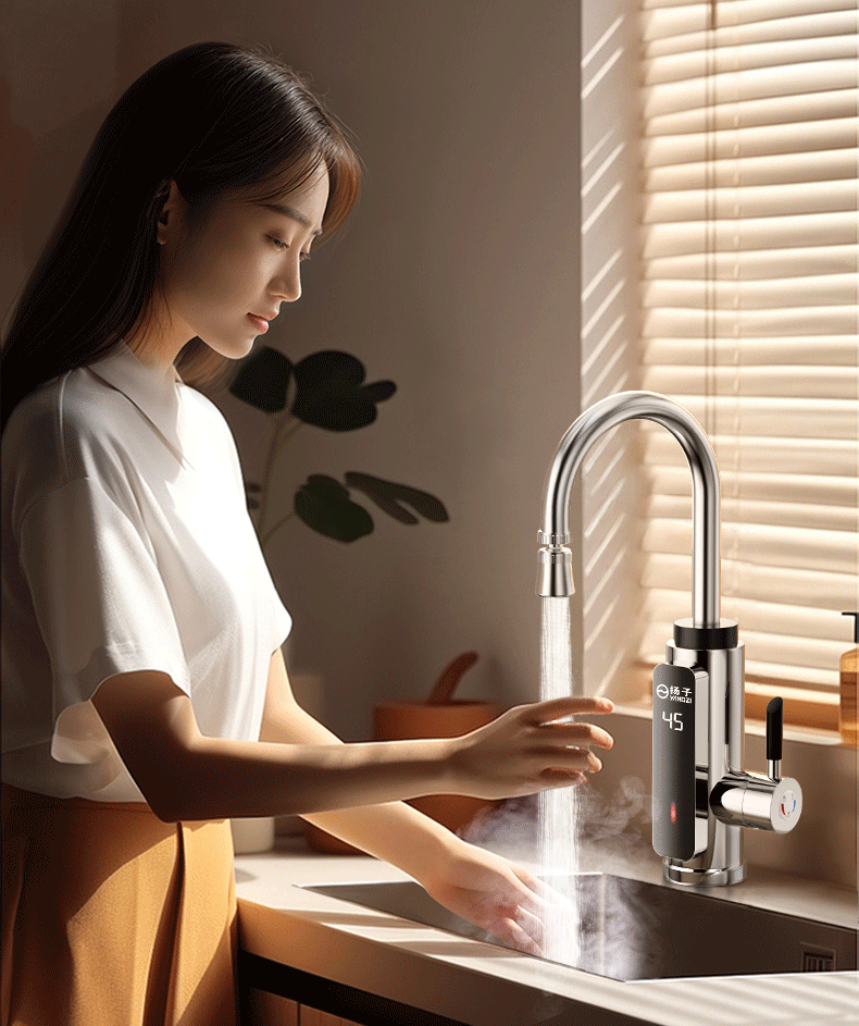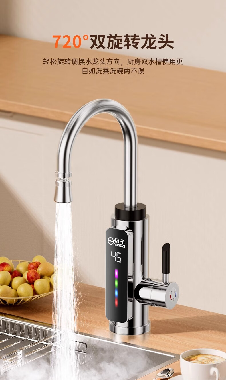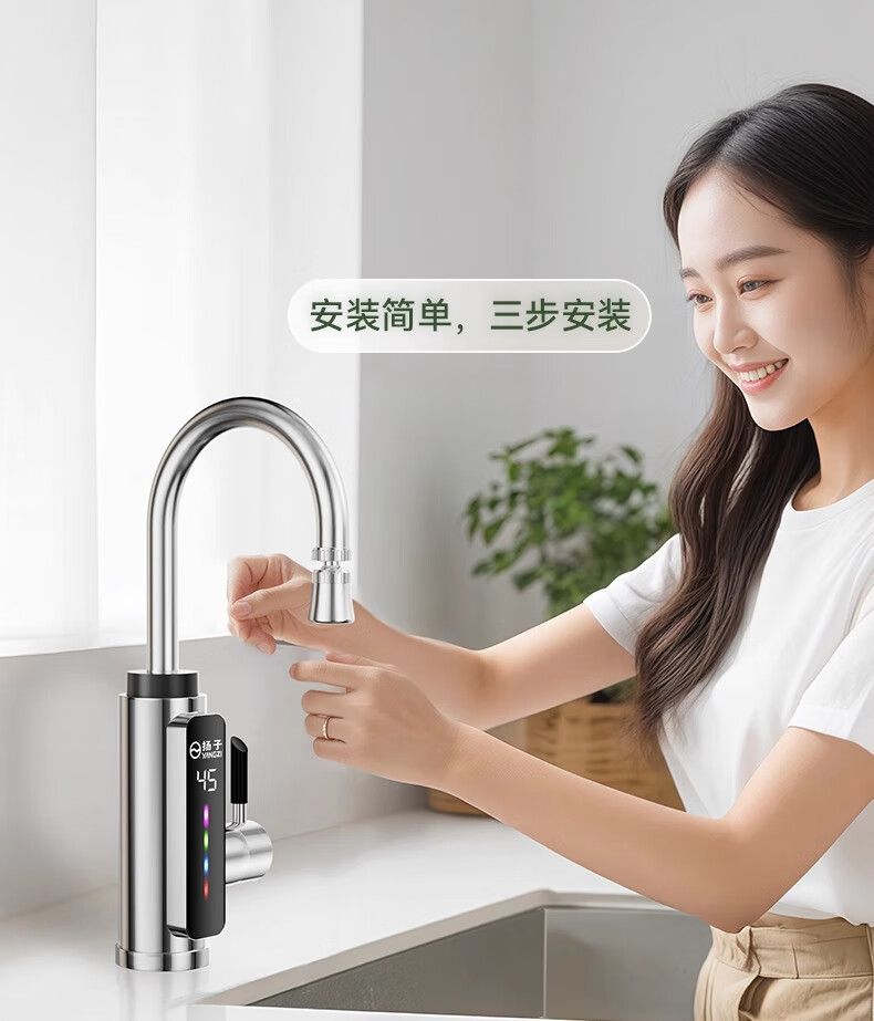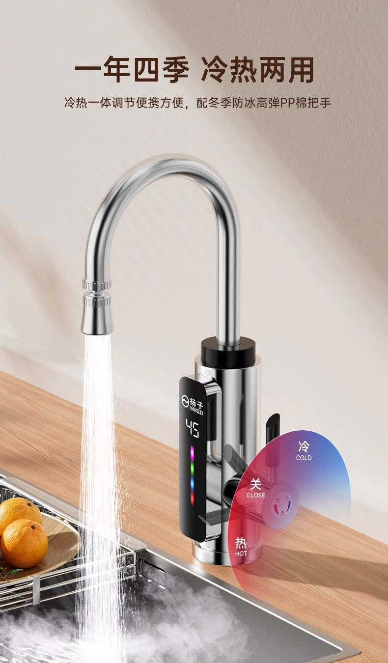 Yangzi electric hot water faucet instant hot kitchen fast heating faucet instant hot small kitchen treasure electric water heater bathroom basin instant hot faucet frequency conversion constant temperature kitchen and bathroom special intelligent digital display constant temperature white - free leakage protection + universal head