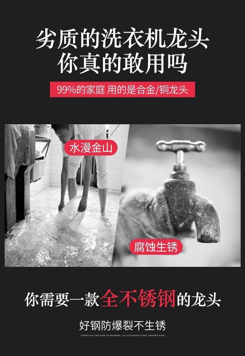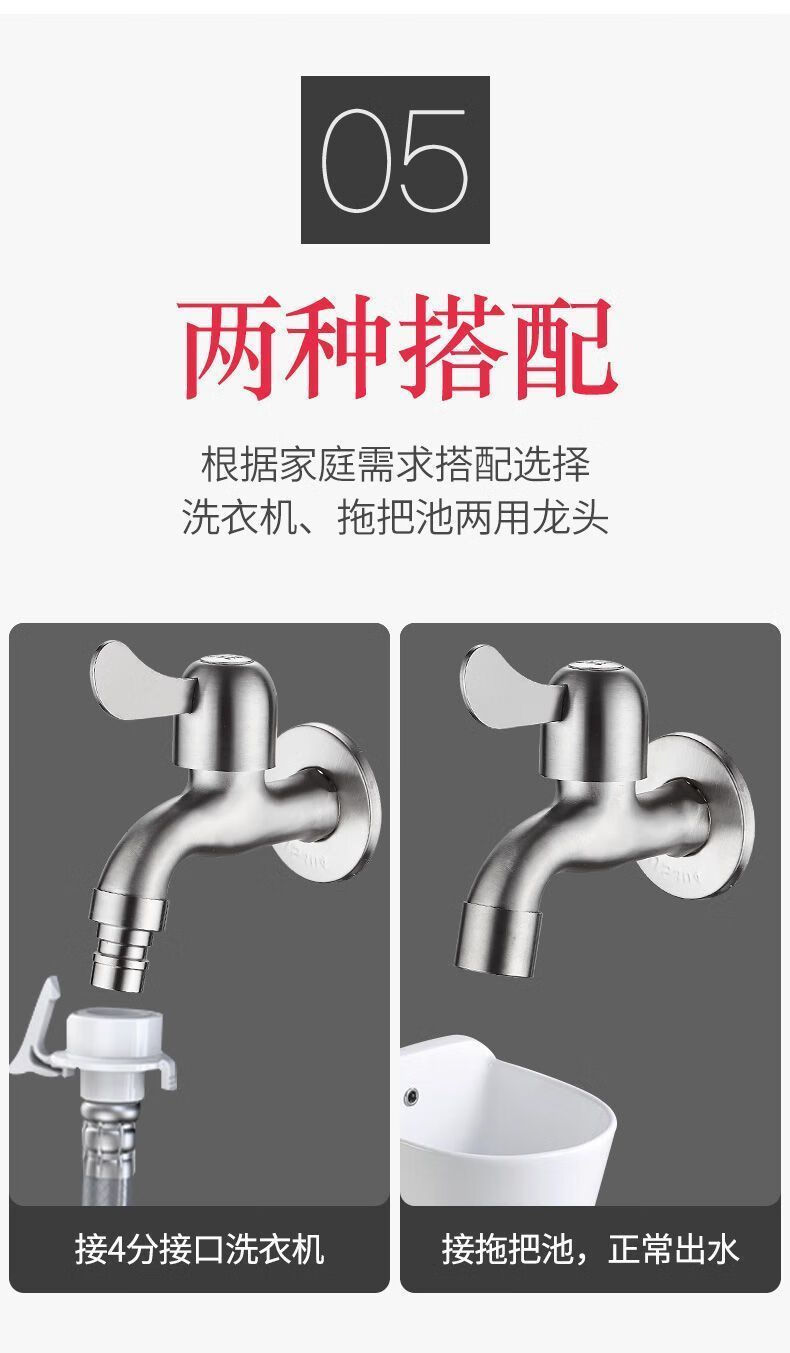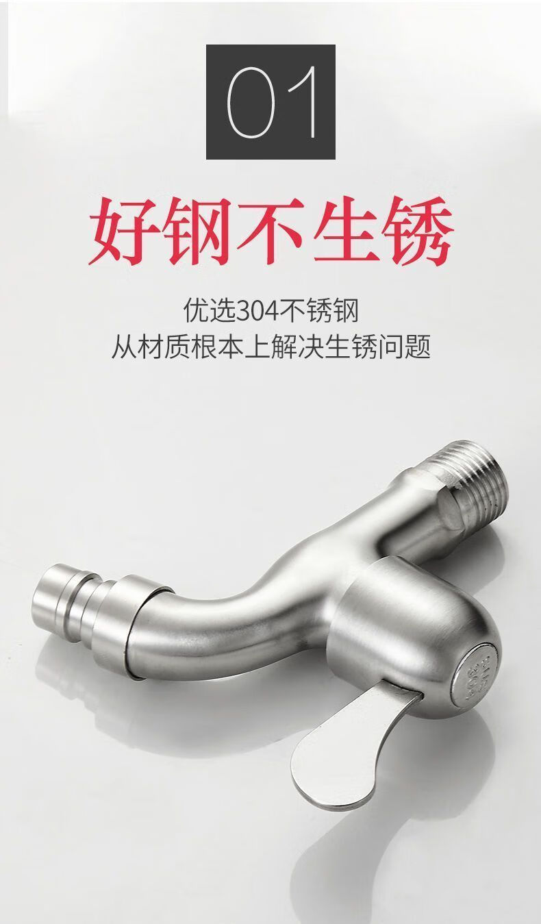 Haiyiduo 304 stainless steel faucet for washing machine, one in, two out, dual-use faucet, 4-point household tap water switch, 4-point faucet for washing machine