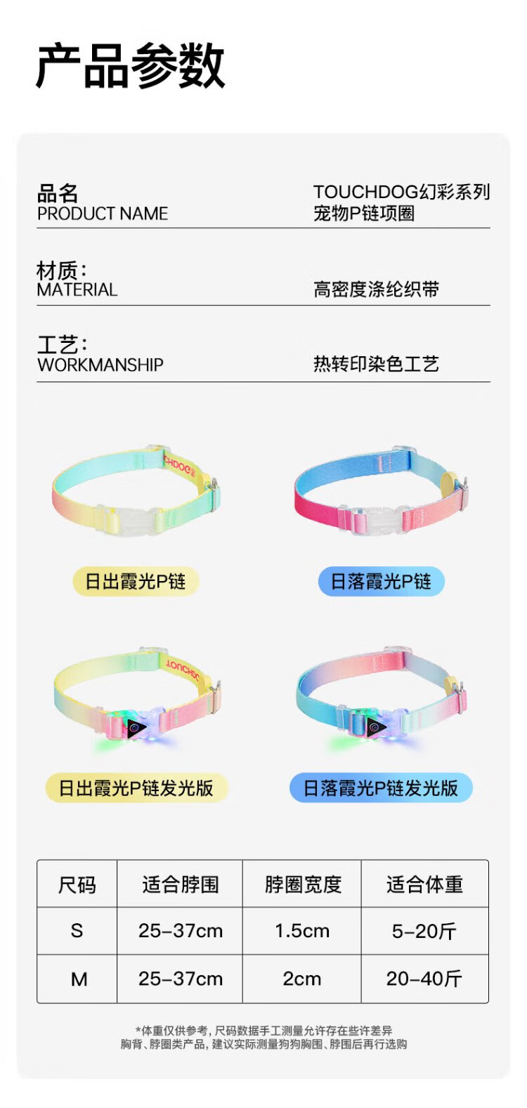 TOUCHDOG it it dog p chain collar collar traction rope dog walking chain small, medium and large dog training dog pet explosion-proof punch P chain-Sunrise Xiaguang S size recommended 5-20 pounds