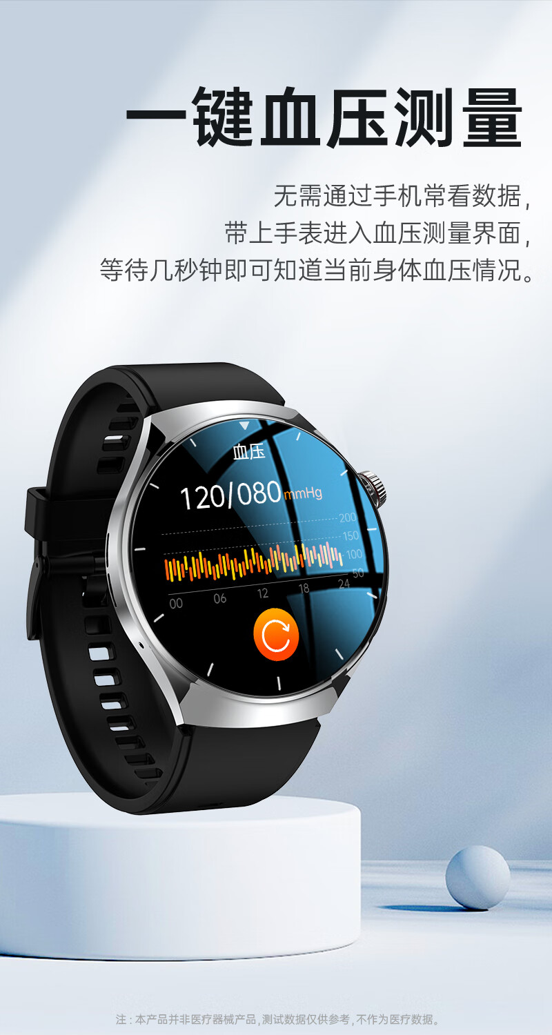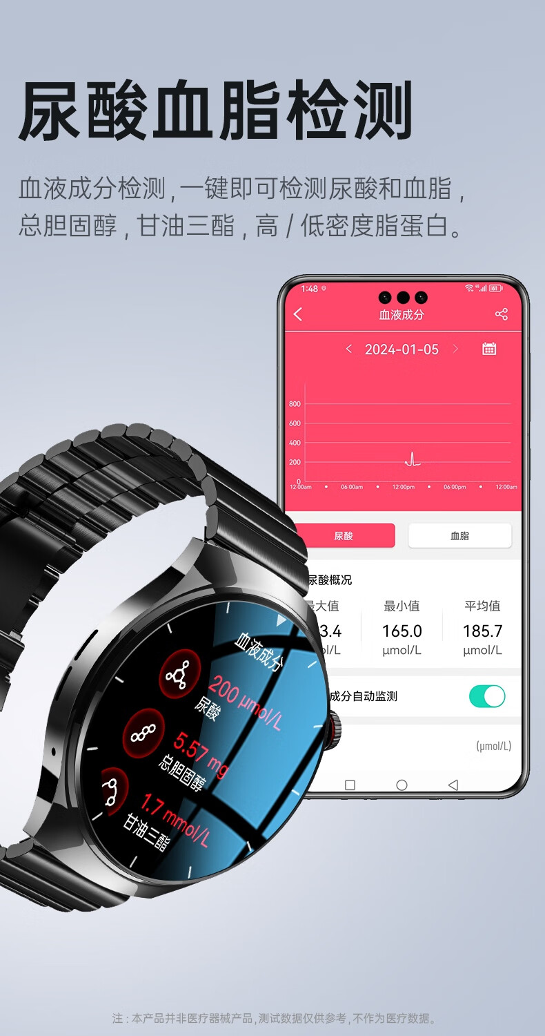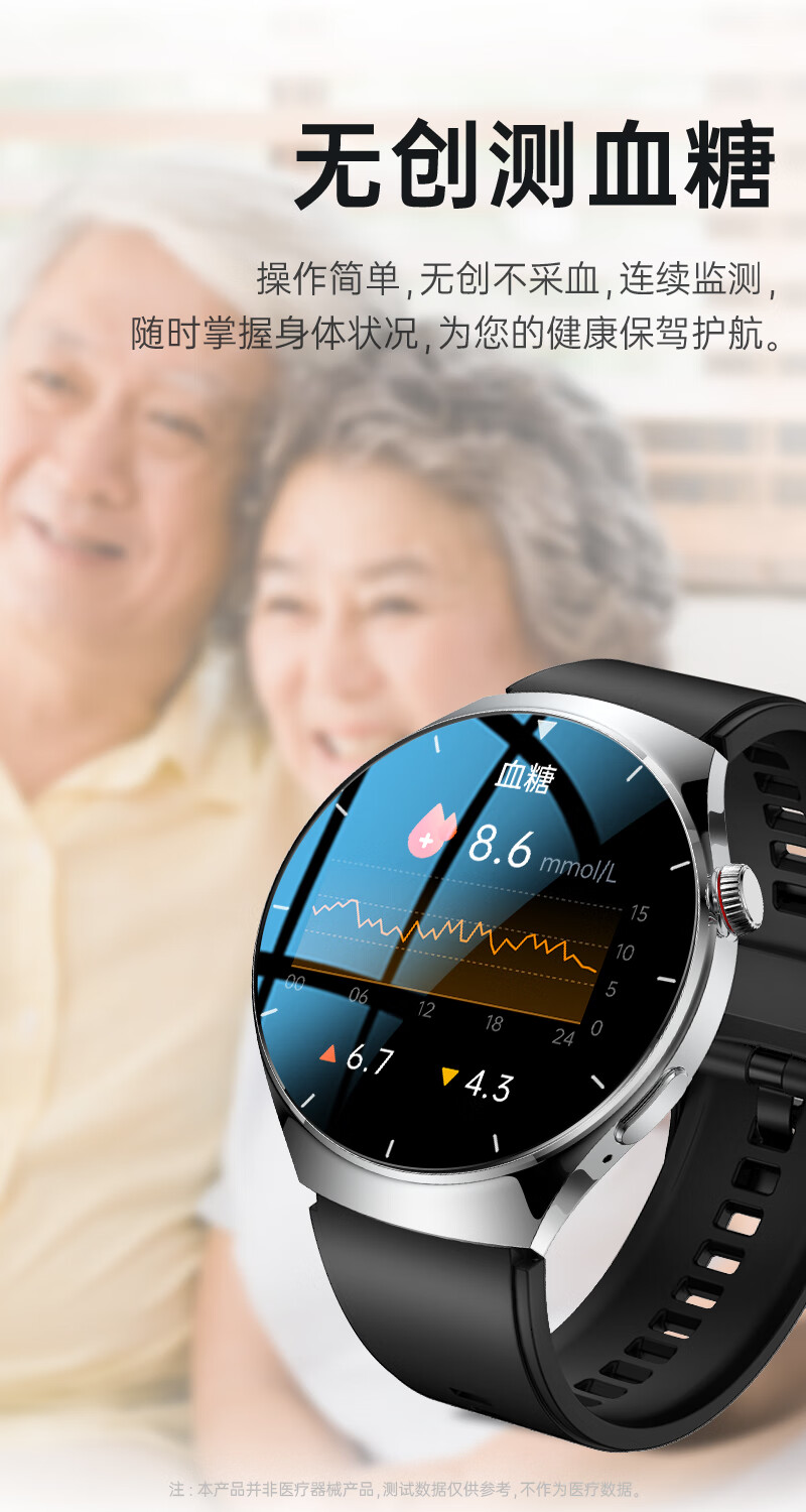 HJZY Hongmeng Huawei mobile phone suitable for blood glucose and blood pressure monitoring watch smart health monitoring blood pressure heart rate measurement blood oxygen blood sugar blood lipids uric acid call all-in-one machine top version black supports uric acid blood lipid monitoring + Bluetooth call health detection - upgraded accuracy - Bluetooth call