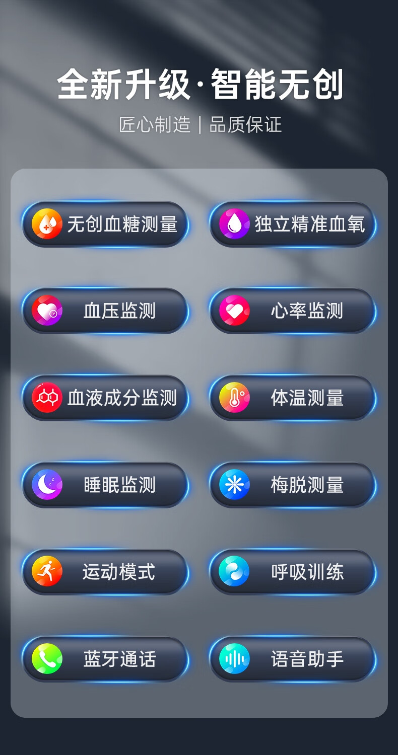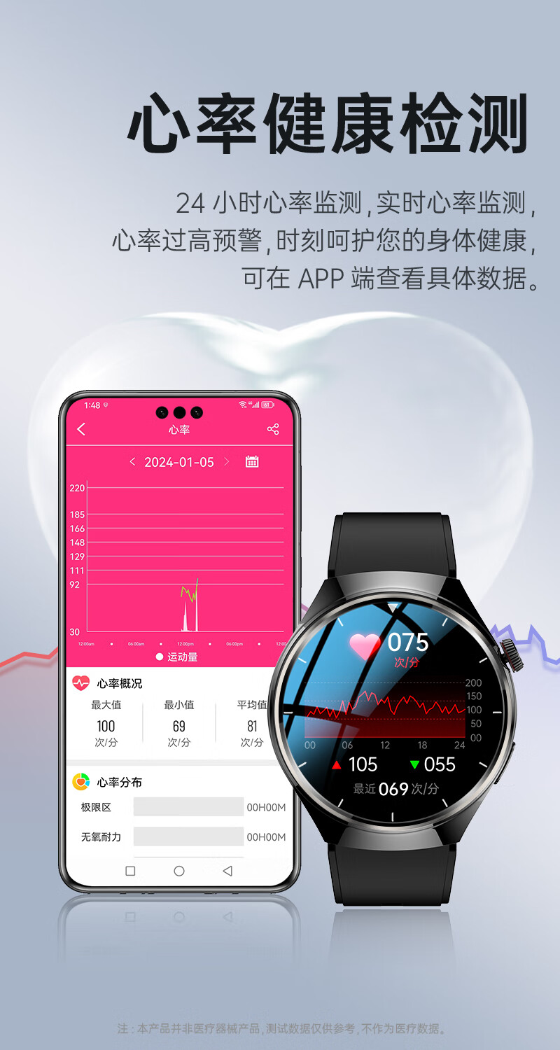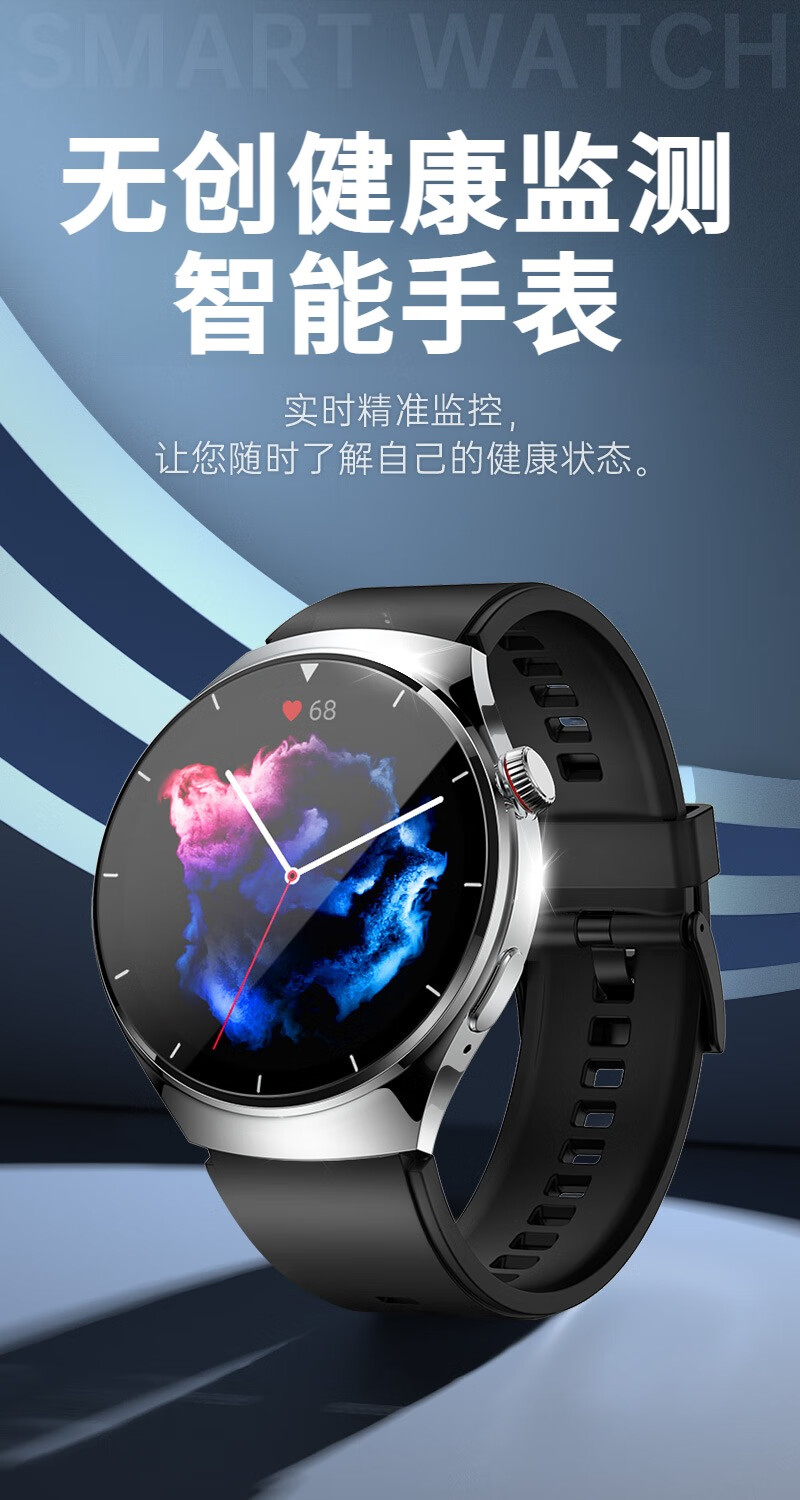 HJZY Hongmeng Huawei mobile phone suitable for blood glucose and blood pressure monitoring watch smart health monitoring blood pressure heart rate measurement blood oxygen blood sugar blood lipids uric acid call all-in-one machine top version black supports uric acid blood lipid monitoring + Bluetooth call health detection - upgraded accuracy - Bluetooth call