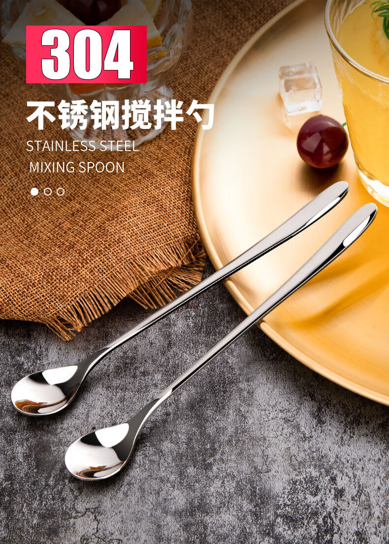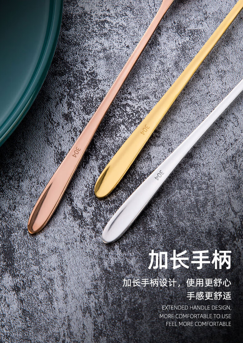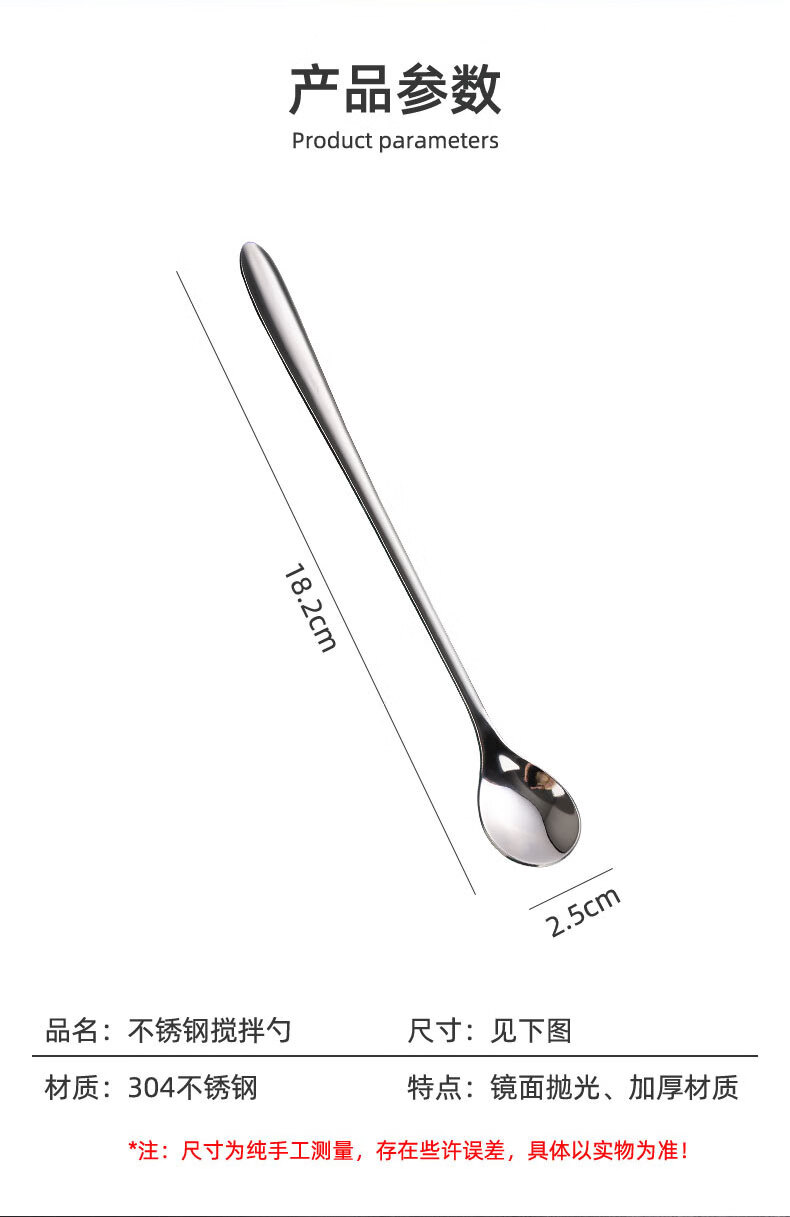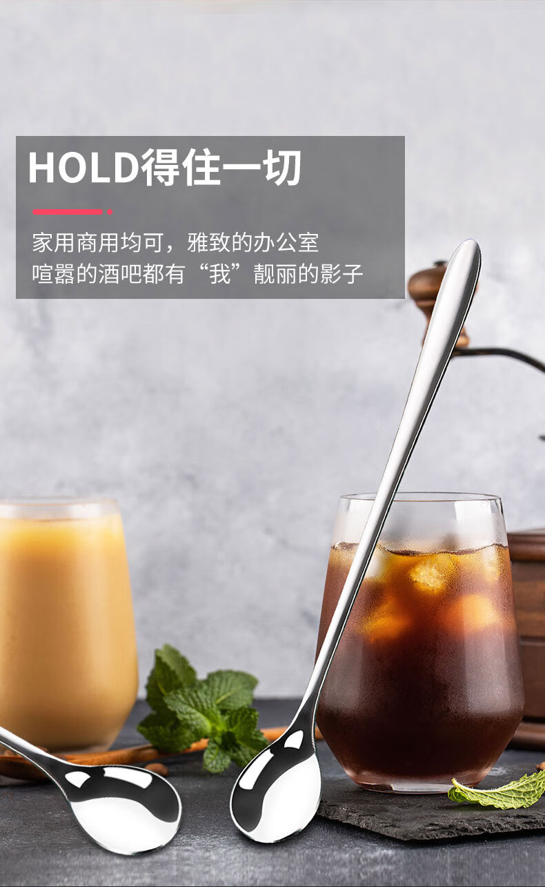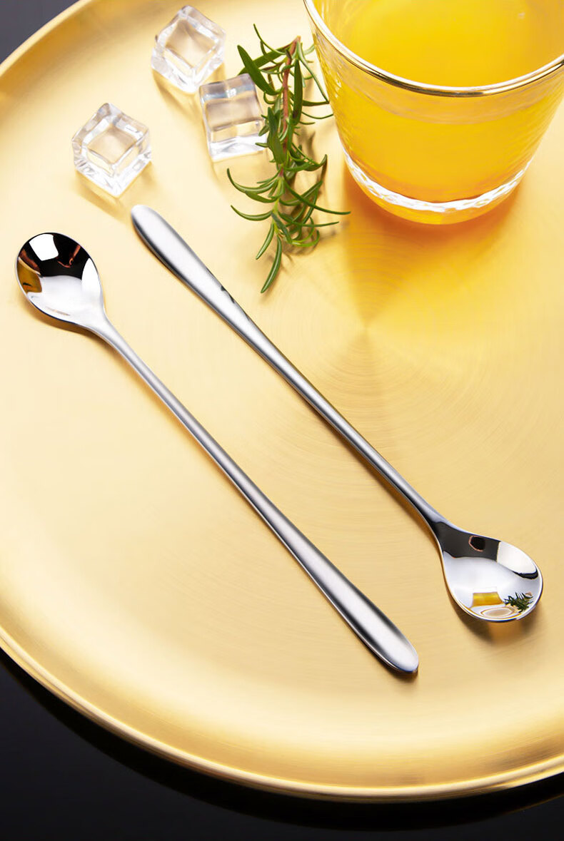 Shandianshui stainless steel long-handled mixing spoon, small spoon, seasoning spoon, coffee spoon, high-grade luxury ice spoon, dessert honey spoon, silver, thickened and upgraded
