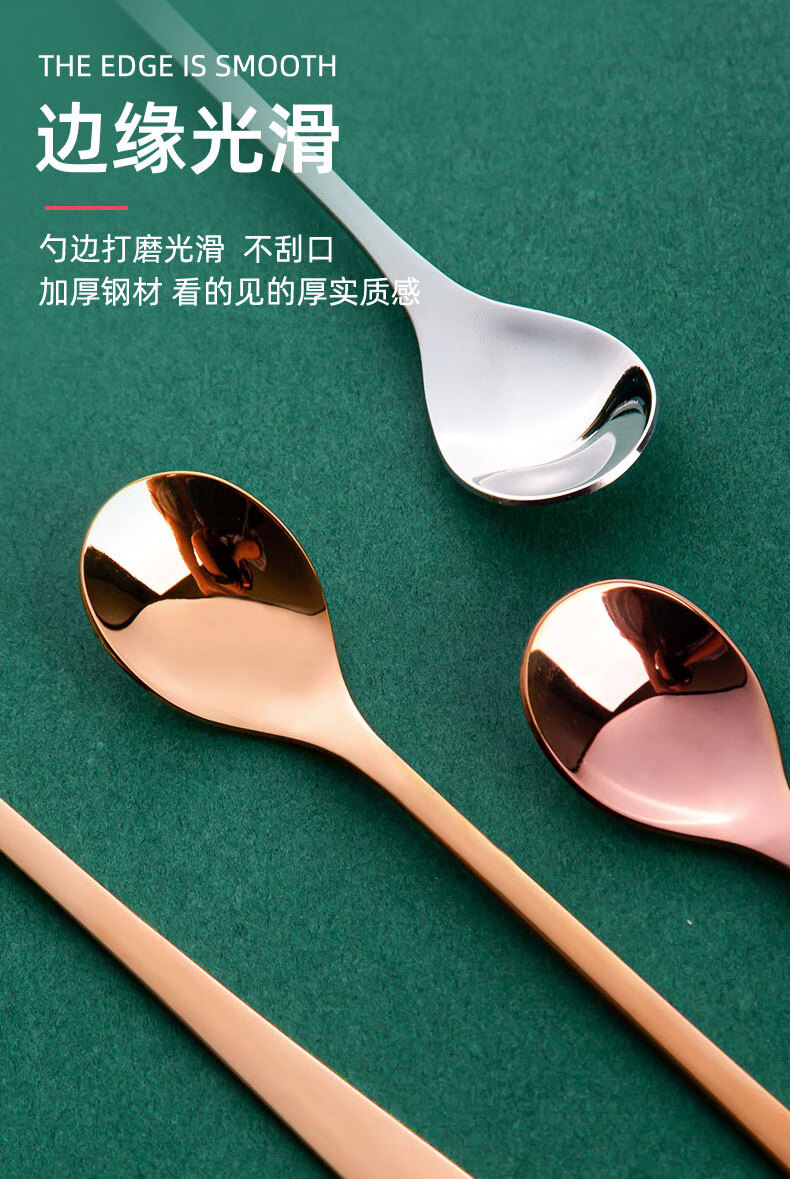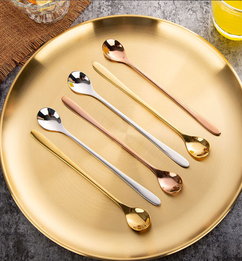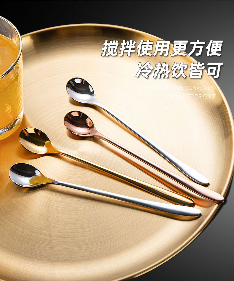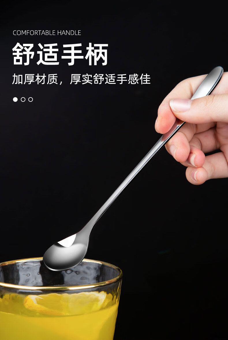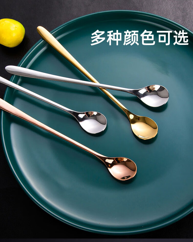 Shandianshui stainless steel long-handled mixing spoon, small spoon, seasoning spoon, coffee spoon, high-grade luxury ice spoon, dessert honey spoon, silver, thickened and upgraded