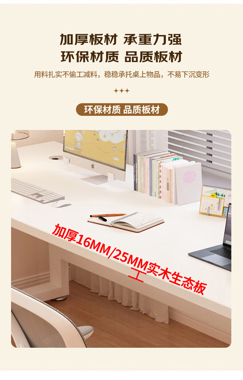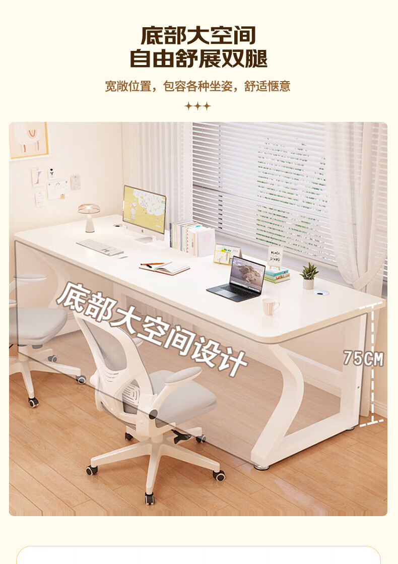 Su Hengbieyi solid wood computer desk rectangular desk simple modern study desk double desk desktop e-sports writing desk solid wood ecological board 16mm whiteboard + white shelf 120*60*75CM