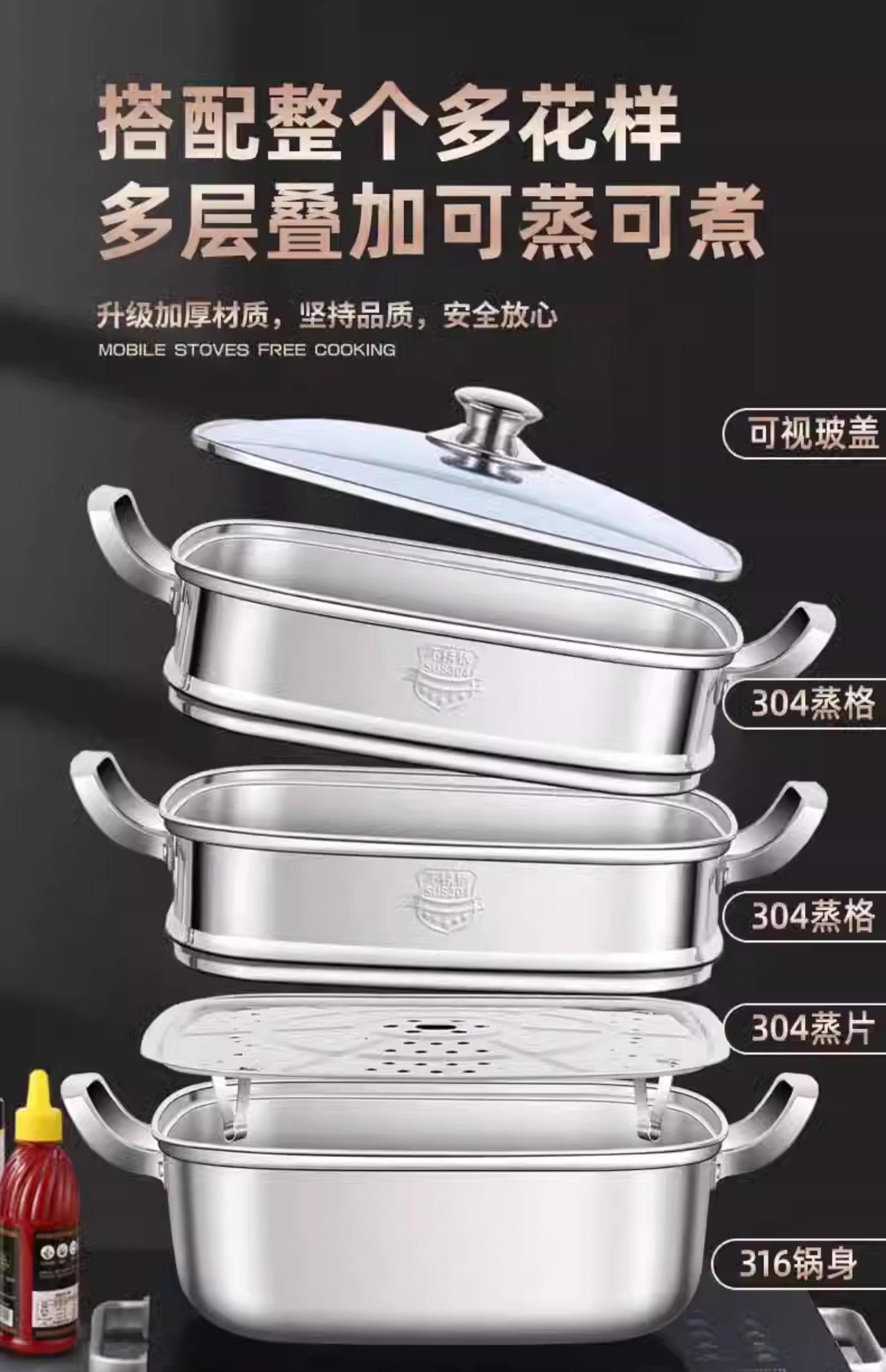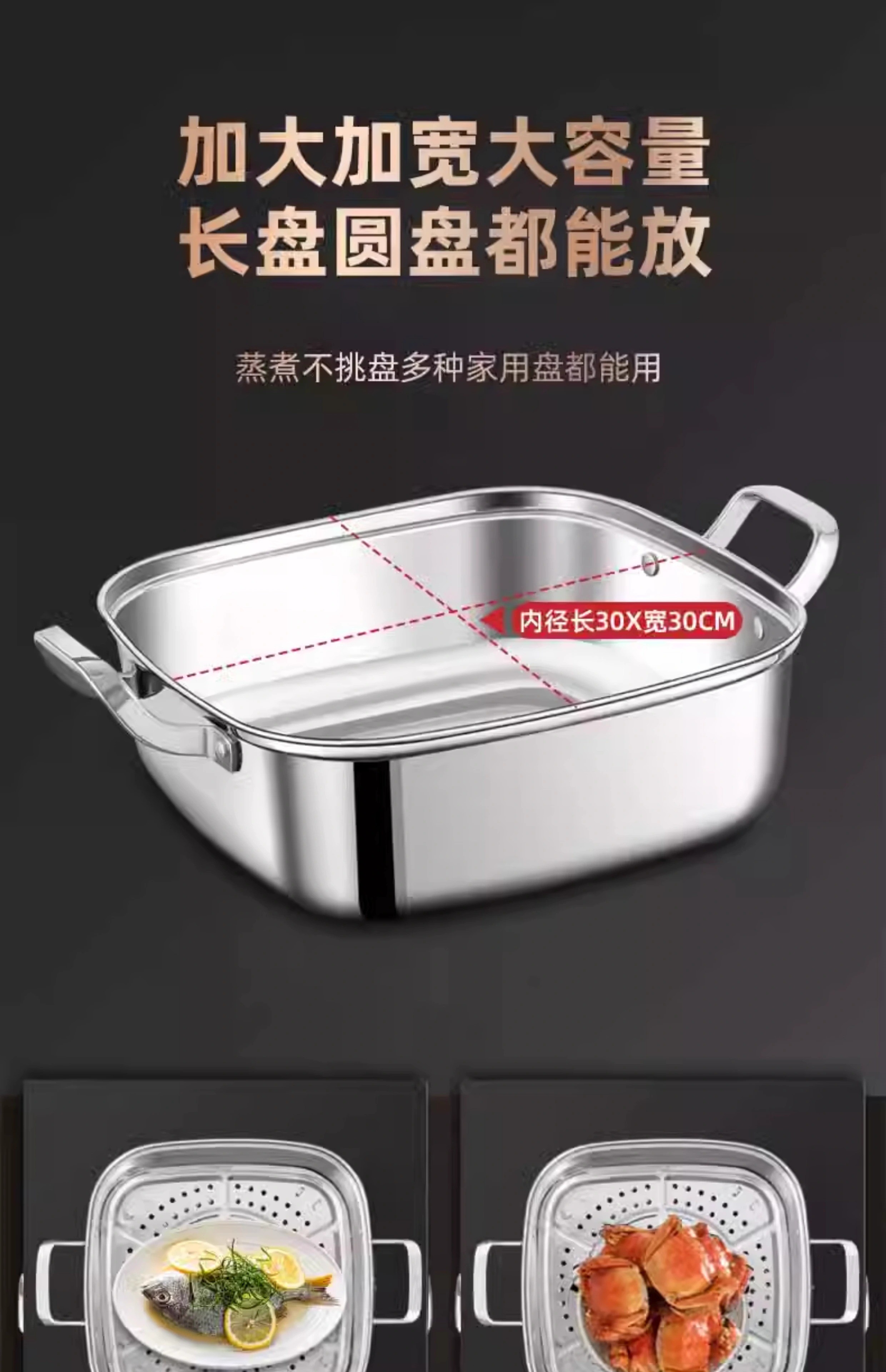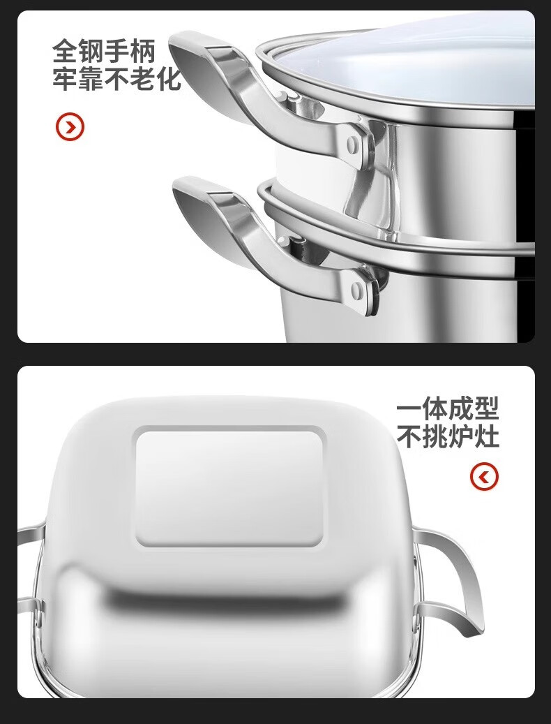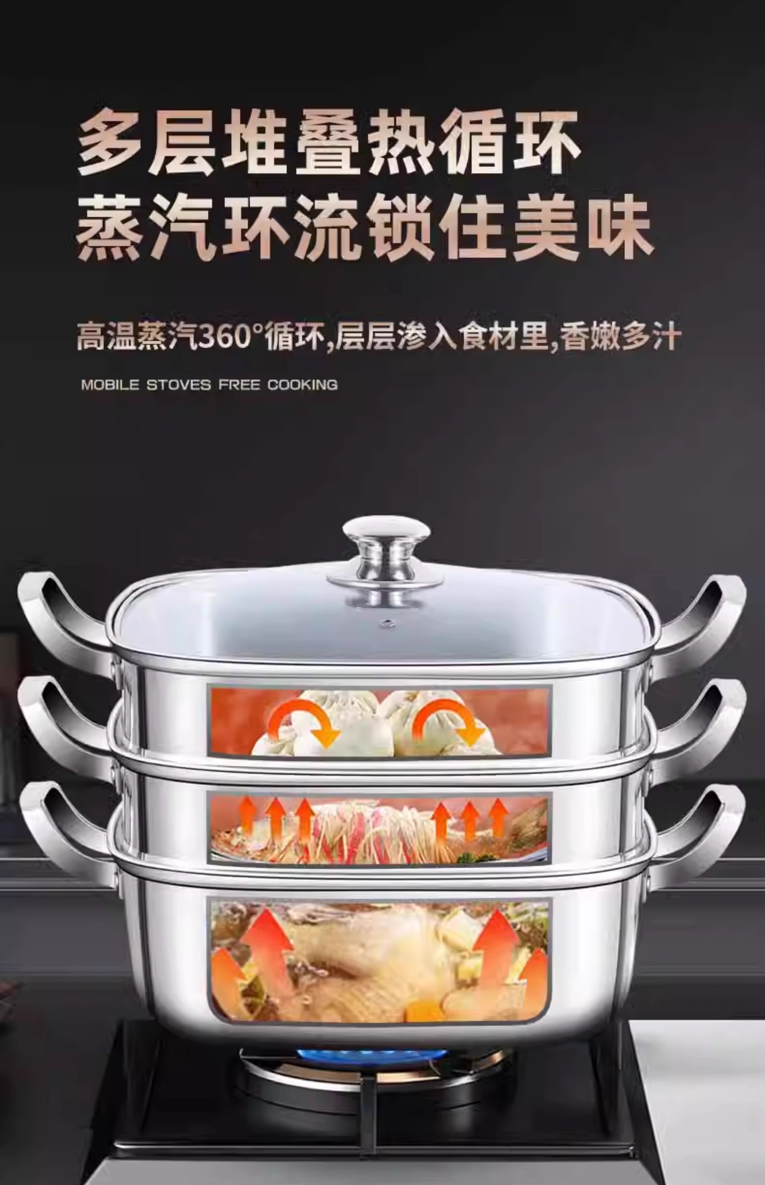 Fortunately, Japanese brand stainless steel steamer household square steamer three-layer large-capacity steamer gas stove induction cooker universal 4-6 people 316L square steamer 3 layers 30cm