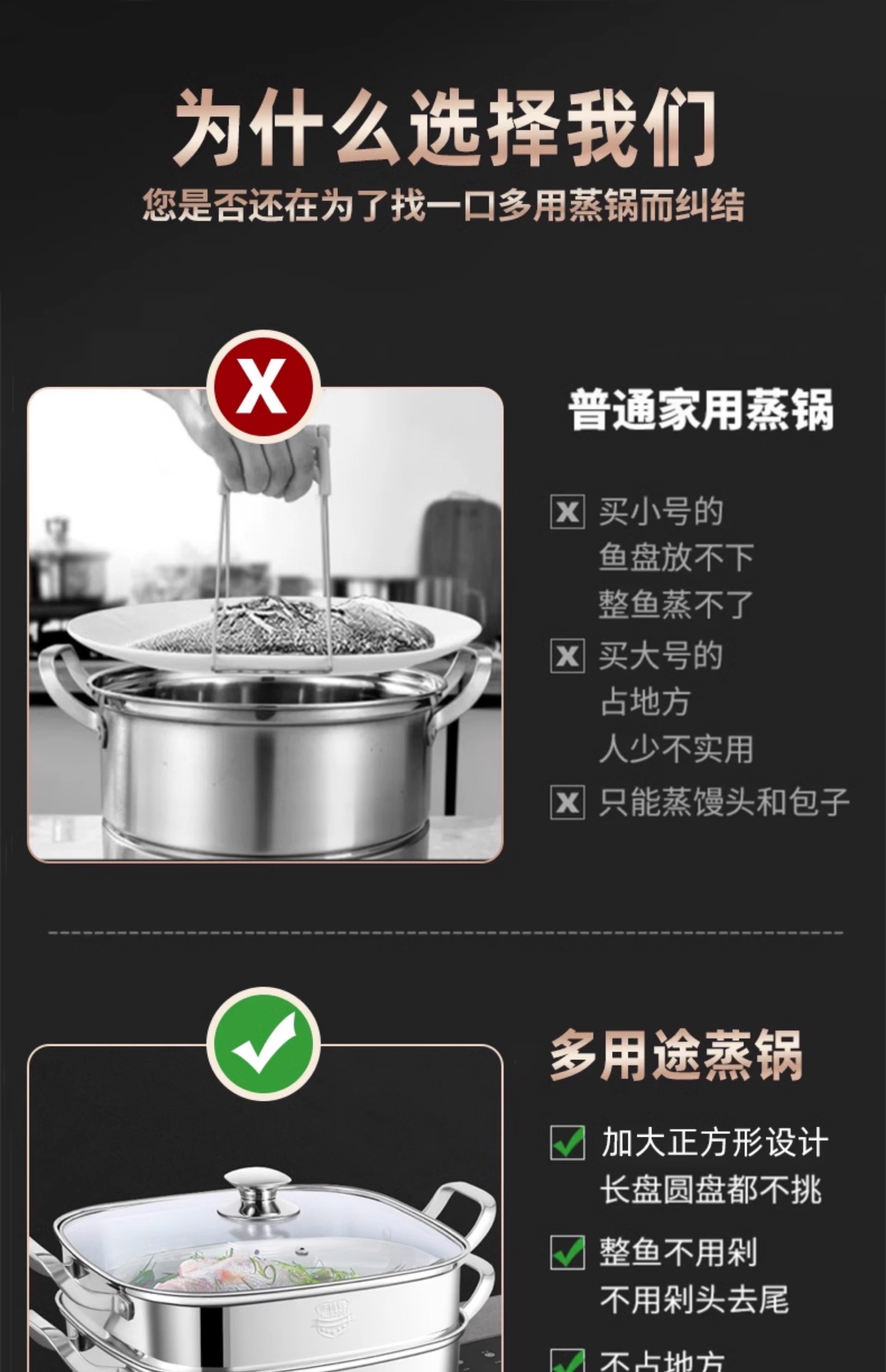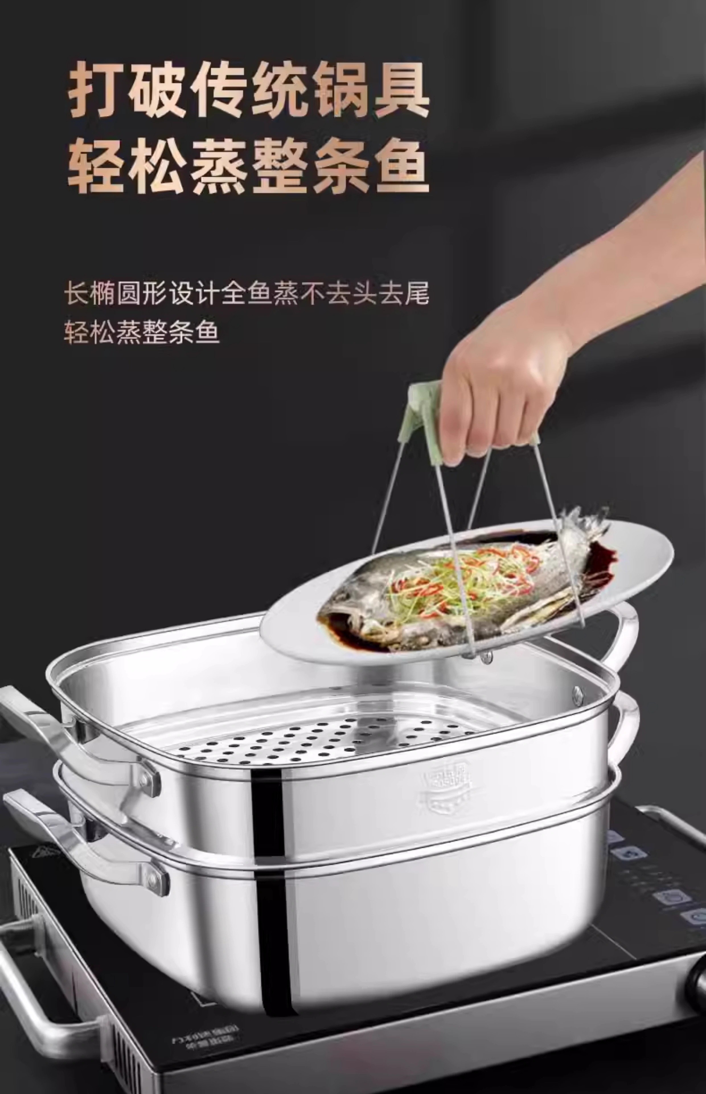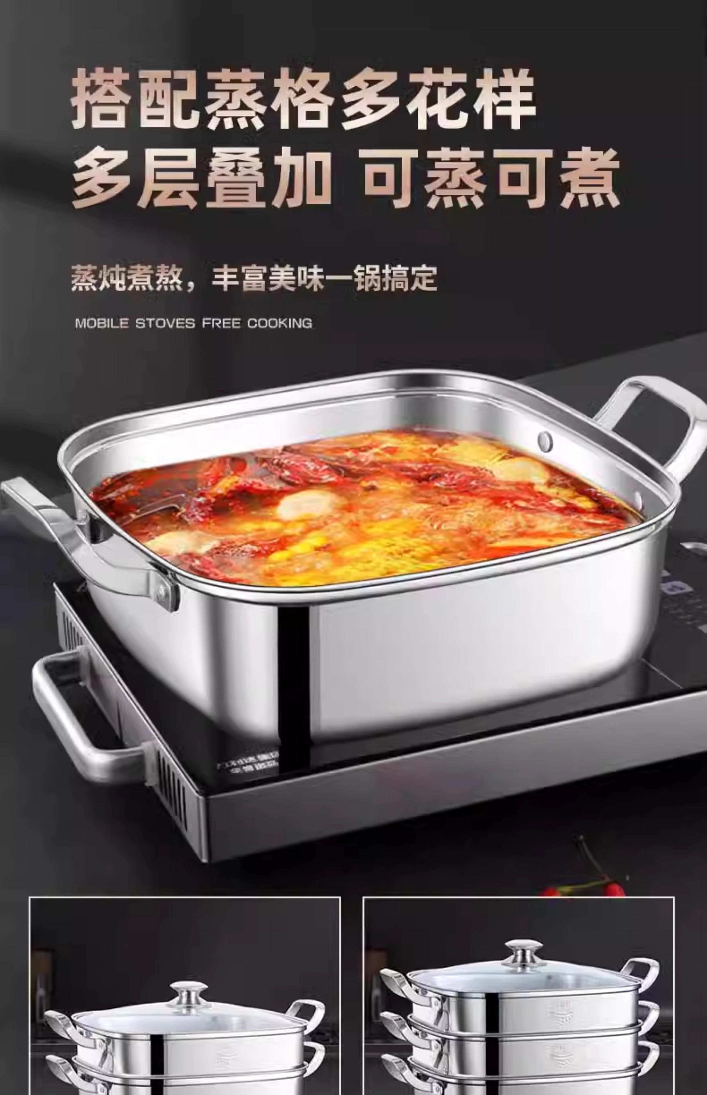Fortunately, Japanese brand stainless steel steamer household square steamer three-layer large-capacity steamer gas stove induction cooker universal 4-6 people 316L square steamer 3 layers 30cm