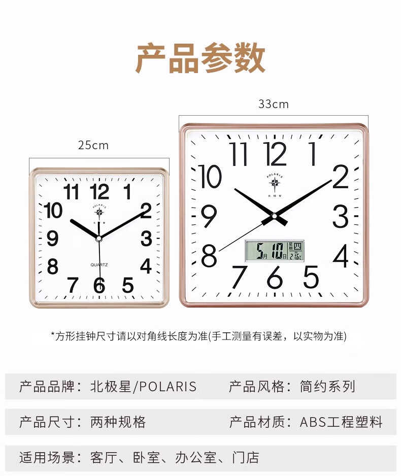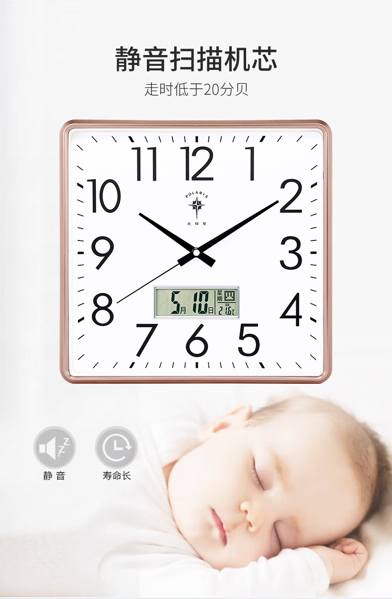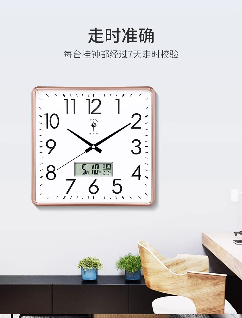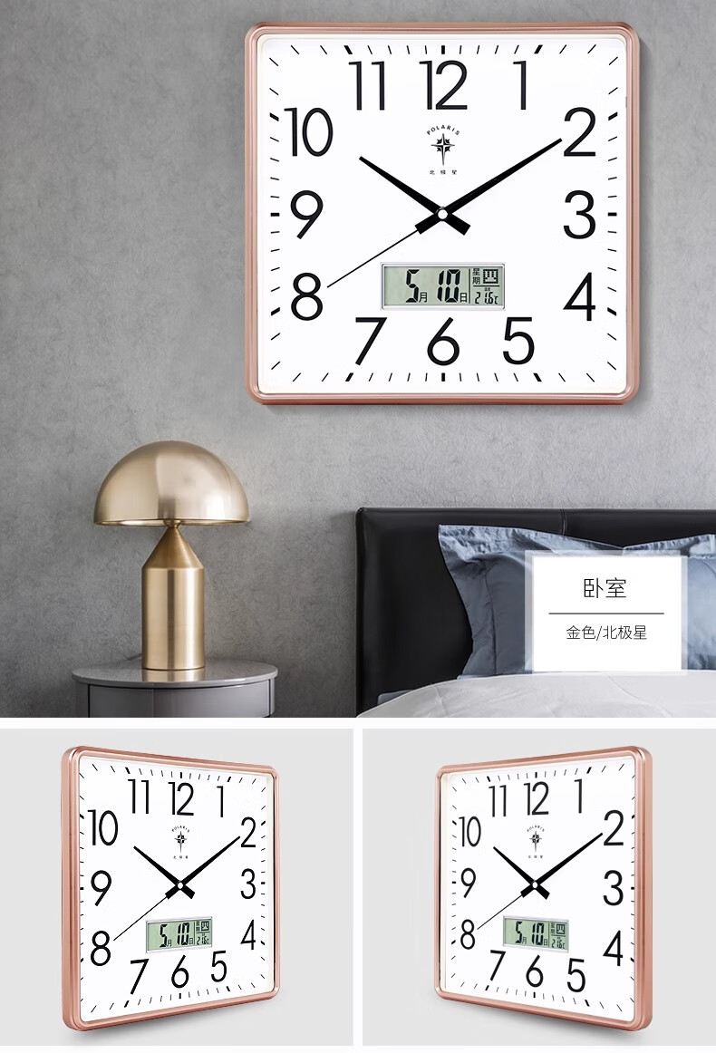 Polaris (POLARIS) wall clock living room silent home fashion creative clock perpetual calendar calendar quartz clock modern simple electronic hanging gold (26*26 cm)