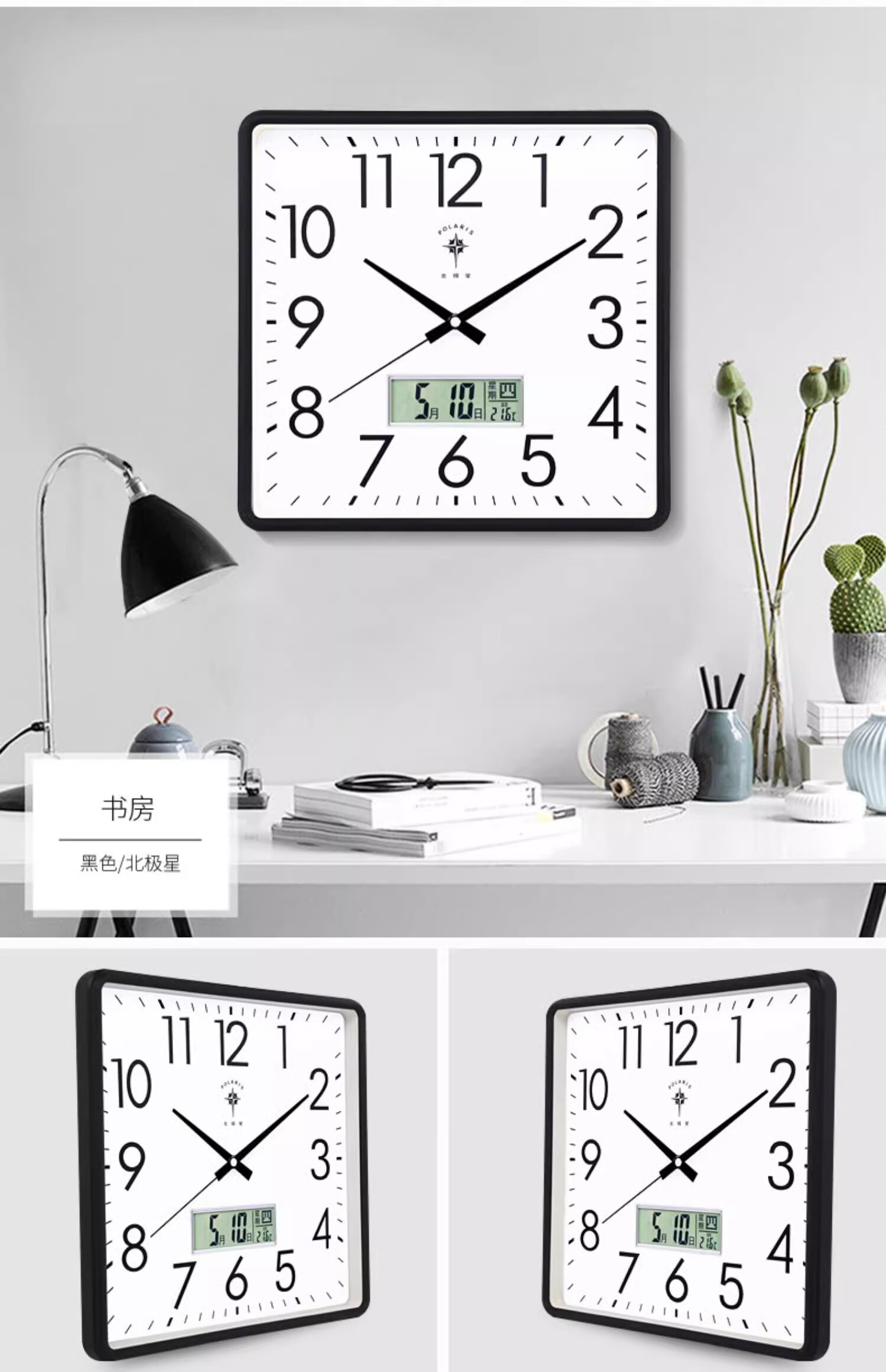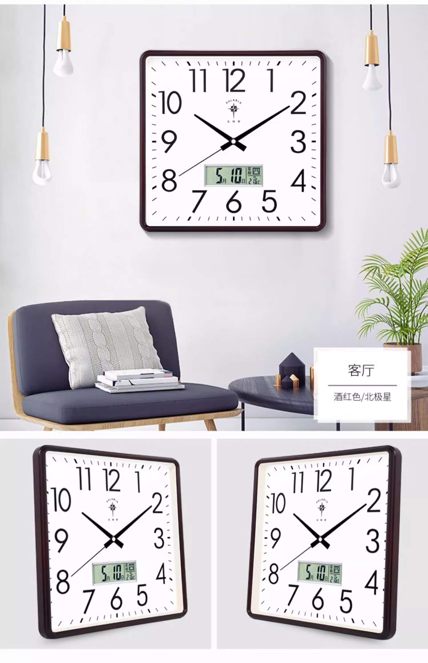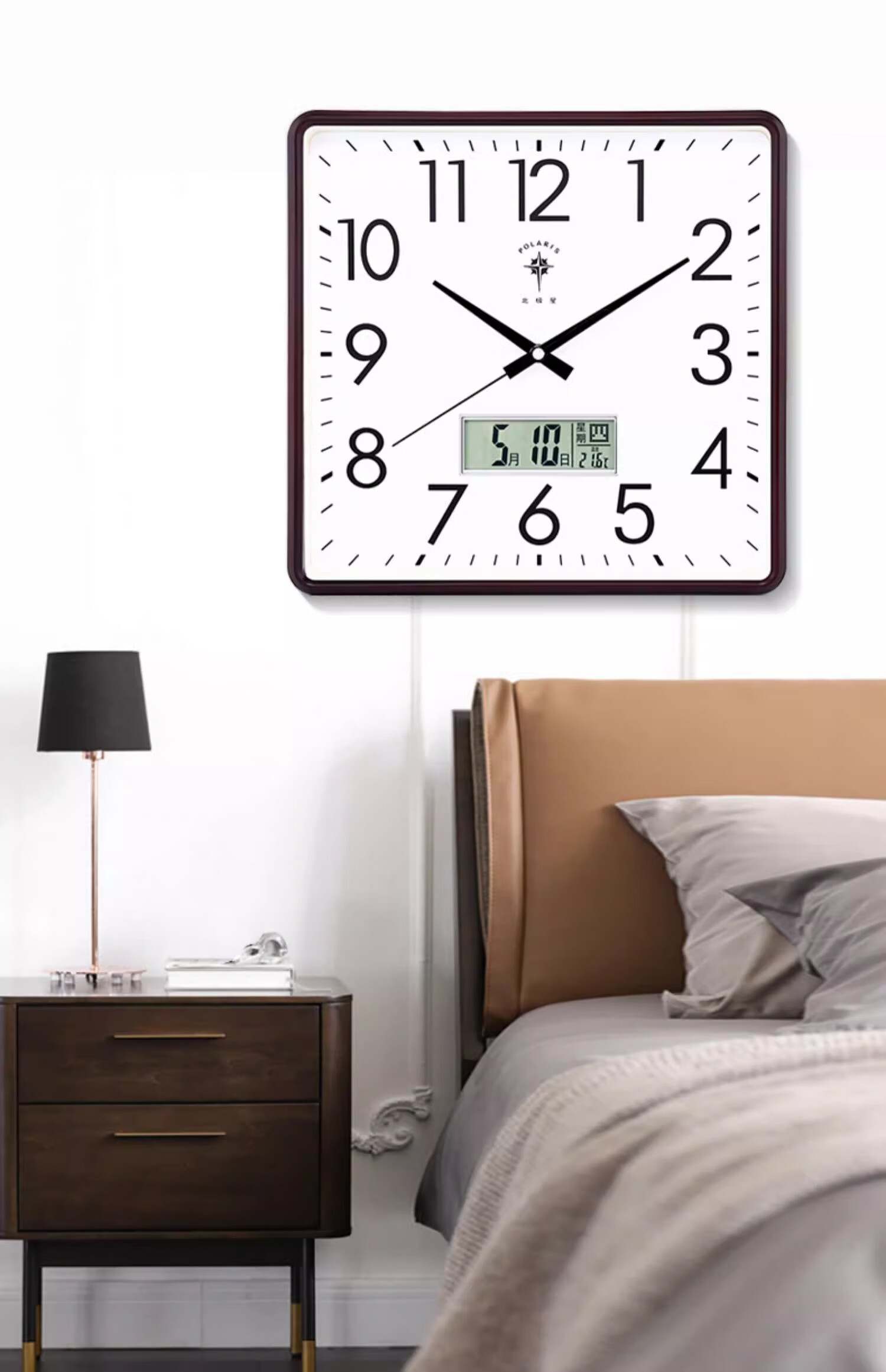 Polaris (POLARIS) wall clock living room silent home fashion creative clock perpetual calendar calendar quartz clock modern simple electronic hanging gold (26*26 cm)