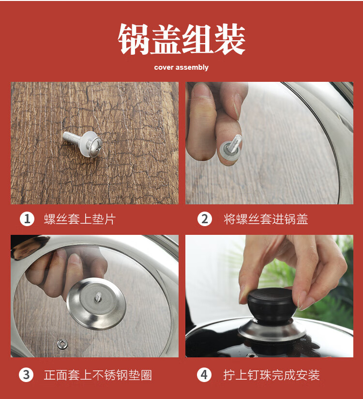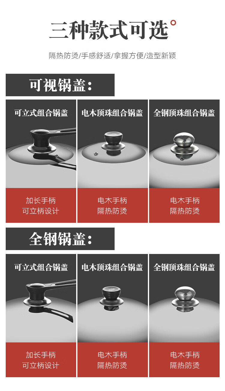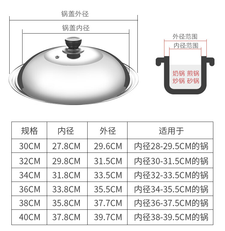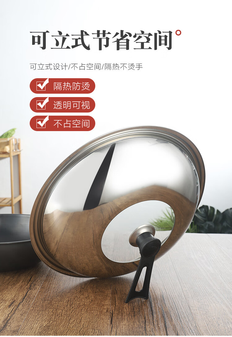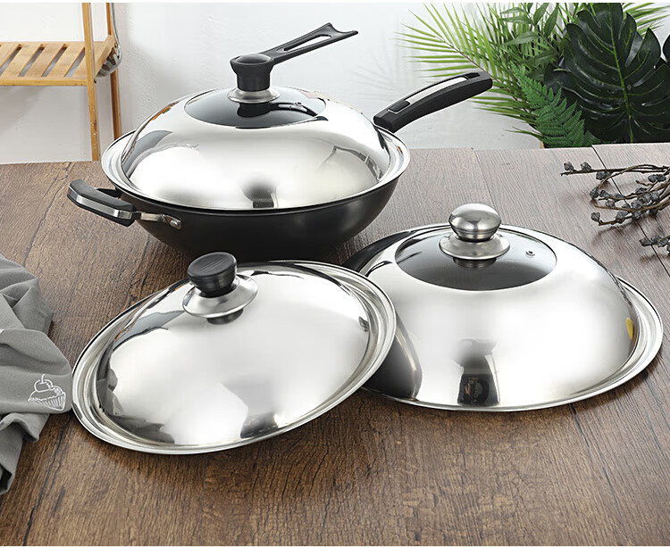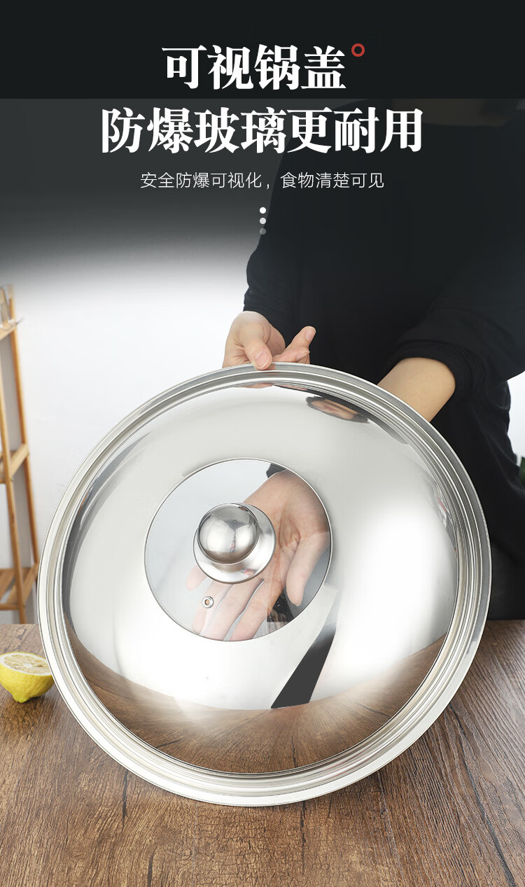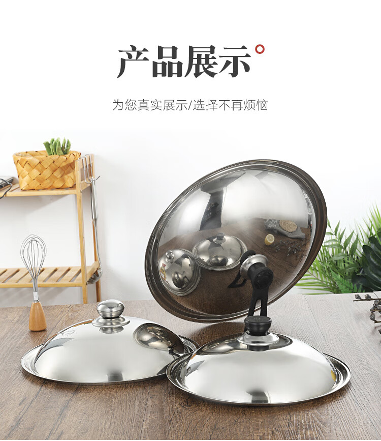 Palmerton stainless steel pot lid household cooking pot lid wok pot lid universal steel lid tempered visible lid glass lid Bakelite stainless steel lid (drum type) 1 inch 30cm (applicable to pots with an inner diameter of 28-29.5)
