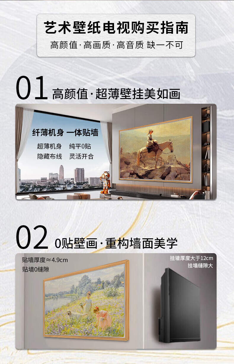 Shiji Jingcang delivery wallpaper TV 4K ultra-thin seamless wall art frame TV ultra-thin mural matte screen display seamless wall art TV 55 inches 4K ultra-clear free door-to-door installation