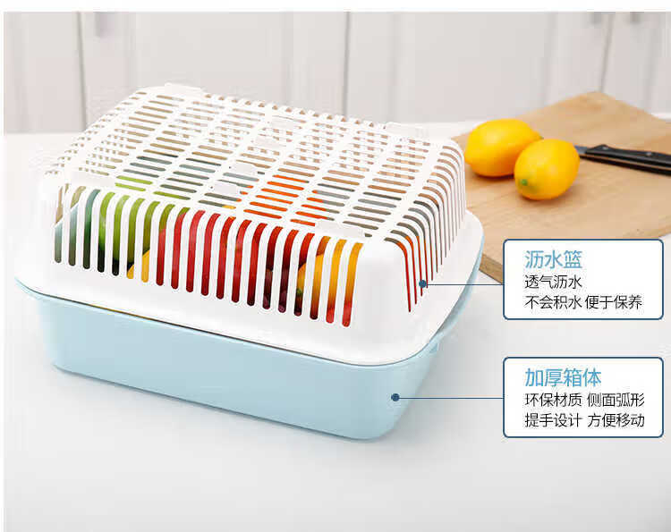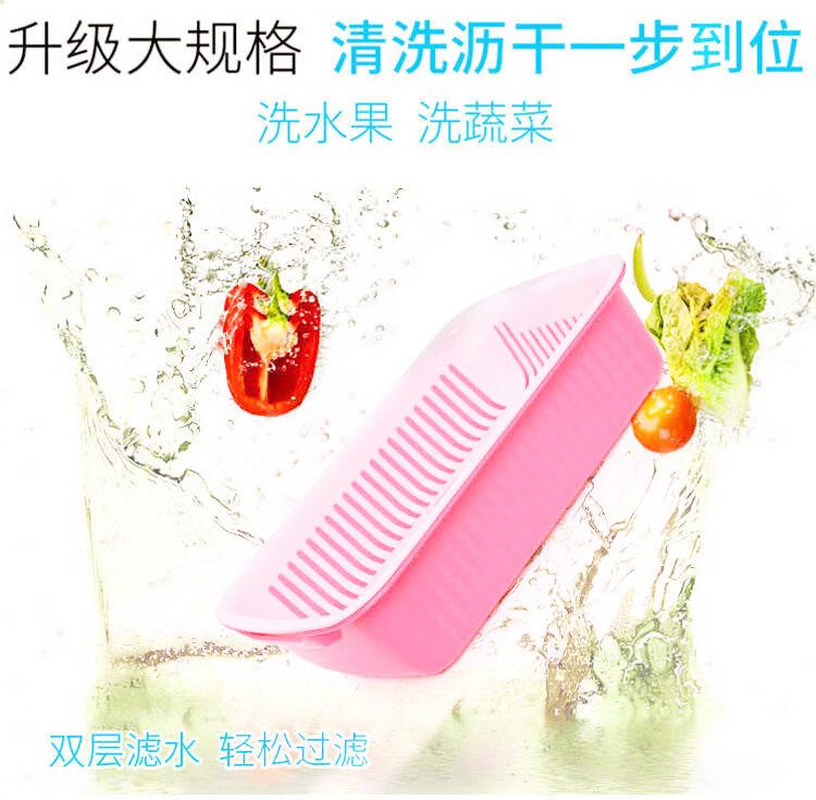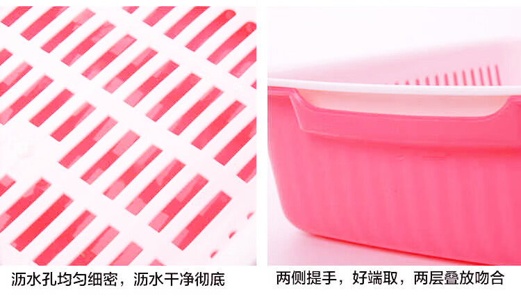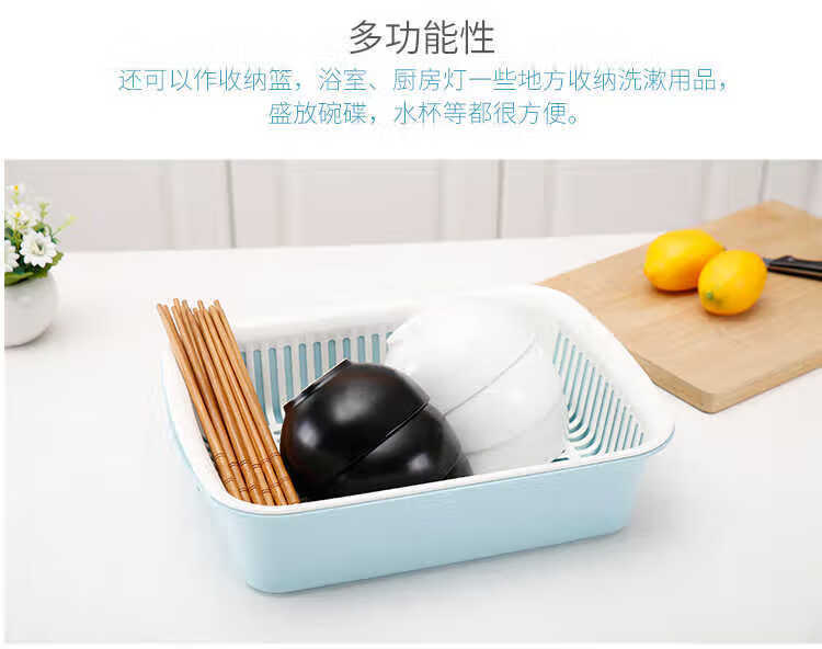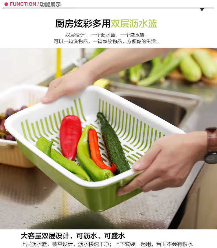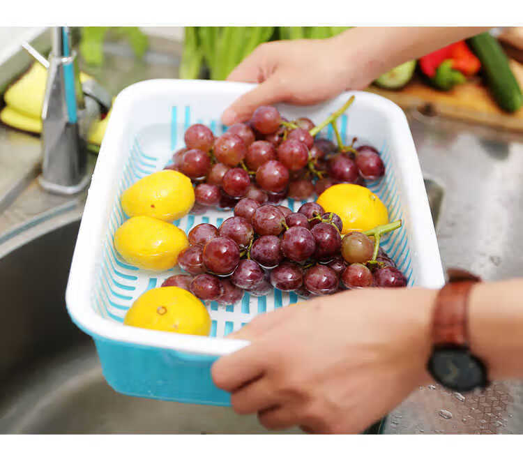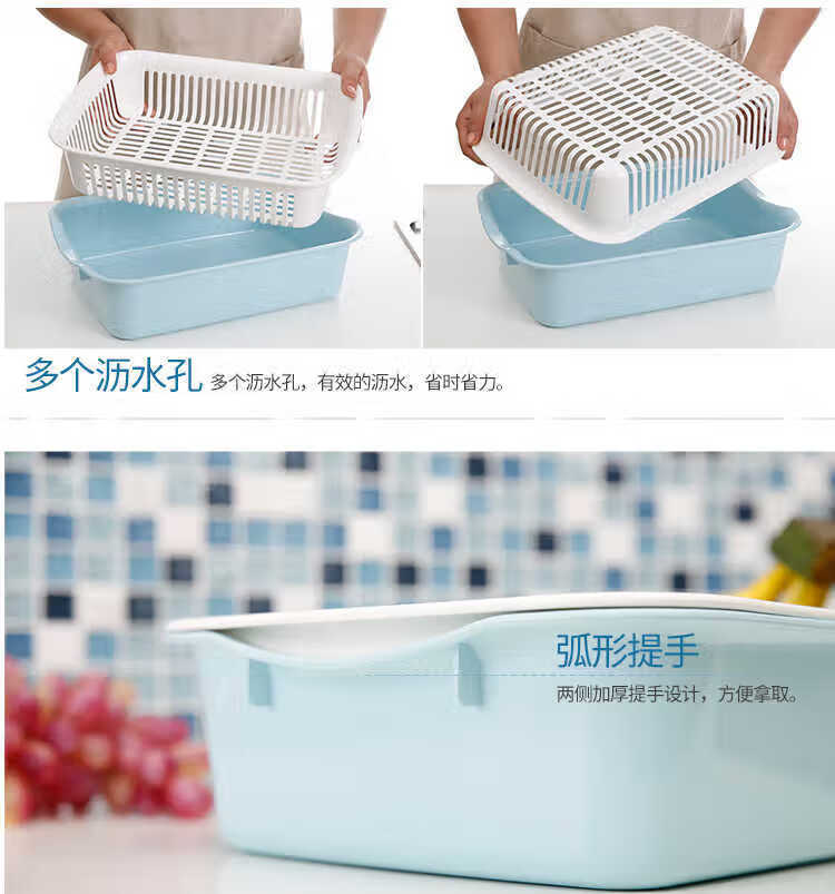 Palmerton large vegetable blue double-layer drain basket fruit basket kitchen household rectangular leaky basin plastic bowl and chopsticks drain basket green 34*26*9 cm double layer