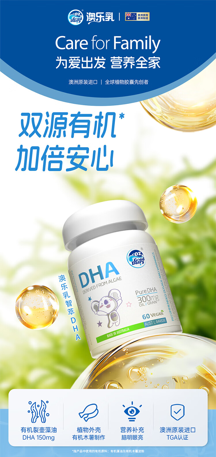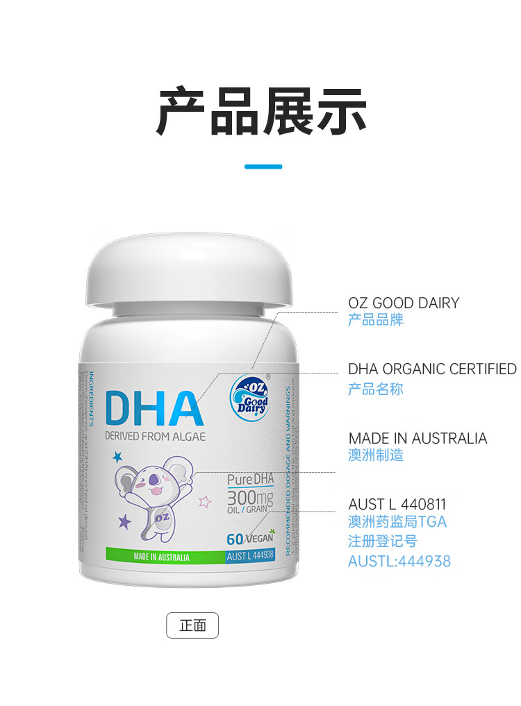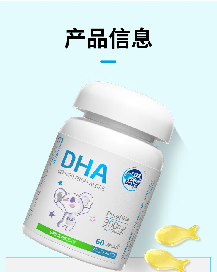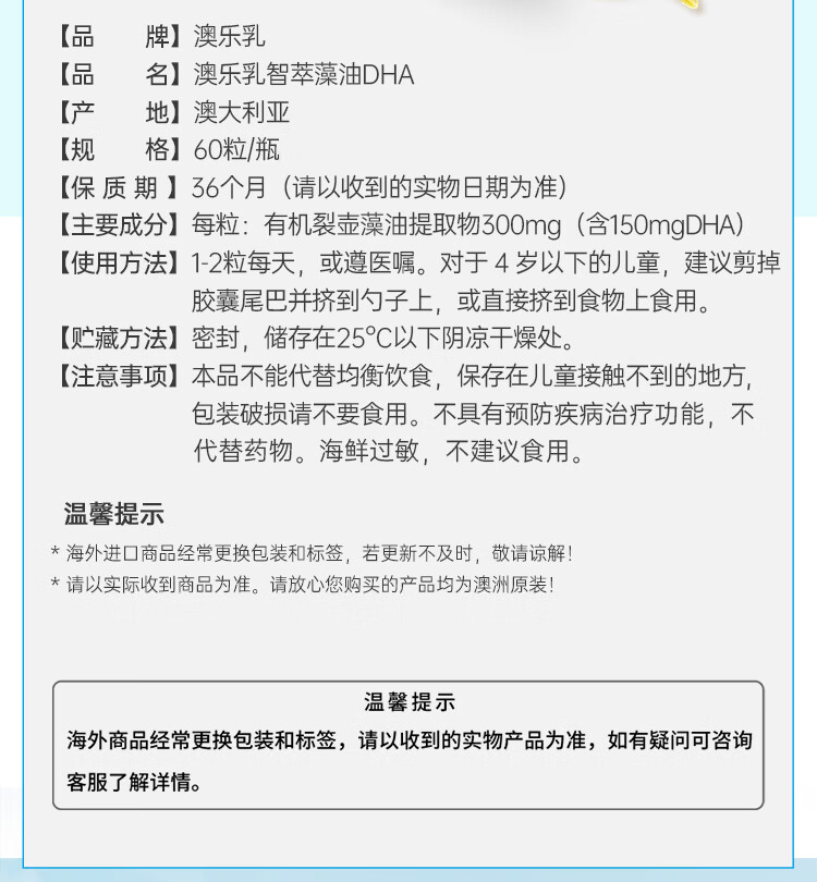 Aole Ruzhi organic algae oil DHA for children and babies DHA imported from Australia, organic algae oil DHA 60 capsules * 1 bottle