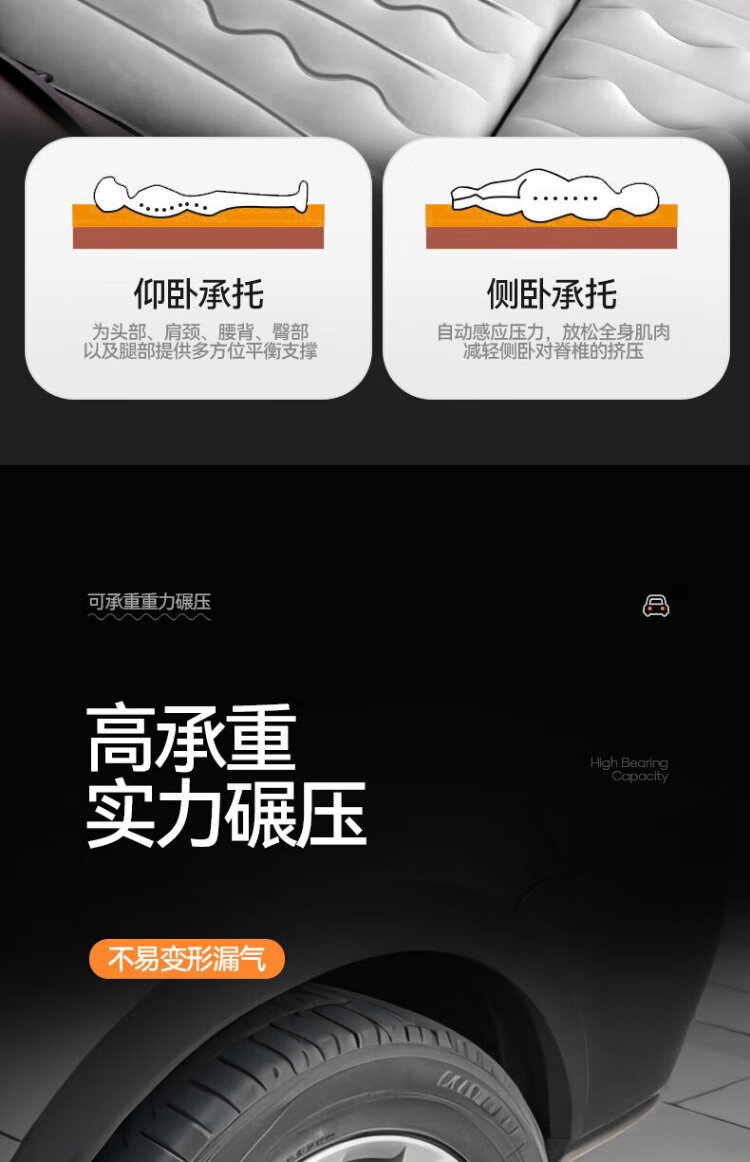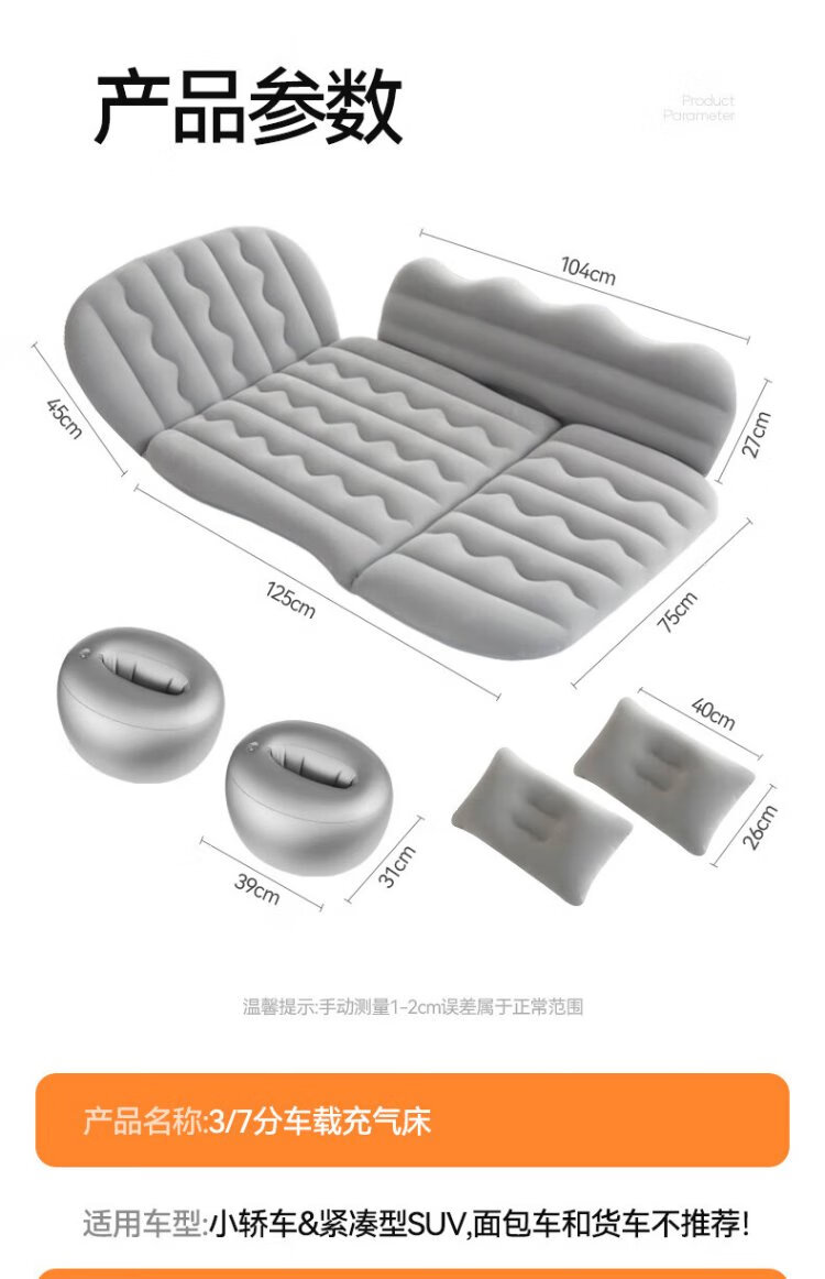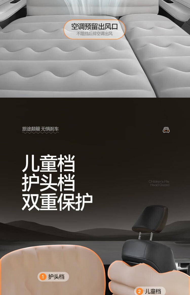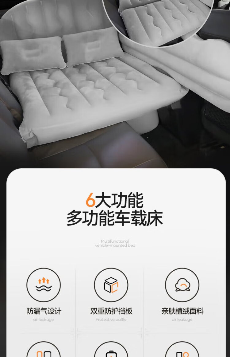 Mondorf Car Mattress Car Back Seat Sleeping Mat Inflatable Mattress Car Children's Sleeping Artifact Back Seat with Baby Car SUV 3/7 Points Gray Can Sit and Lie Air Pillow Support Universal for 95% of Models on the Market