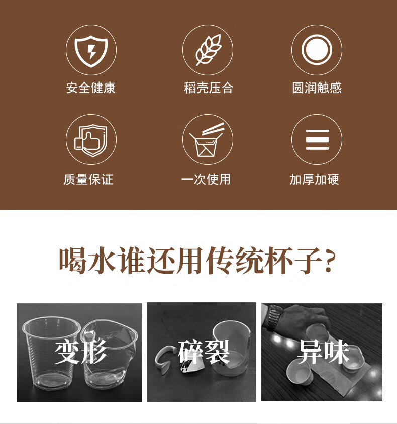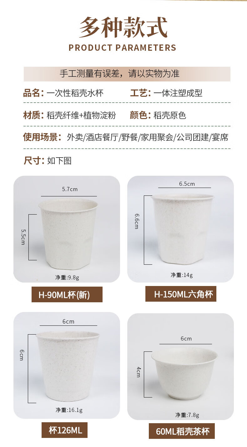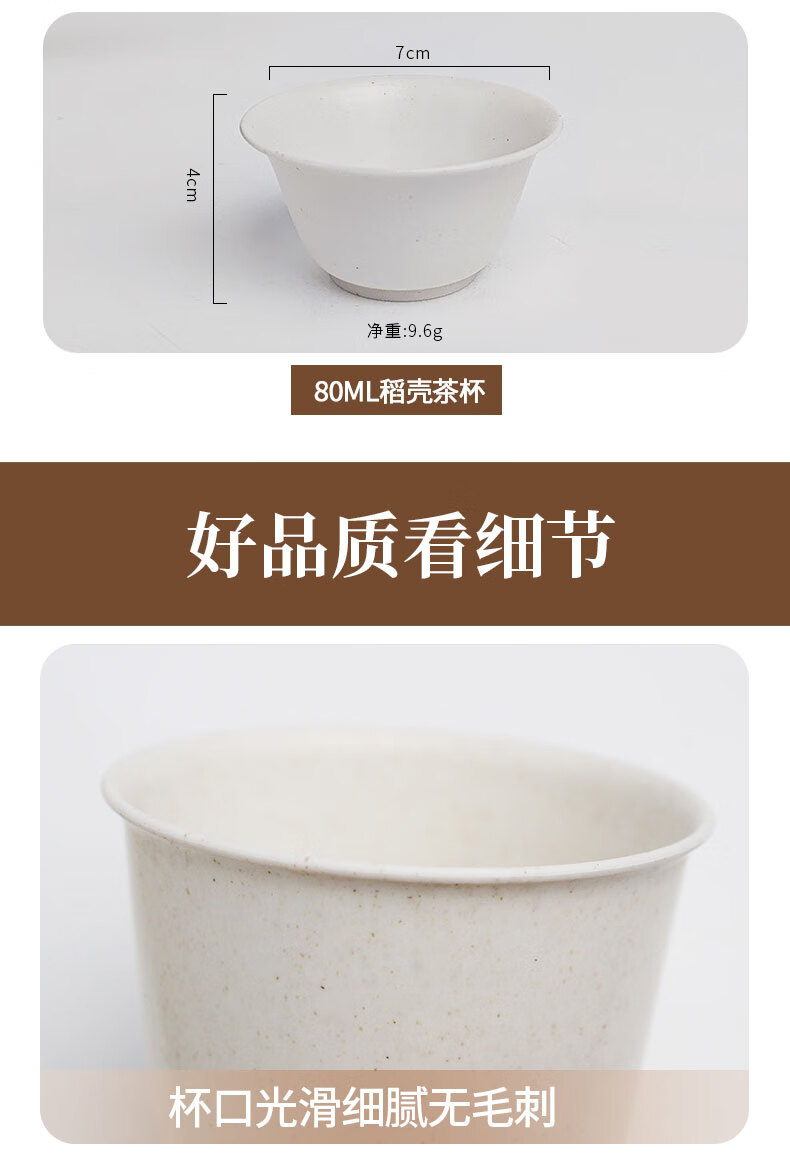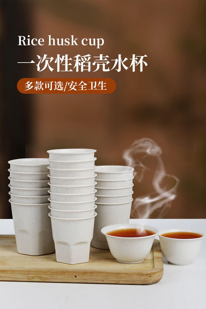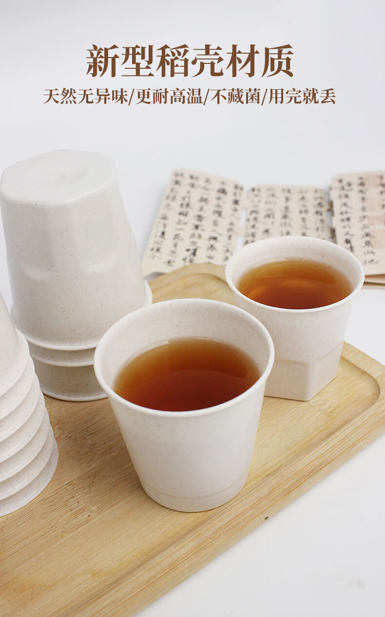 Daoying Disposable Cup Home Office Reception Tea Drinking Cup Kung Fu Tea Cup Food Grade Thickened Rice Hull Water Cup Rice Hull Tea Cup 60ml Two Packs (100 in total)