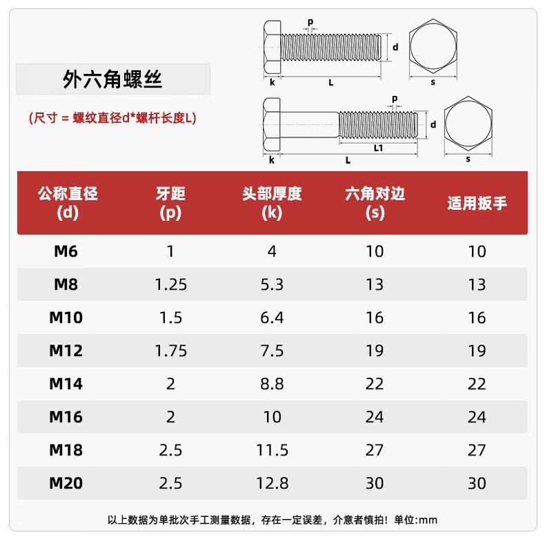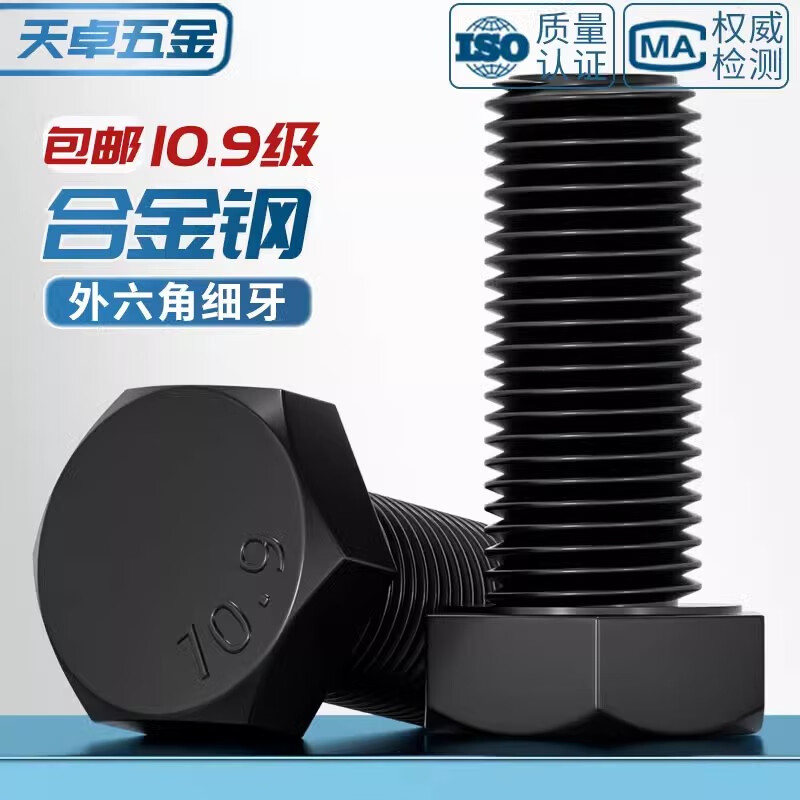 Tianzhuo Hardware Grade 10.9 Fine Thread External Hexagonal Screws Fine Thin Buckle Fine Thread Bolts M8M10M12M14M16M18M20mm M20*1.5*30 Full Thread 2 pcs