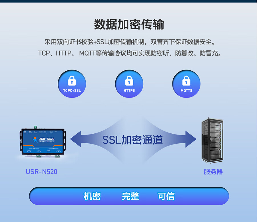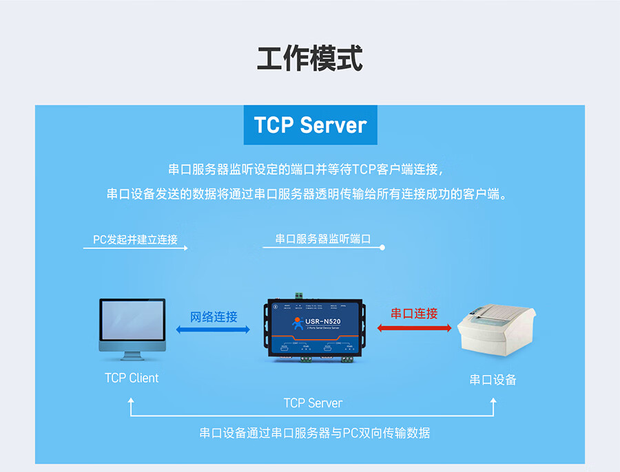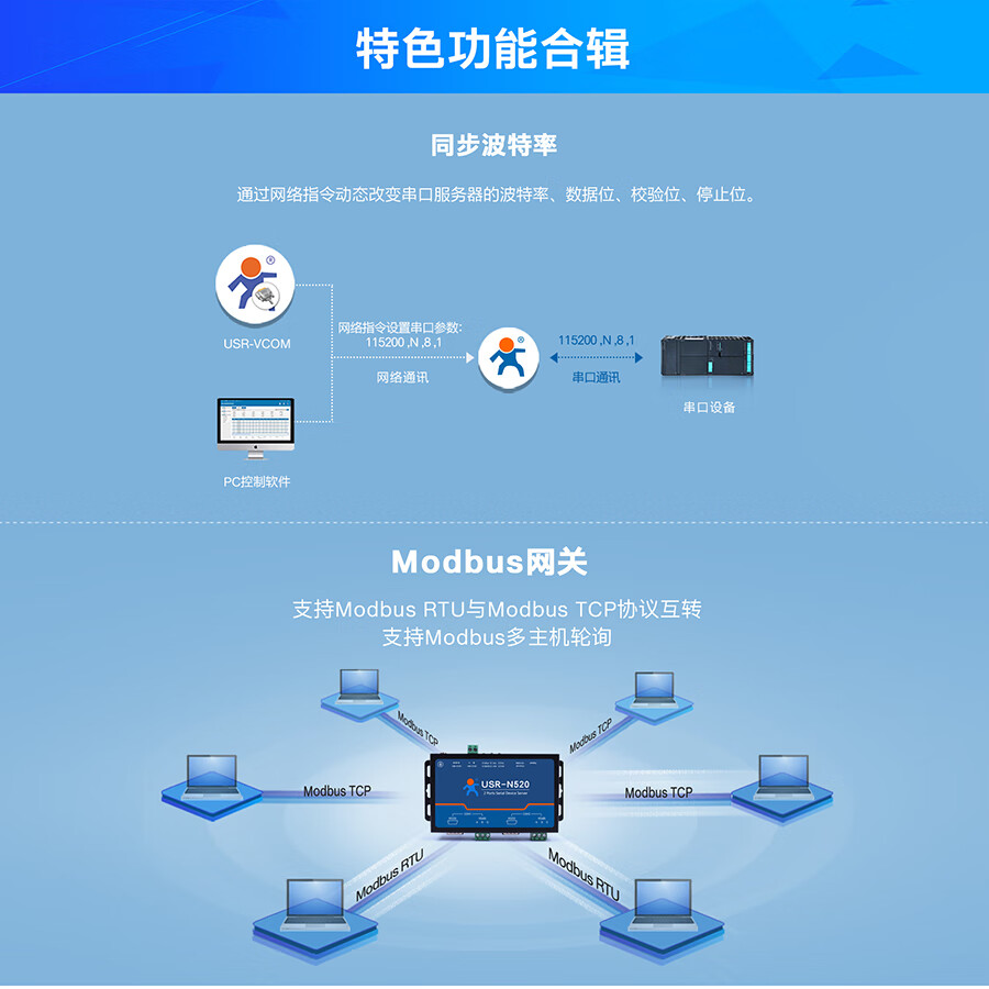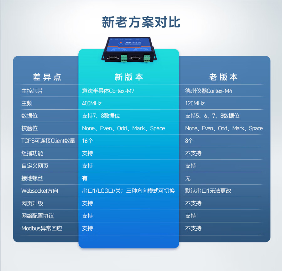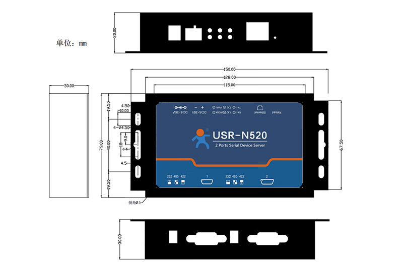 IoT MQTT protocol RS232/485/422 optional dual serial port server multiple protection USR-N520 USR-N520-H7-6