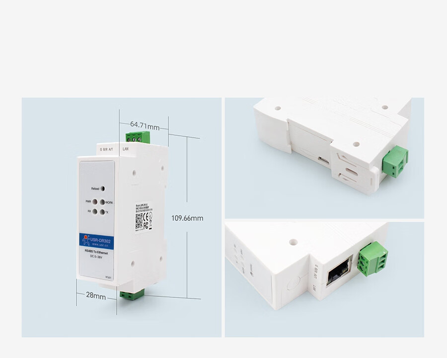 IoT rail-type RS485/232 serial port server industrial-grade small size Modbus gateway USR-DR302/301 USR-DR302