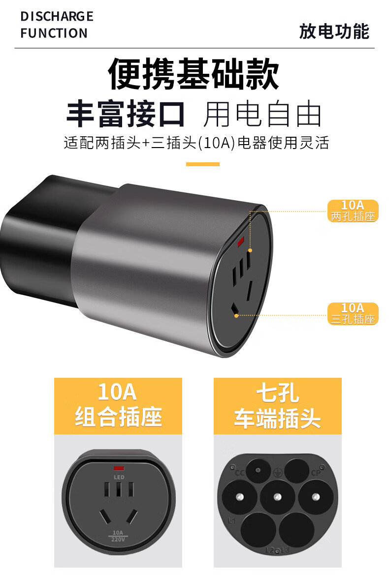 Bull same model Changan Qiyuan a07a05q05 discharge gun new energy electric vehicle external discharge plug to take power 10 meters line arrangement large support power 4KW + storage bag power 4KW