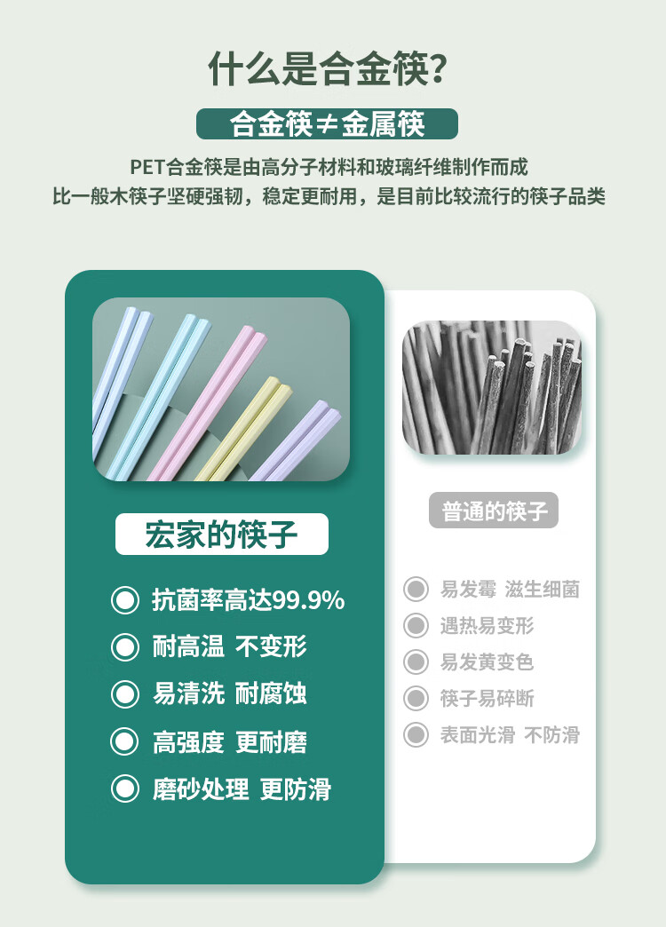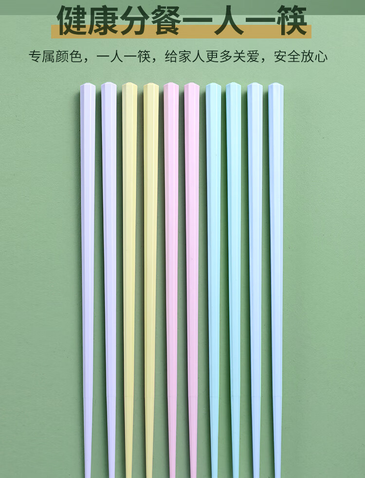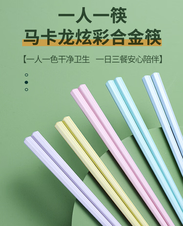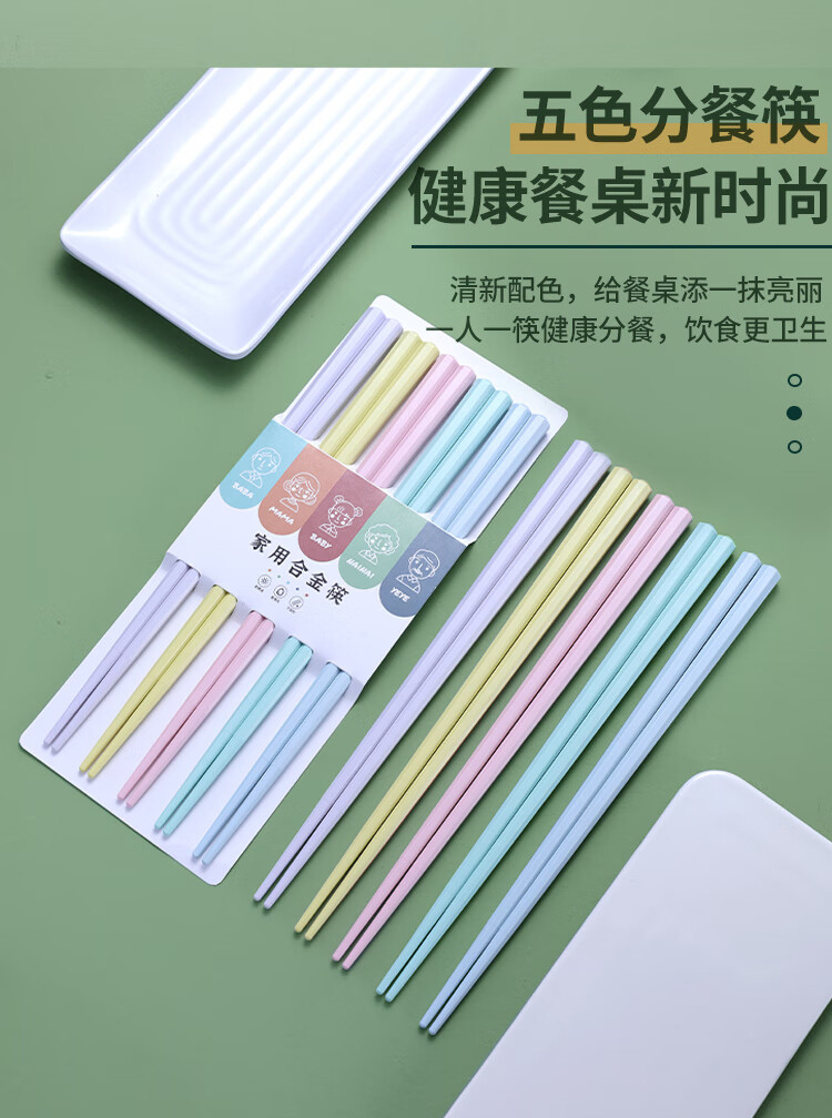 Macaron alloy chopsticks for one person, one chopstick, healthy meal-sharing, high-temperature-resistant chopsticks for home use, 10 pairs, high-end, 5 pairs of octagonal macaron chopsticks