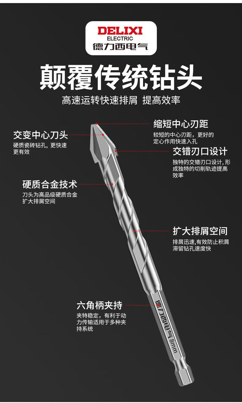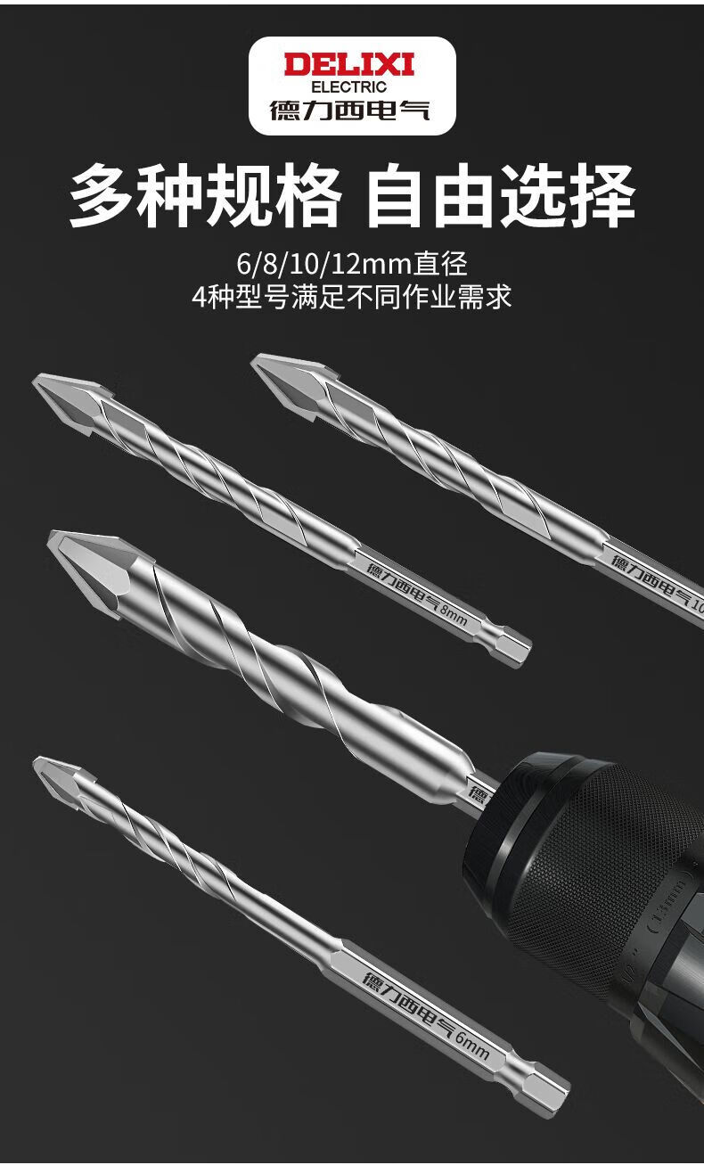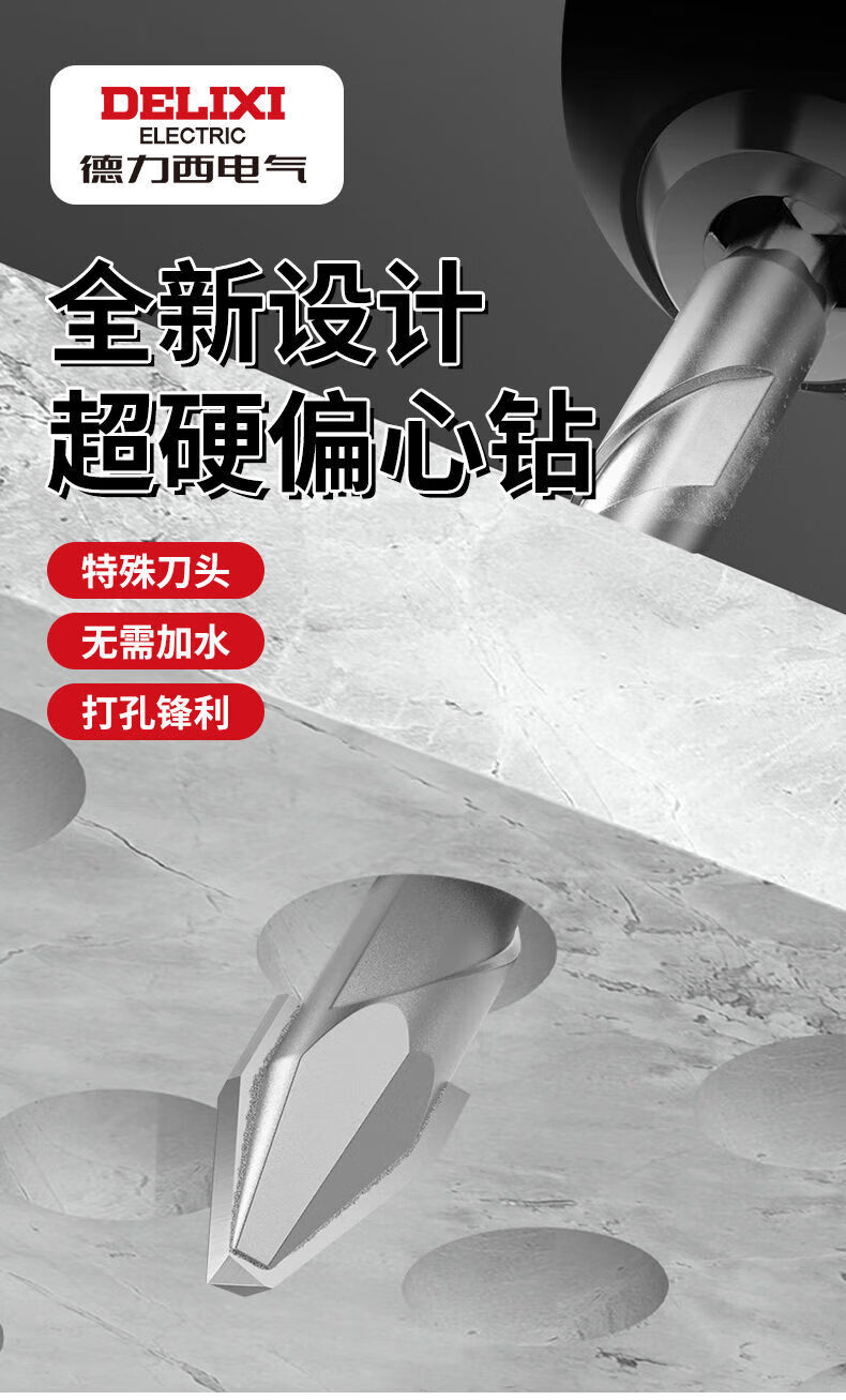 Delixi Electric tilted head eccentric drill bit for dry drilling all ceramic tiles concrete cement wall glass hand drill extended ultra-high hardness tilted head dry punching eccentric drill regular 6mm 5-pack