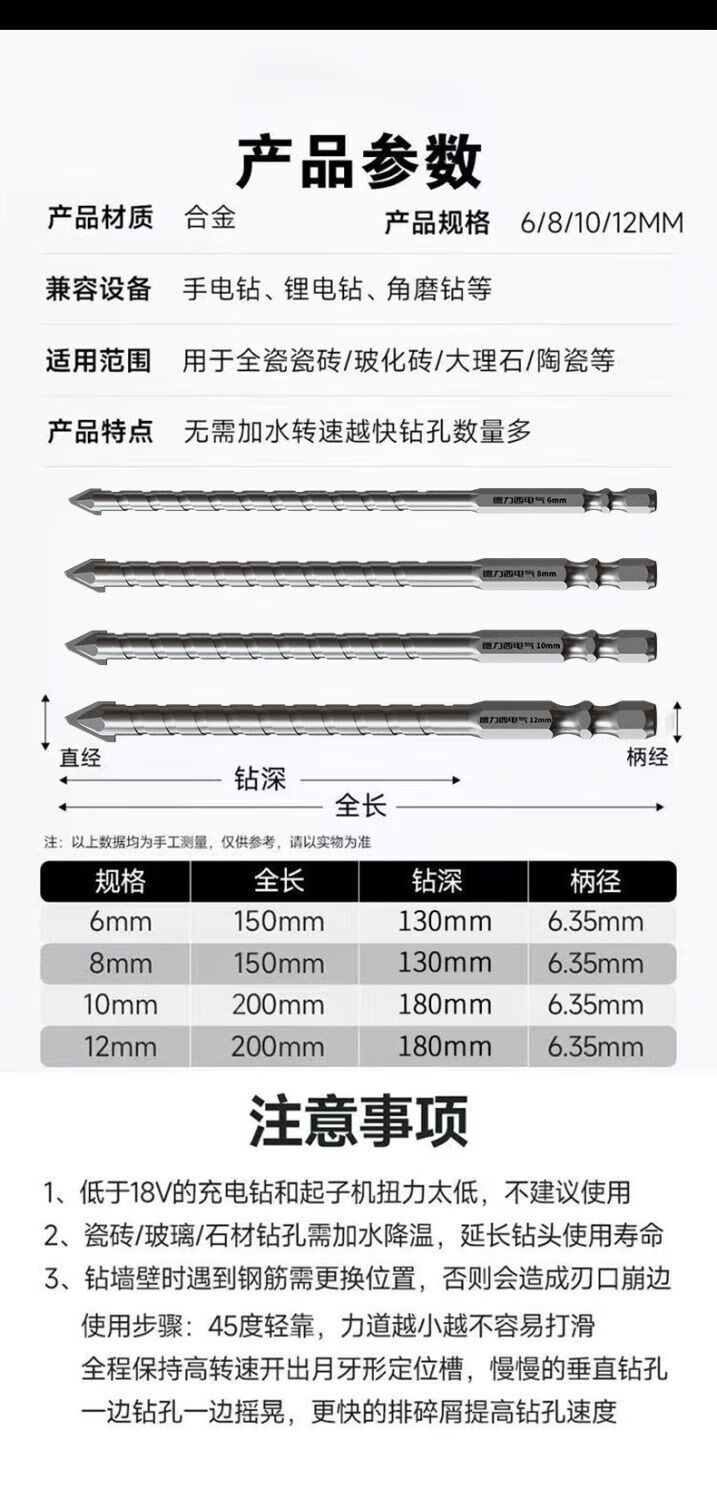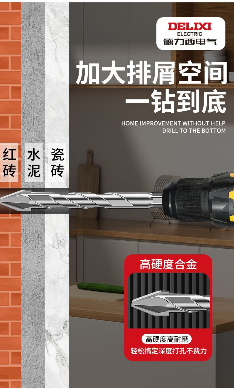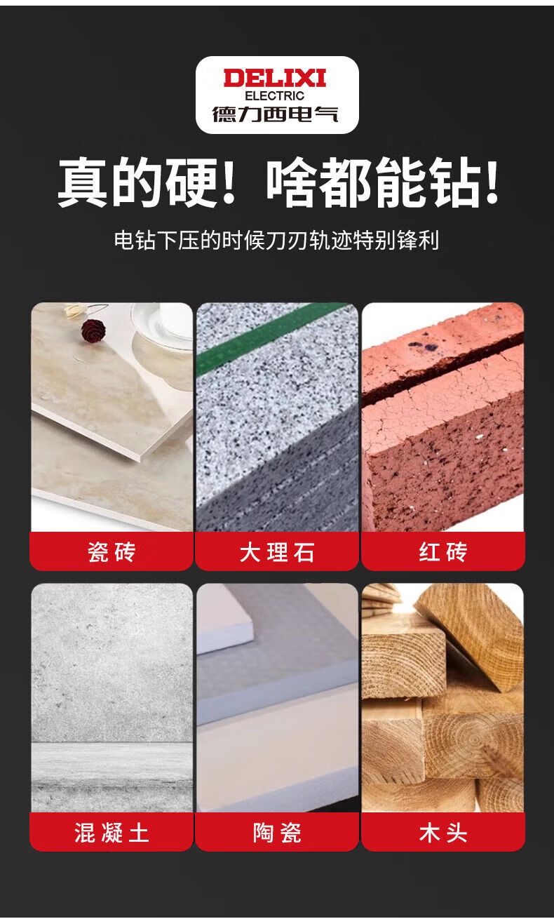 Delixi Electric tilted head eccentric drill bit for dry drilling all ceramic tiles concrete cement wall glass hand drill extended ultra-high hardness tilted head dry punching eccentric drill regular 6mm 5-pack