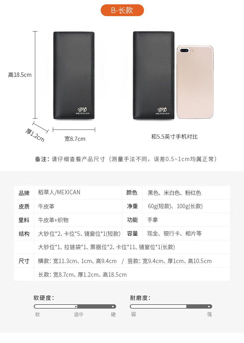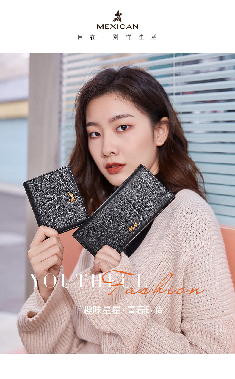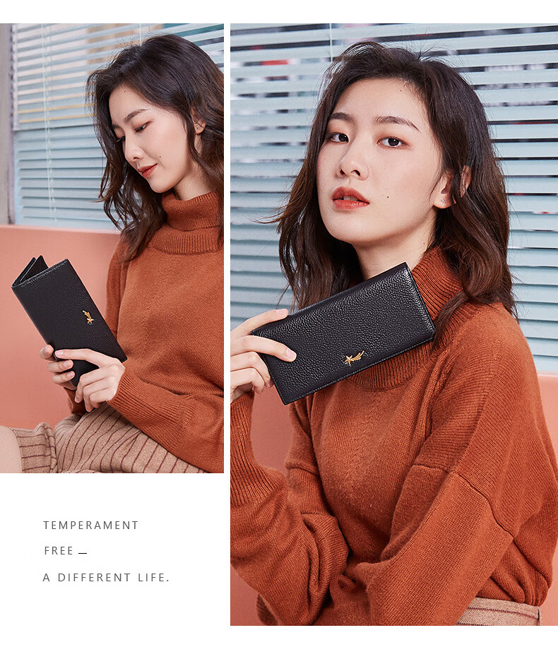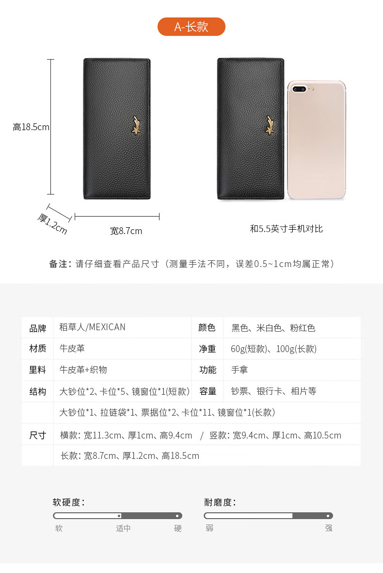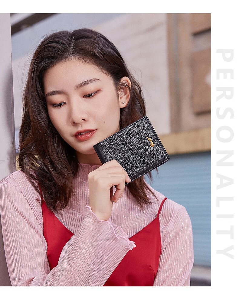 Scarecrow Wallet Women's New Genuine Leather Niche Wallet Women's Cowhide Simple Wallet Coin Purse Girls Card Holder Pink-Long A