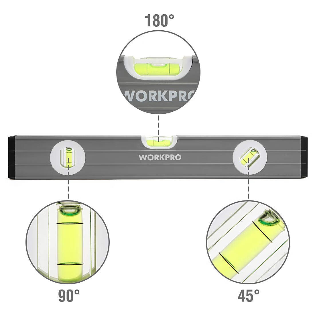 WORKPRO 3-piece level set 22/40/60cm metal level magnetic bubble lightweight