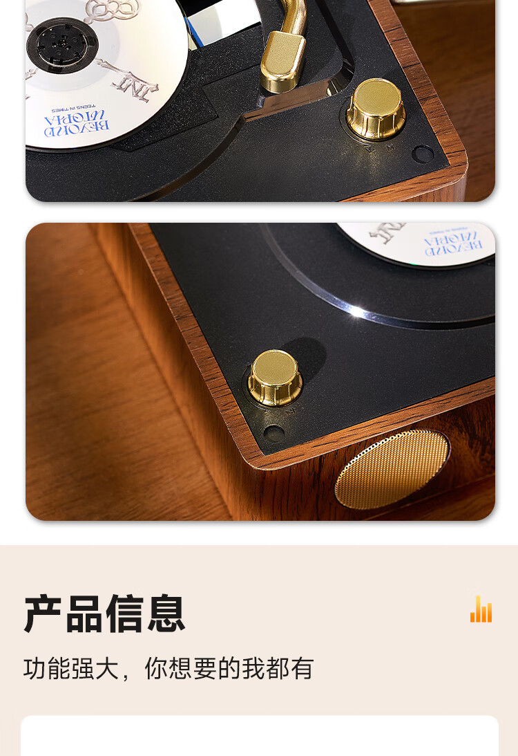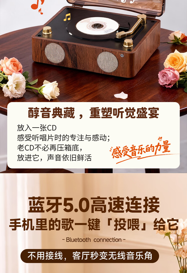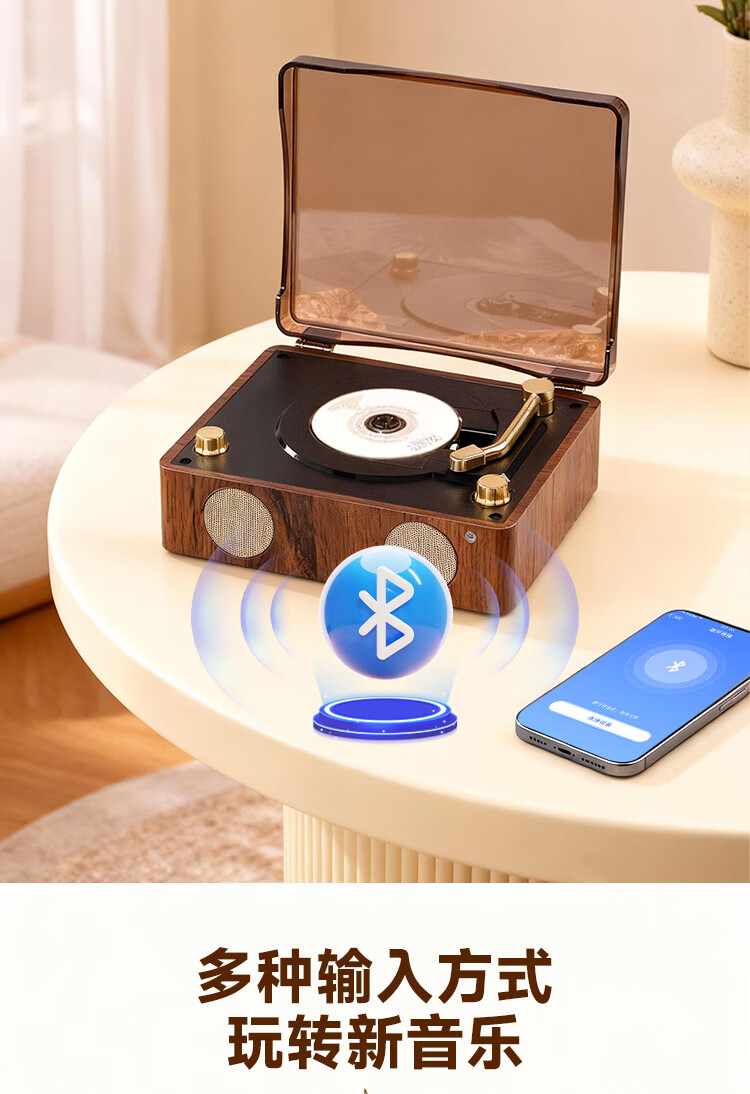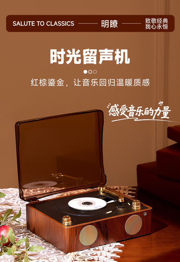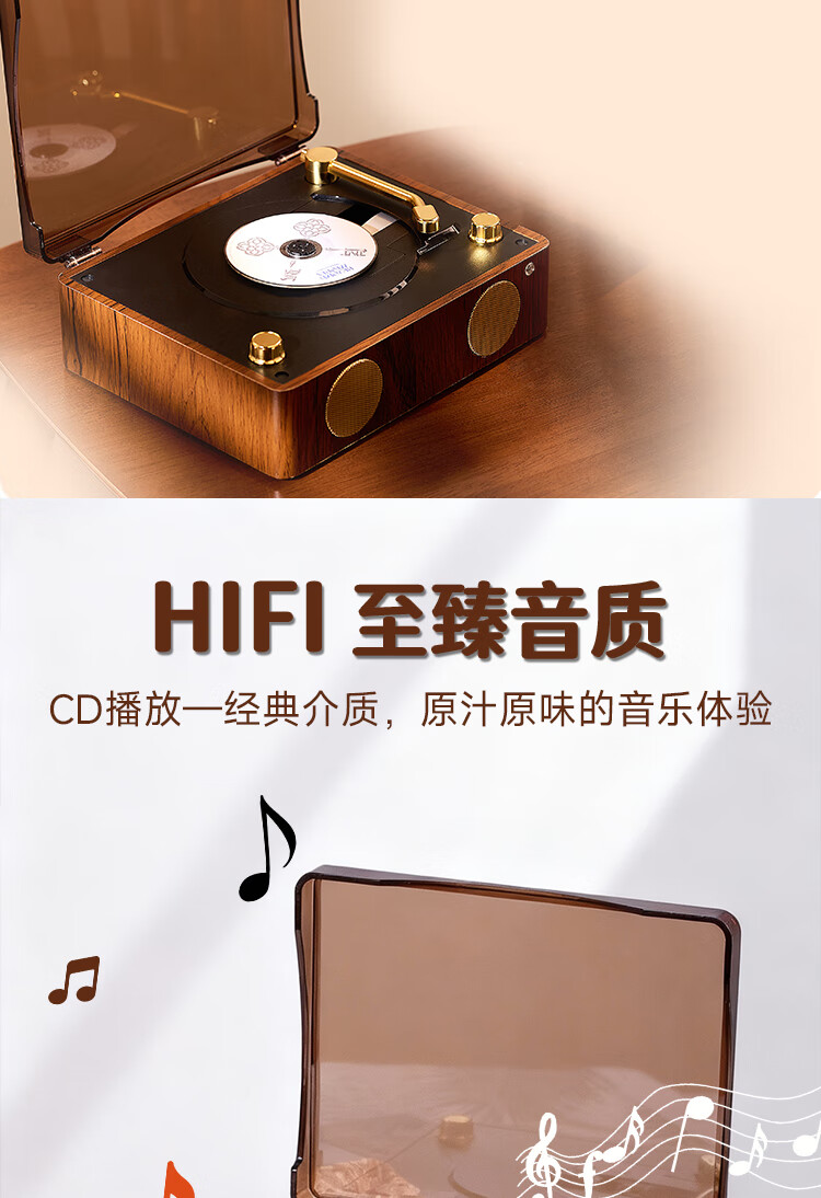Mingming cd player Mingming Bluetooth speaker high quality retro cd player album record player birthday gift stereo sound quality *classical brown* upgraded version