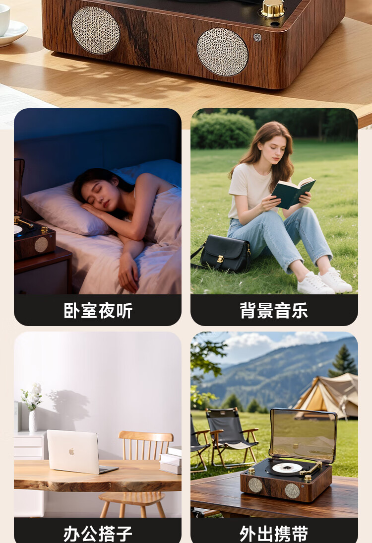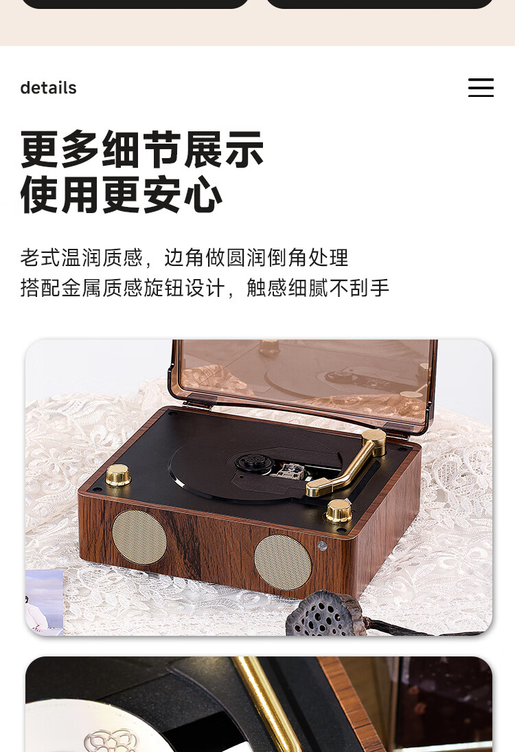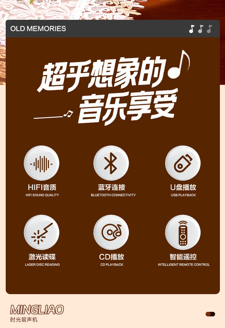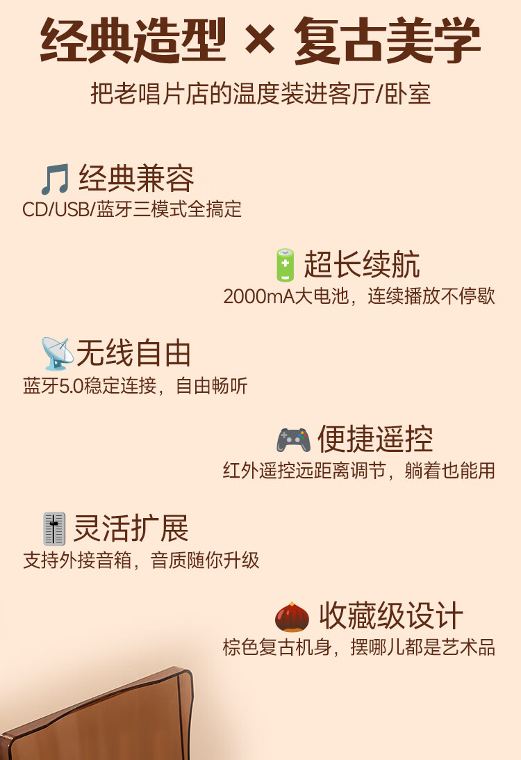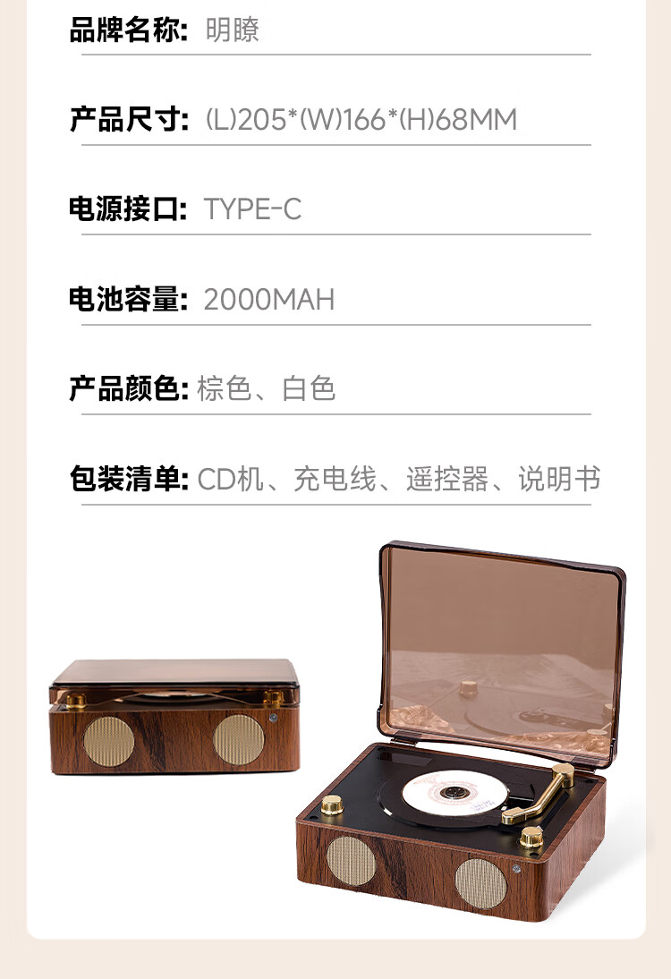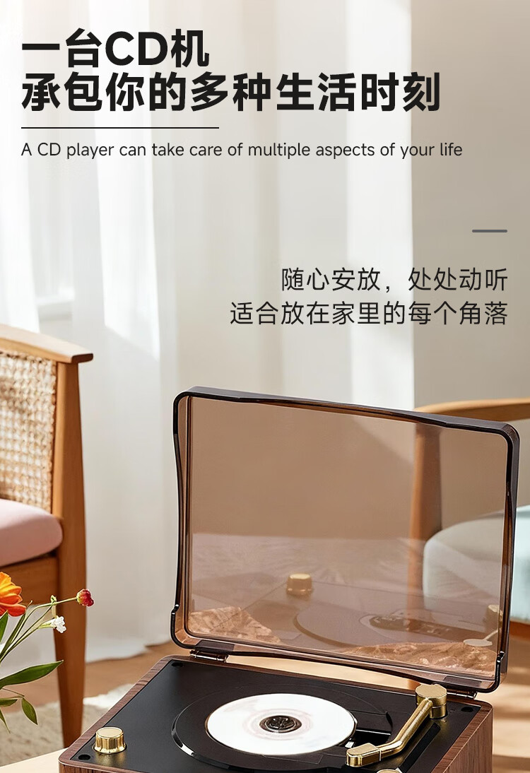 Mingming cd player Mingming Bluetooth speaker high quality retro cd player album record player birthday gift stereo sound quality *classical brown* upgraded version