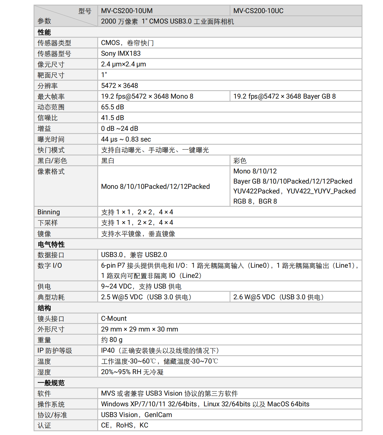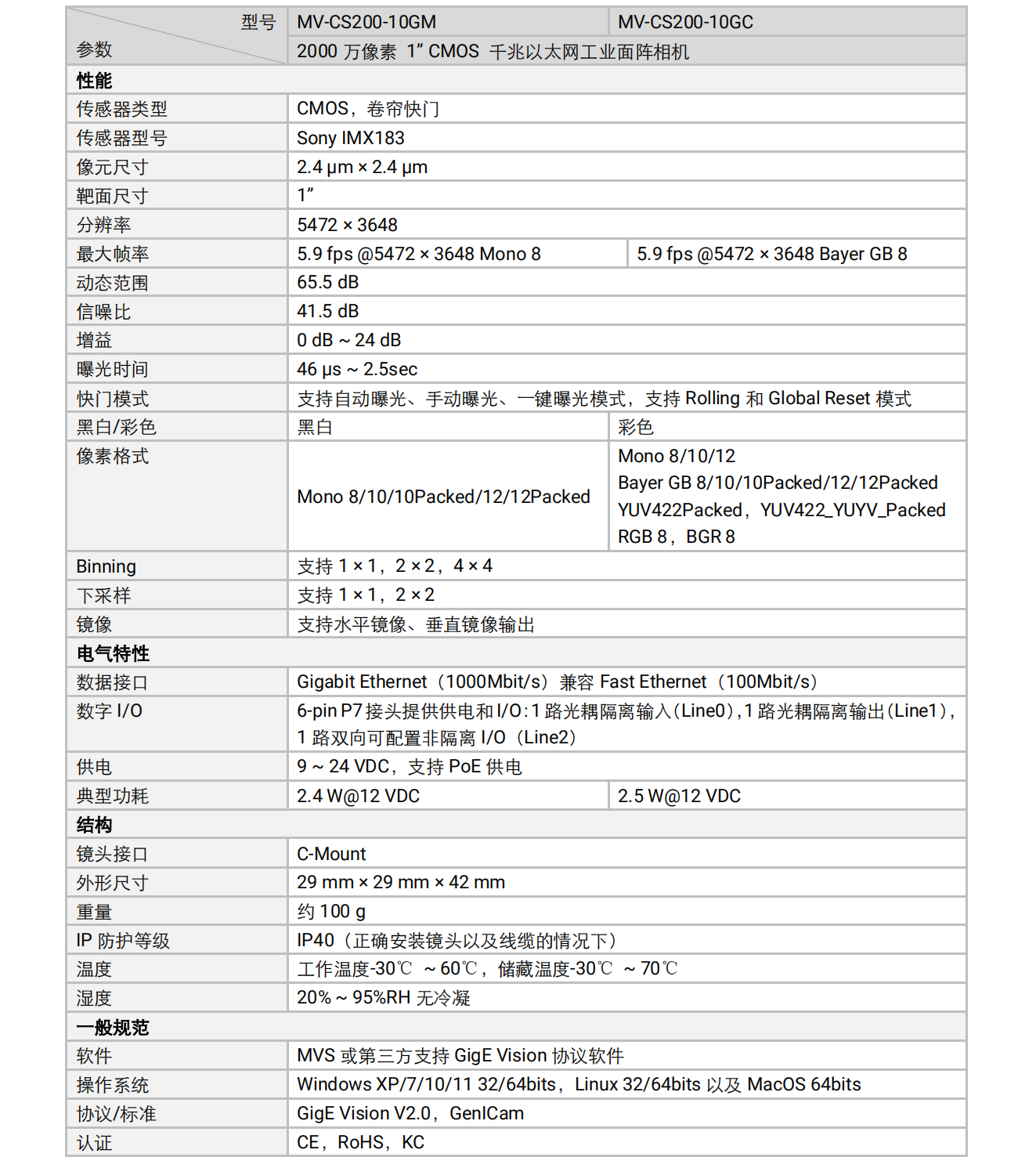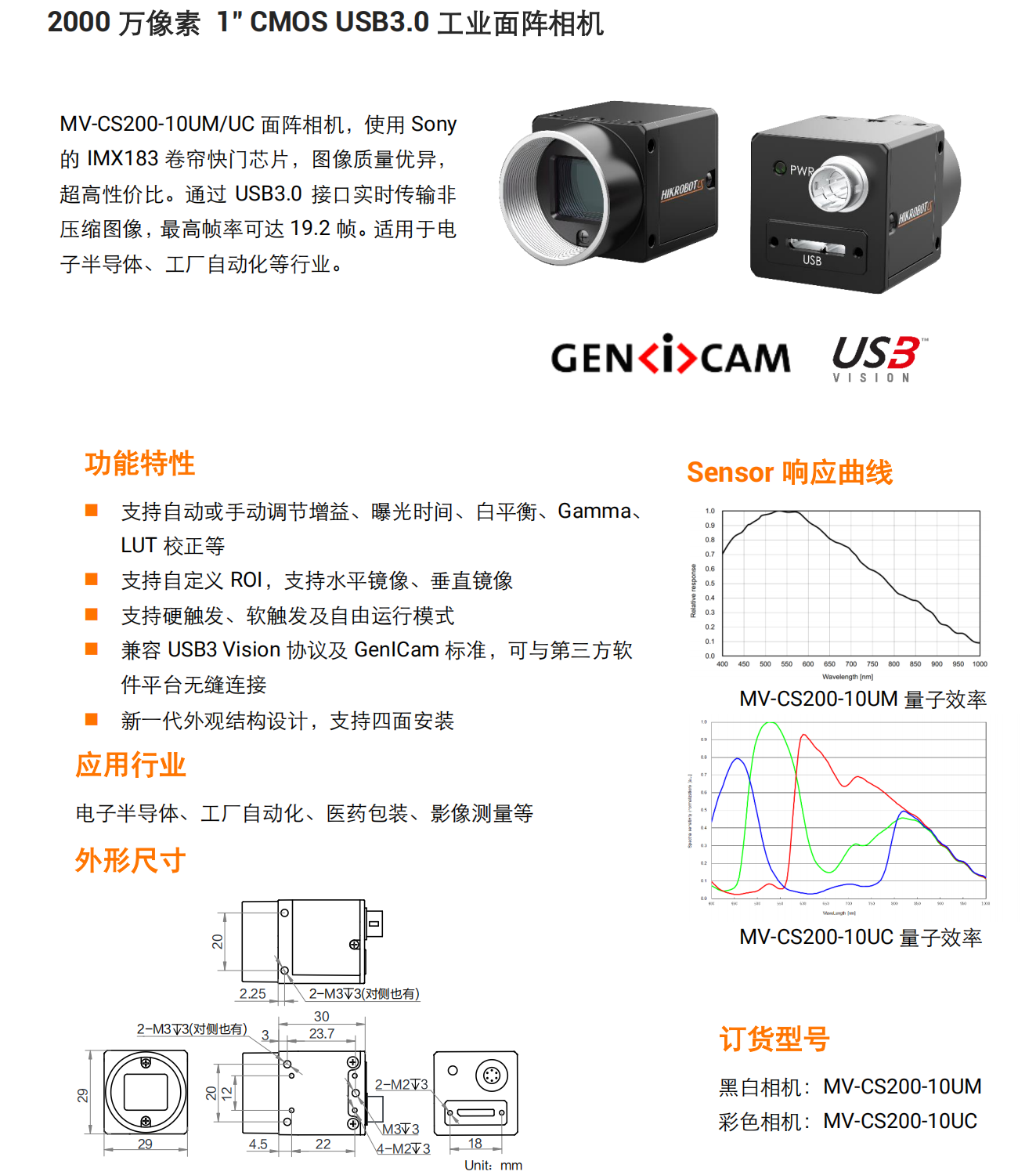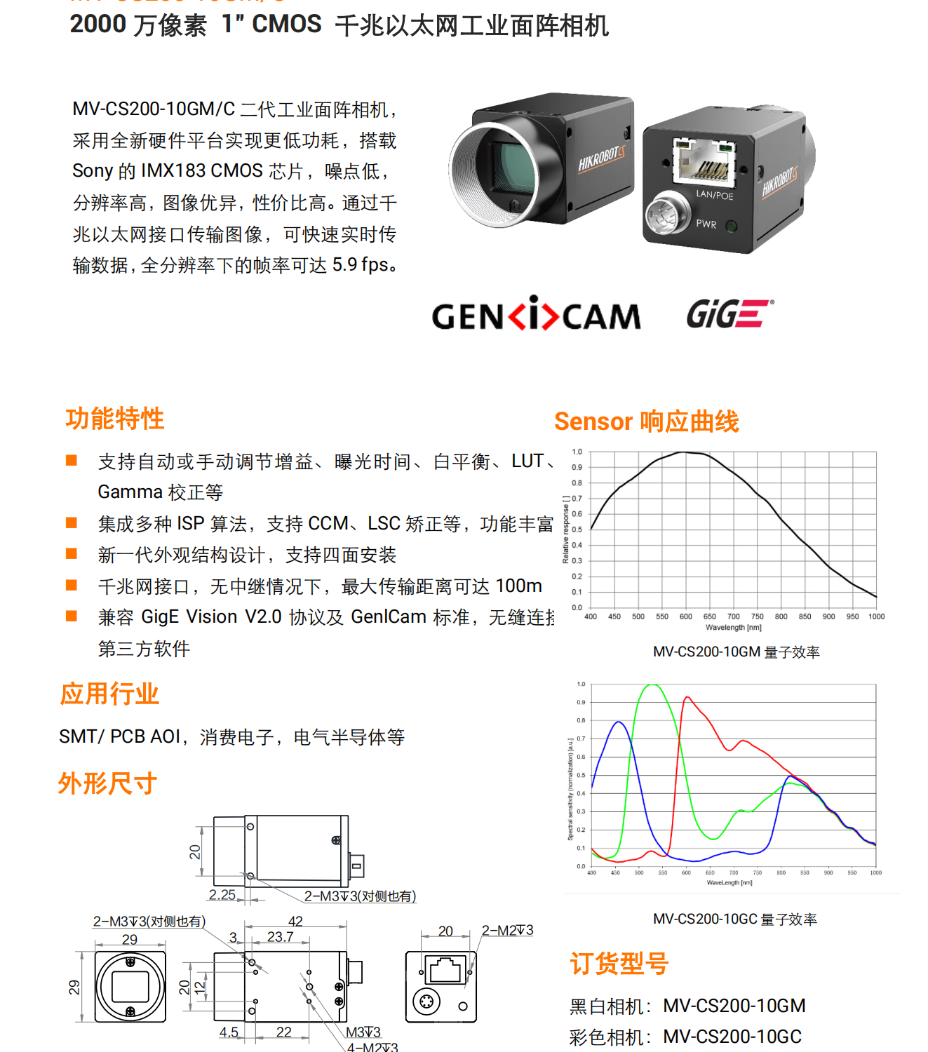 Haikang Robot Haikang 20 million industrial camera MV-CS200-10GM/GC/UM/UC black and white/color Gigabit network 20 million network port black and white MV-CS200-10GM