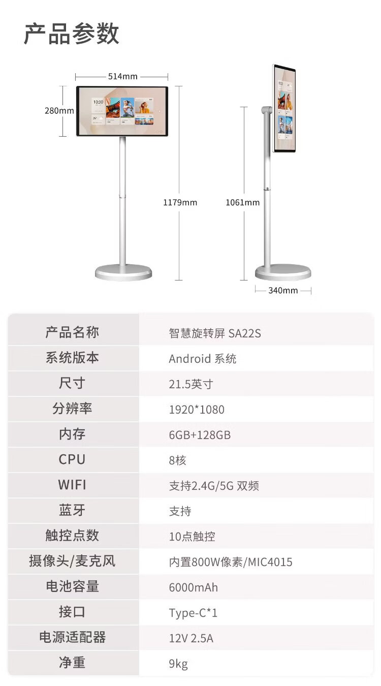 Konka Girlfriend Machine Xpress Screen Movable TV Smart Touch Large Tablet Smart Office Rotating Display New Year and Spring Festival Gifts High-end Gifts for Parents 4G+64G Built-in Camera Large Capacity Mobile Charging Base