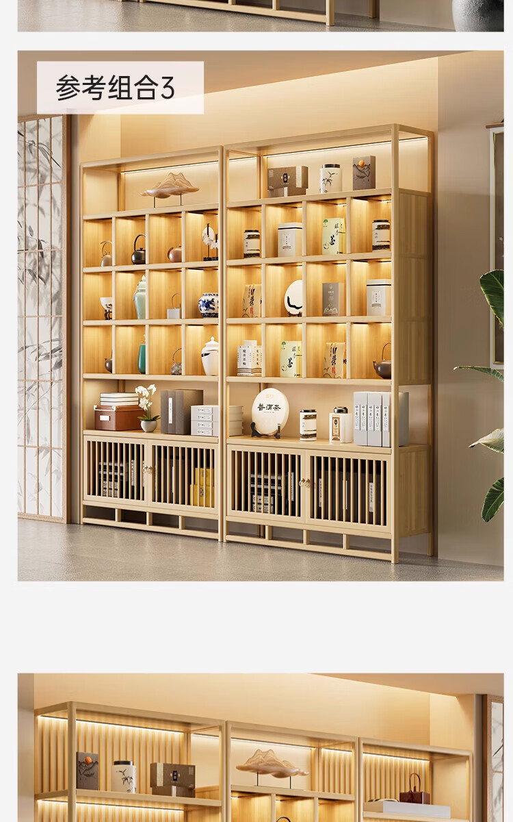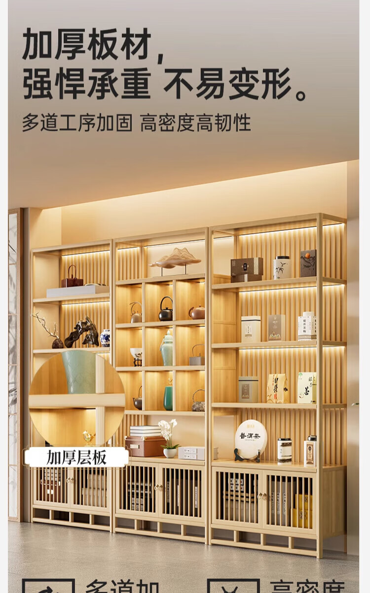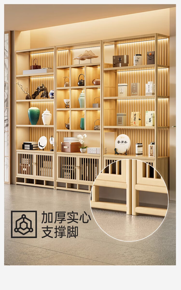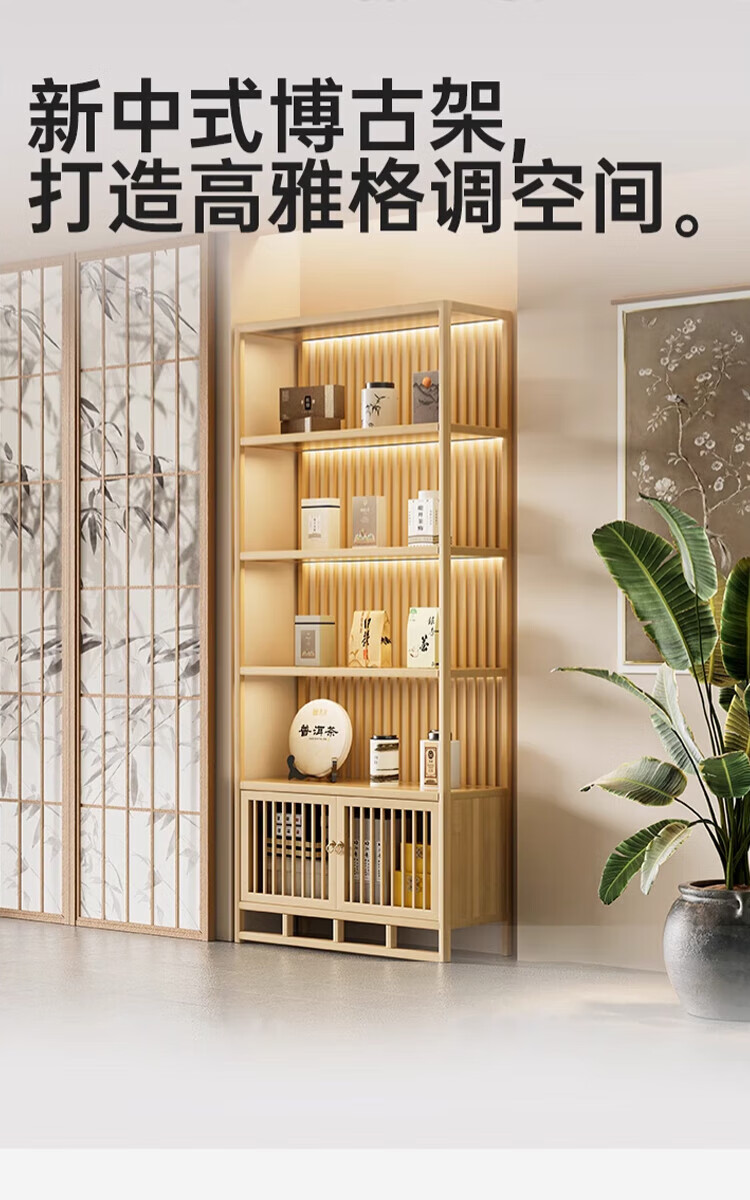 Douxianbo ancient rack solid wood Chinese tea storage rack tea cabinet tea set shelf tea room Duobao Pavilion tea display storage cabinet original color-screen style
