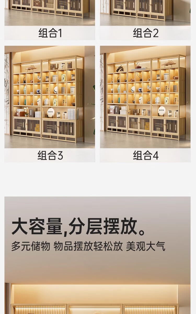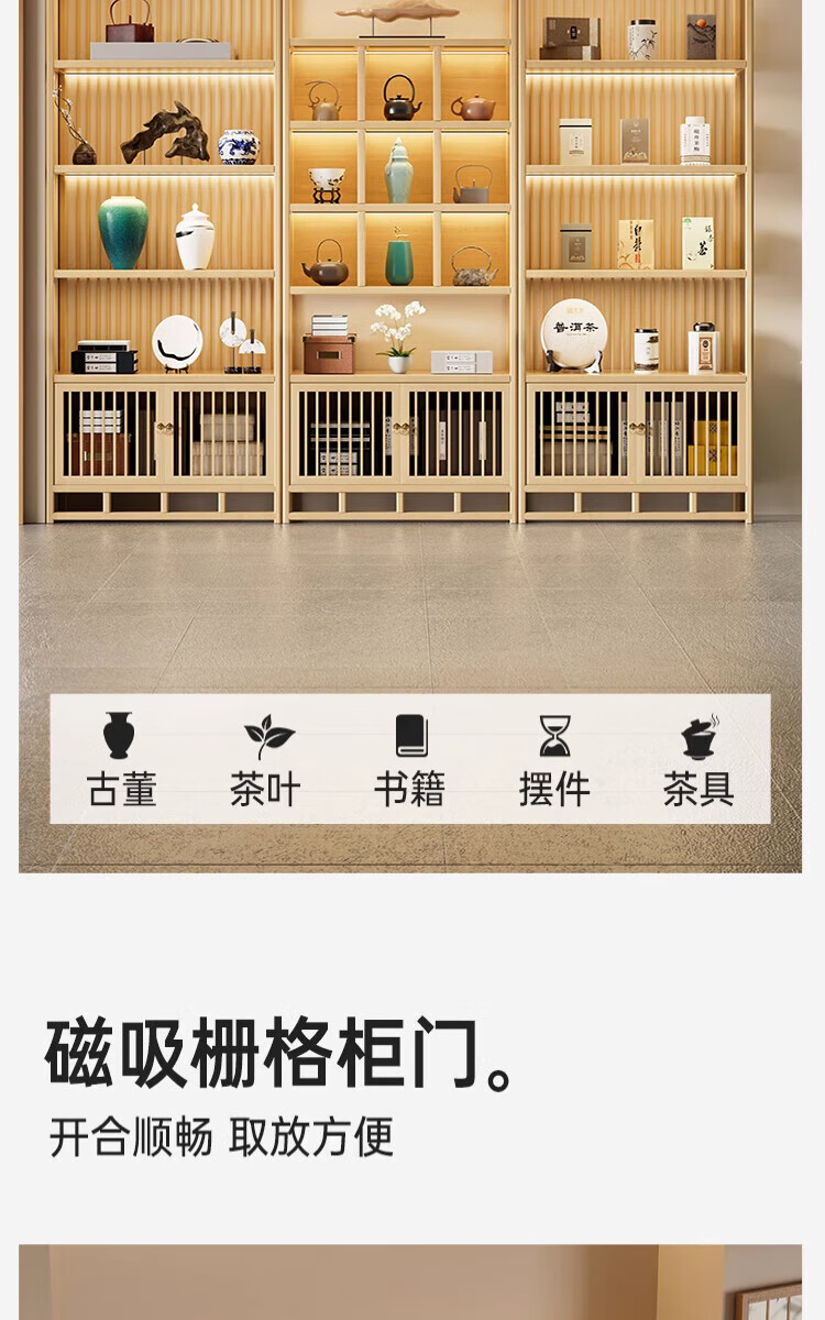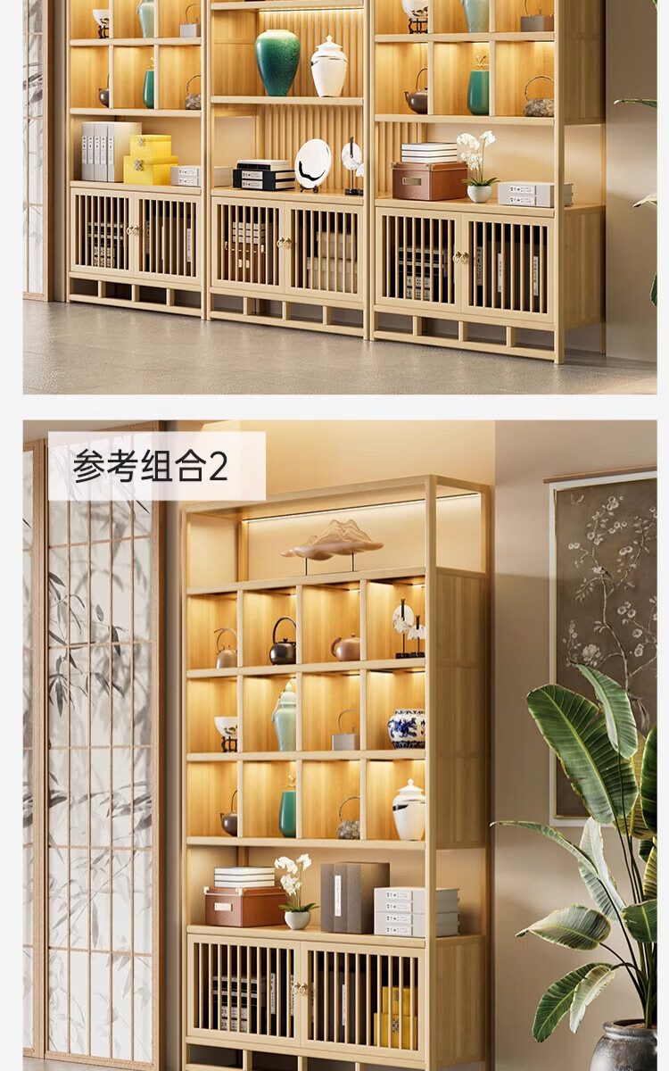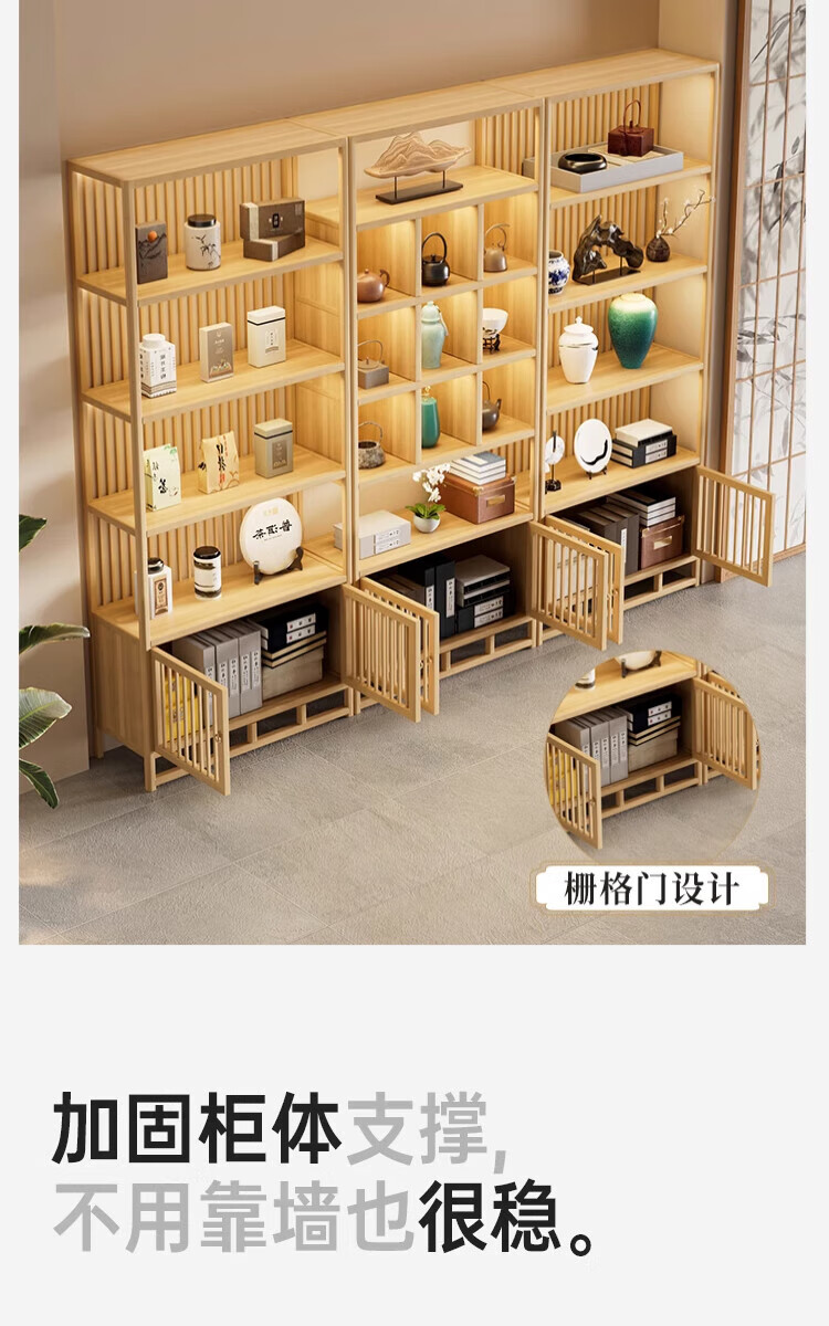Douxianbo ancient rack solid wood Chinese tea storage rack tea cabinet tea set shelf tea room Duobao Pavilion tea display storage cabinet original color-screen style