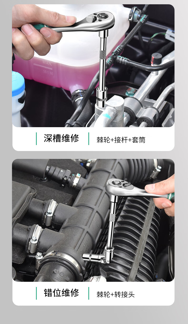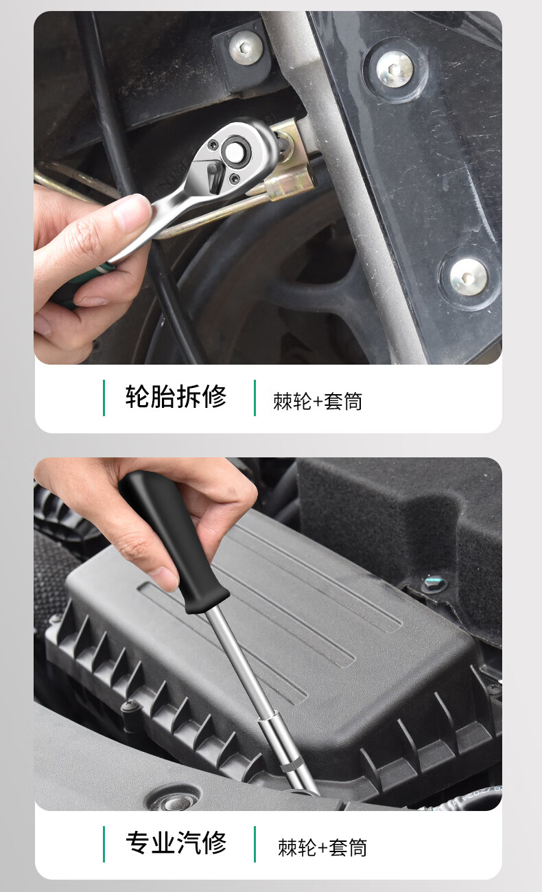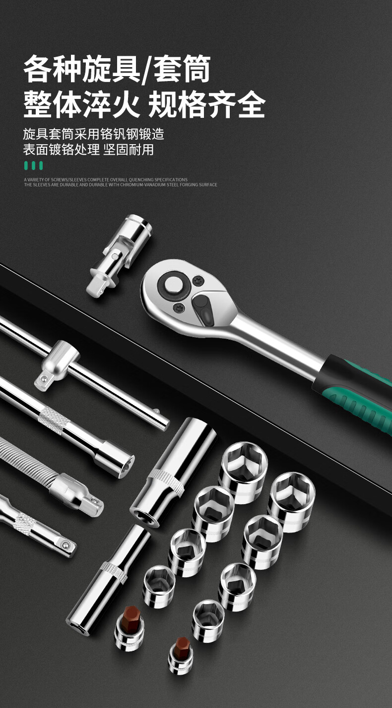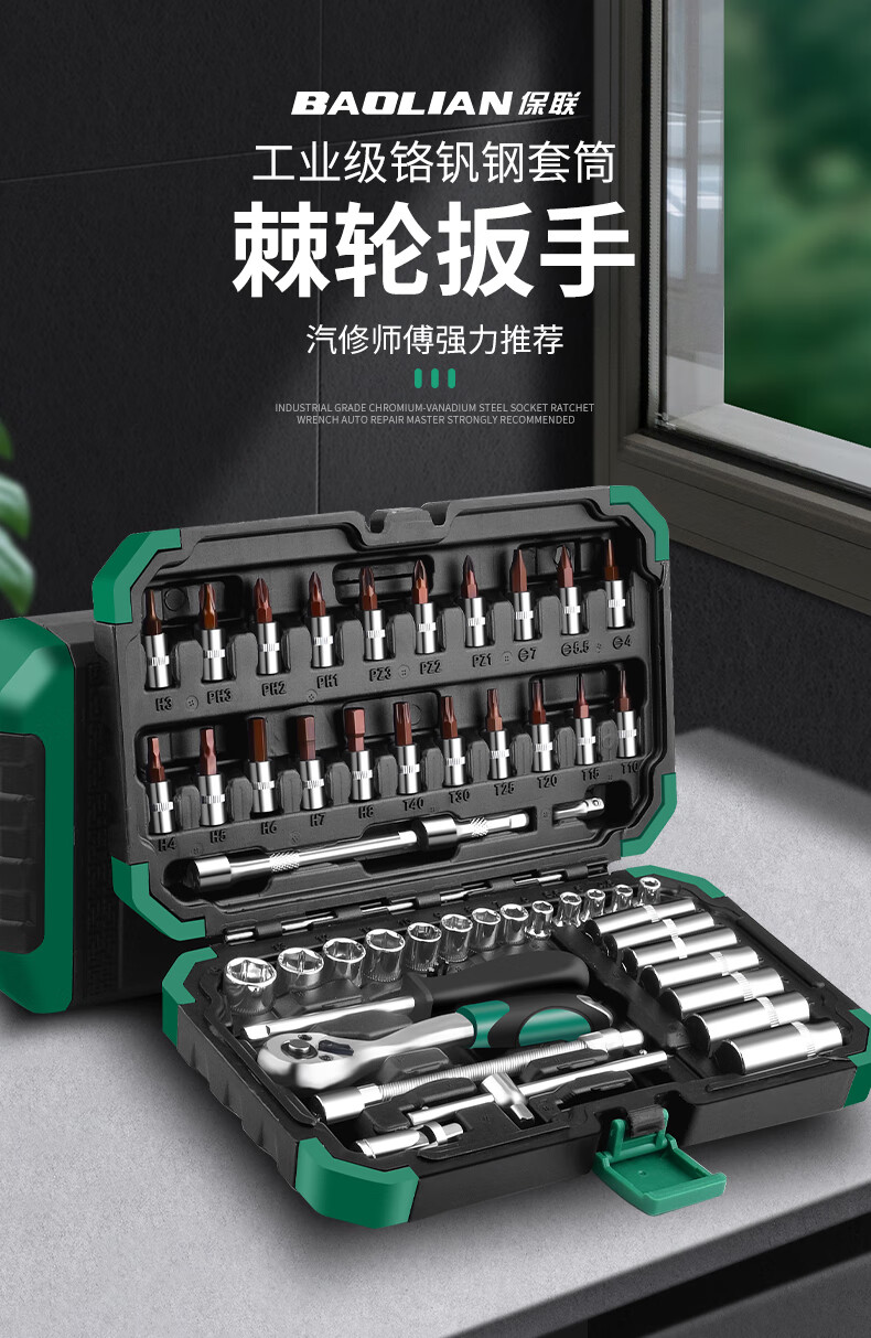 Baolian Auto Repair Tool Set 53-piece Multifunctional Ratchet Socket Wrench Set Xiaofei Quick Complete Set of Repair Tools Supreme 72-Tooth Curved Handle Auto Repair 53-piece Set